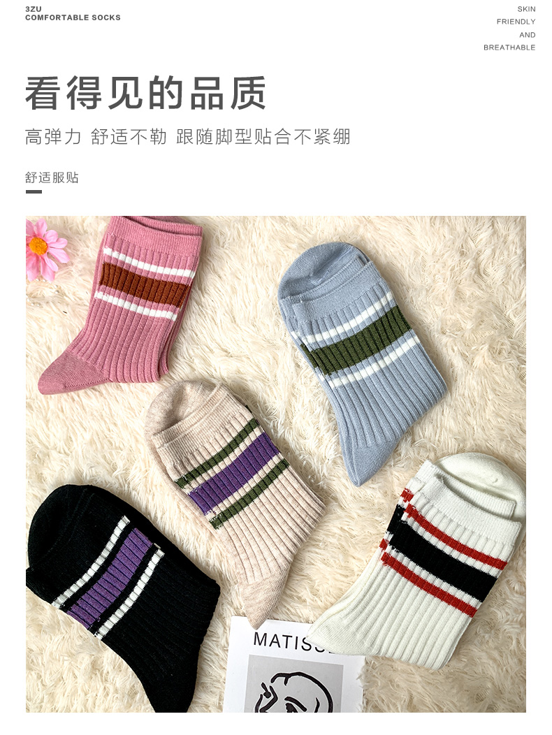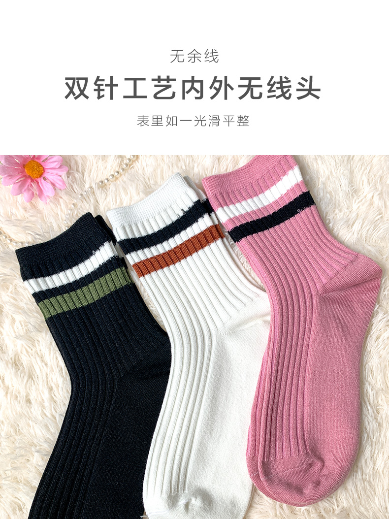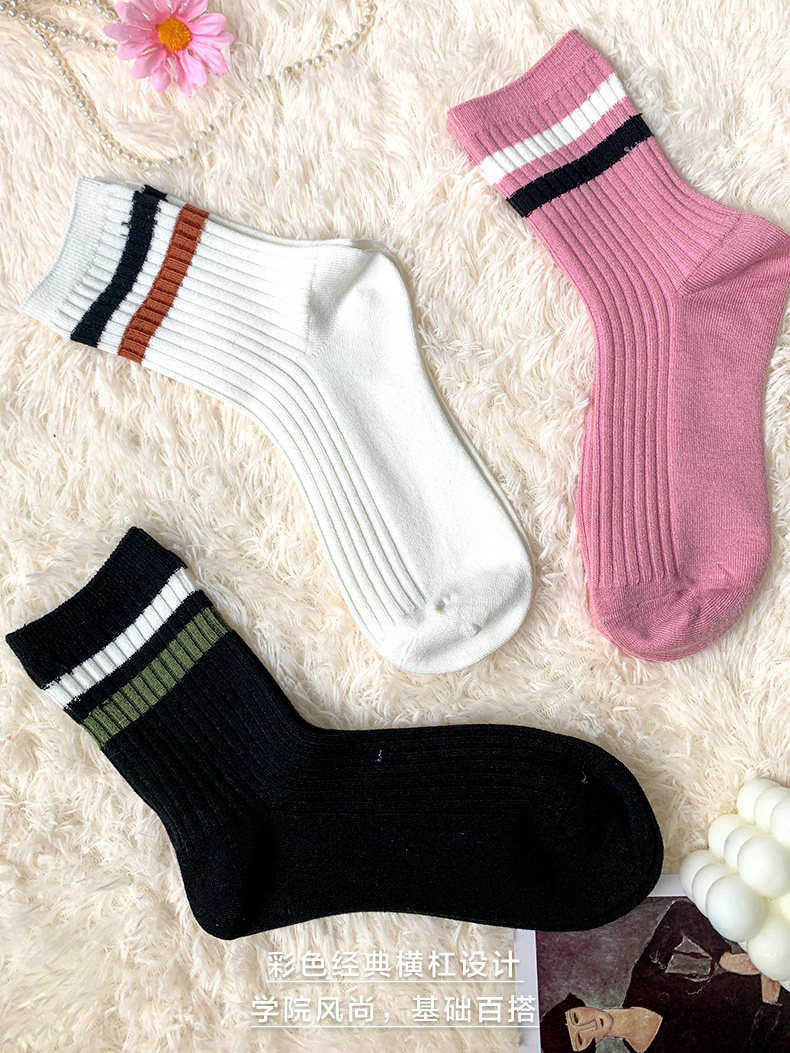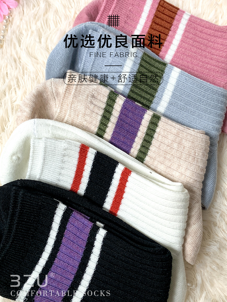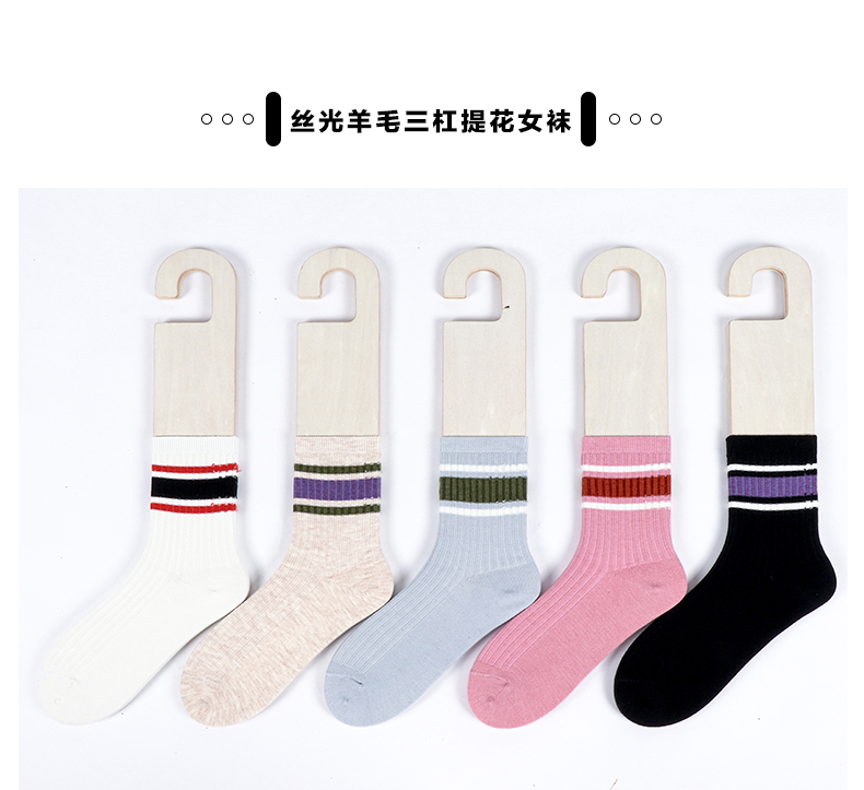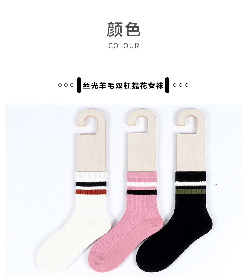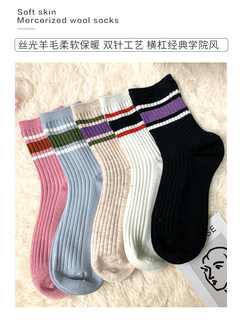 23秋冬新女款中筒丝光羊毛保暖双针工艺彩色横杠学院风女袜