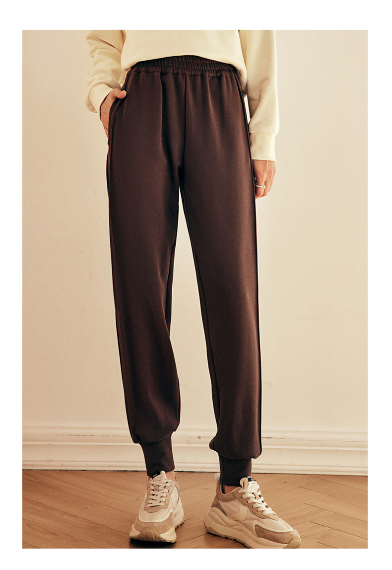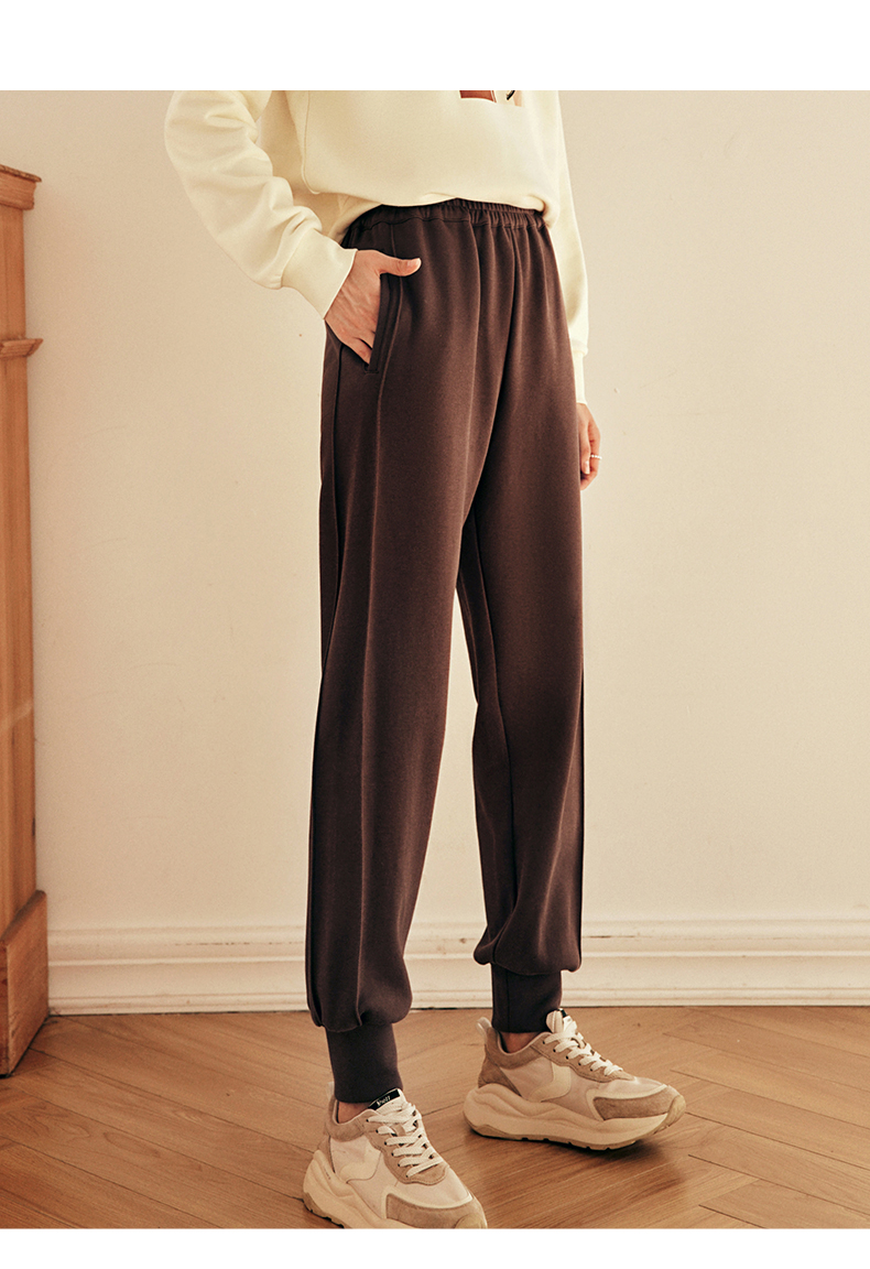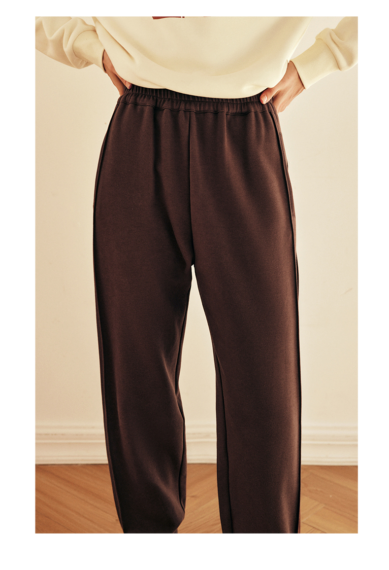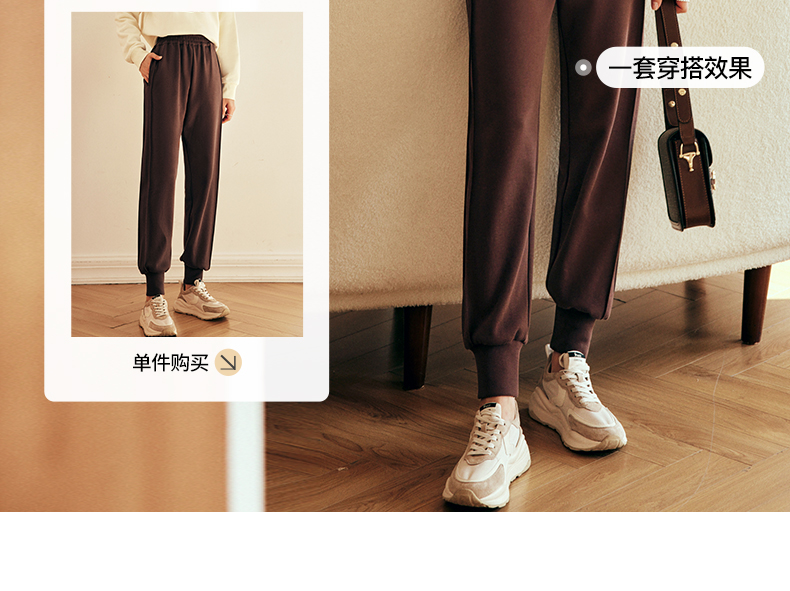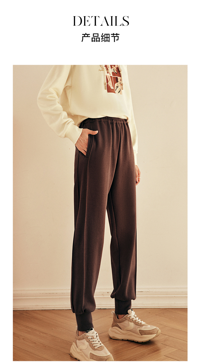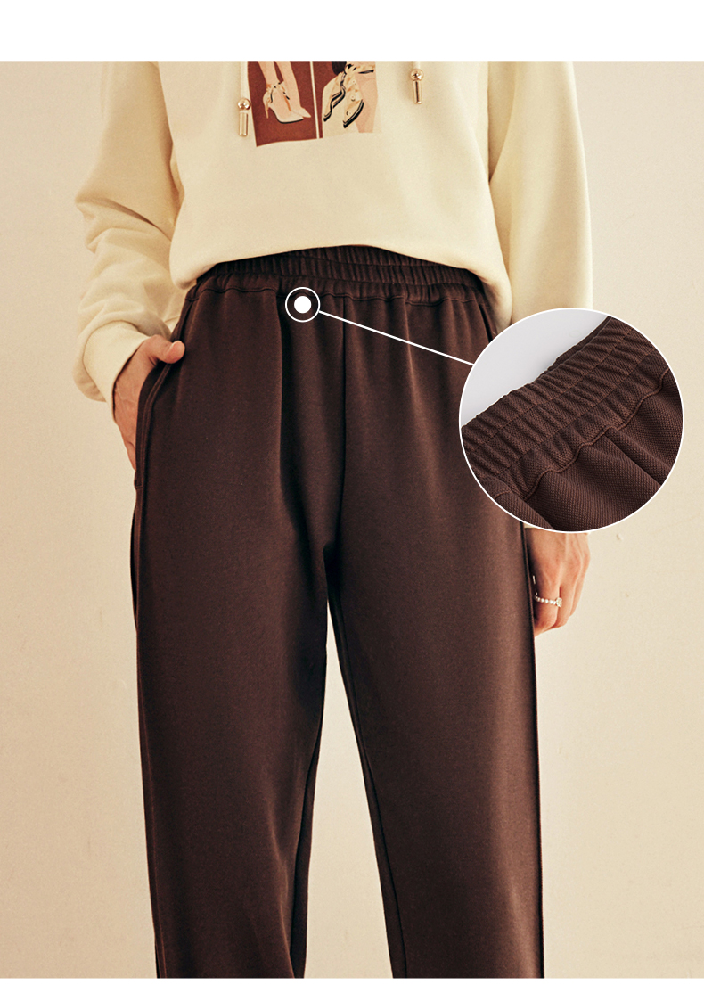 OLrain欧芮儿法式咖色休闲裤女春2025新款高腰垂感束脚运动卫裤