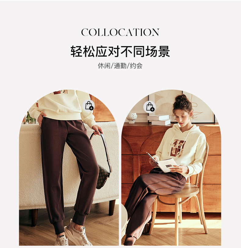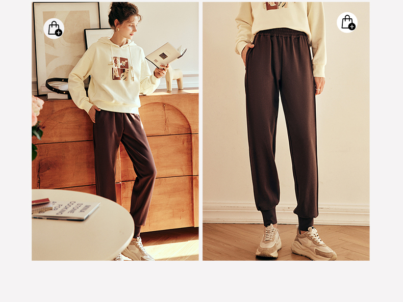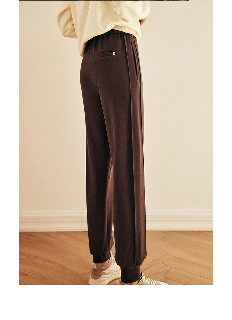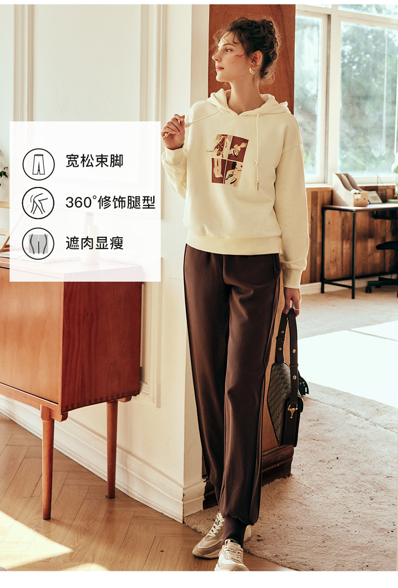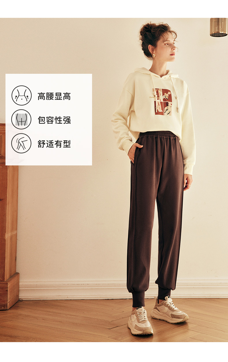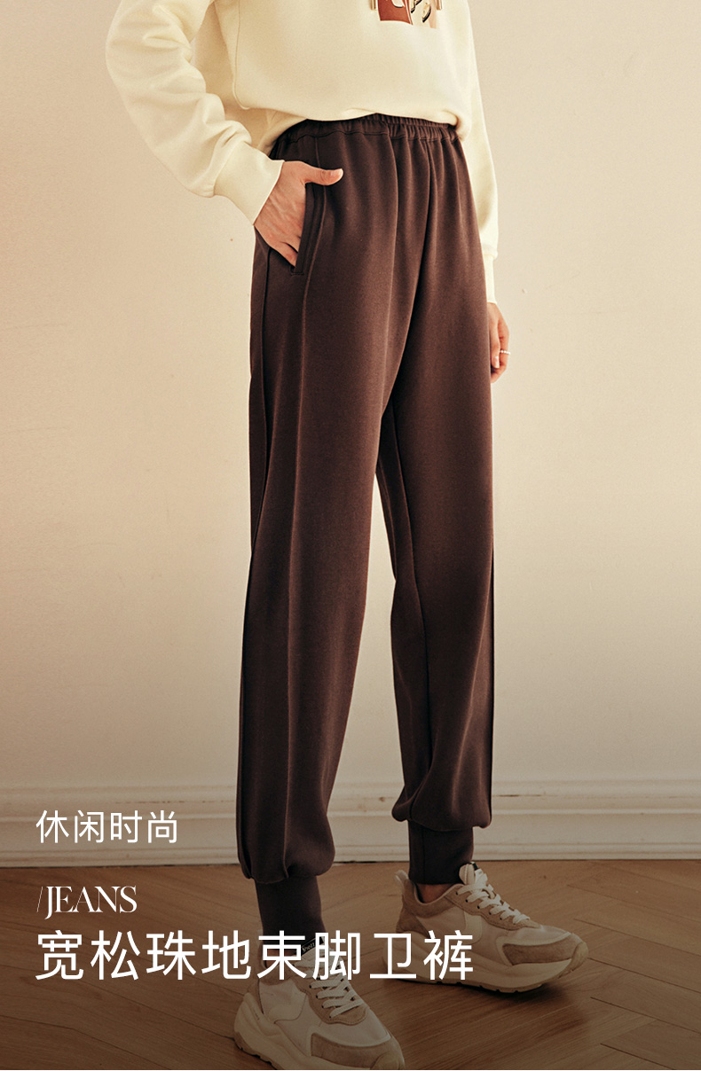 OLrain欧芮儿法式咖色休闲裤女春2025新款高腰垂感束脚运动卫裤