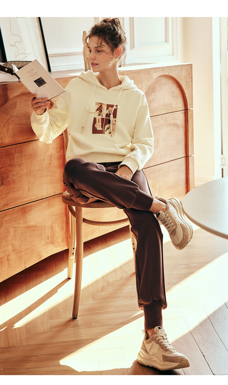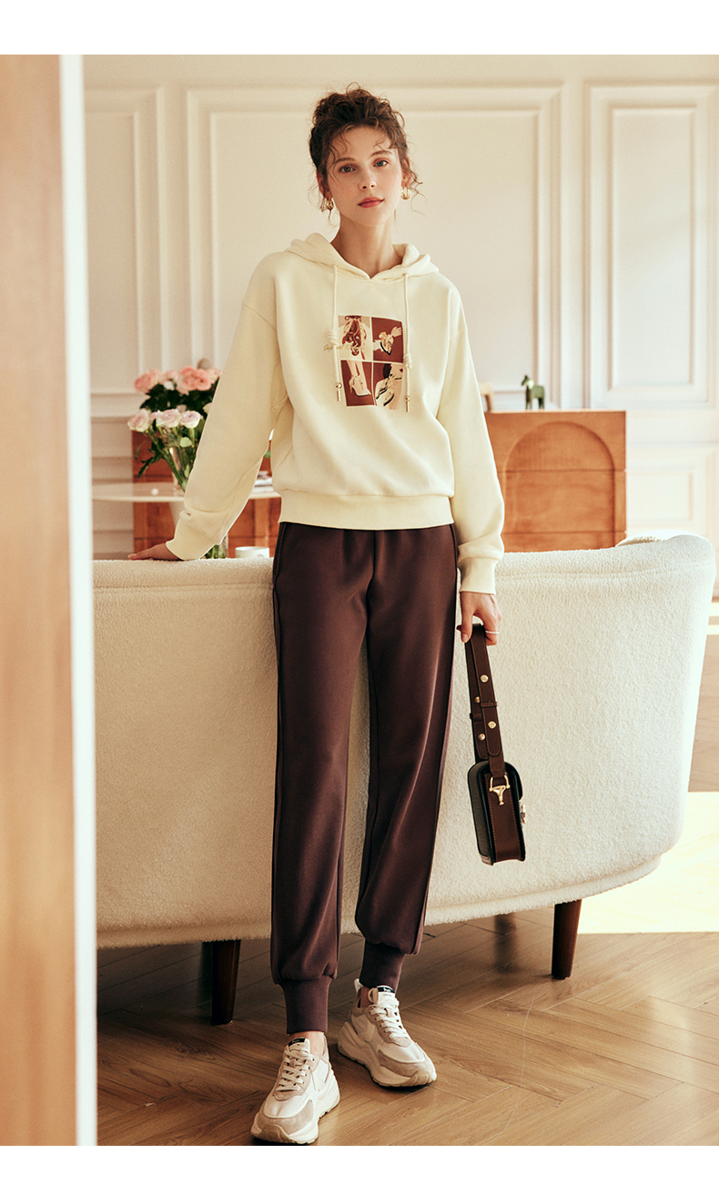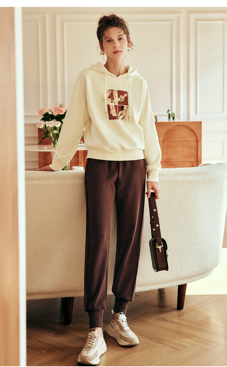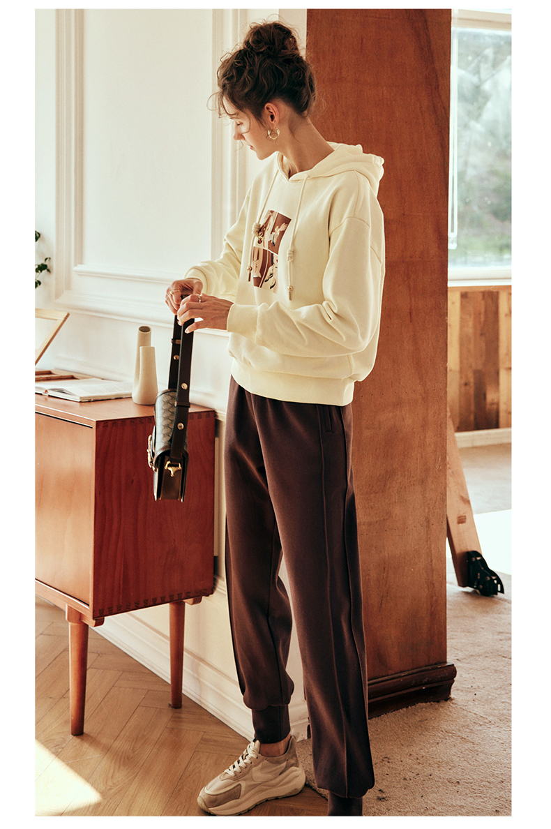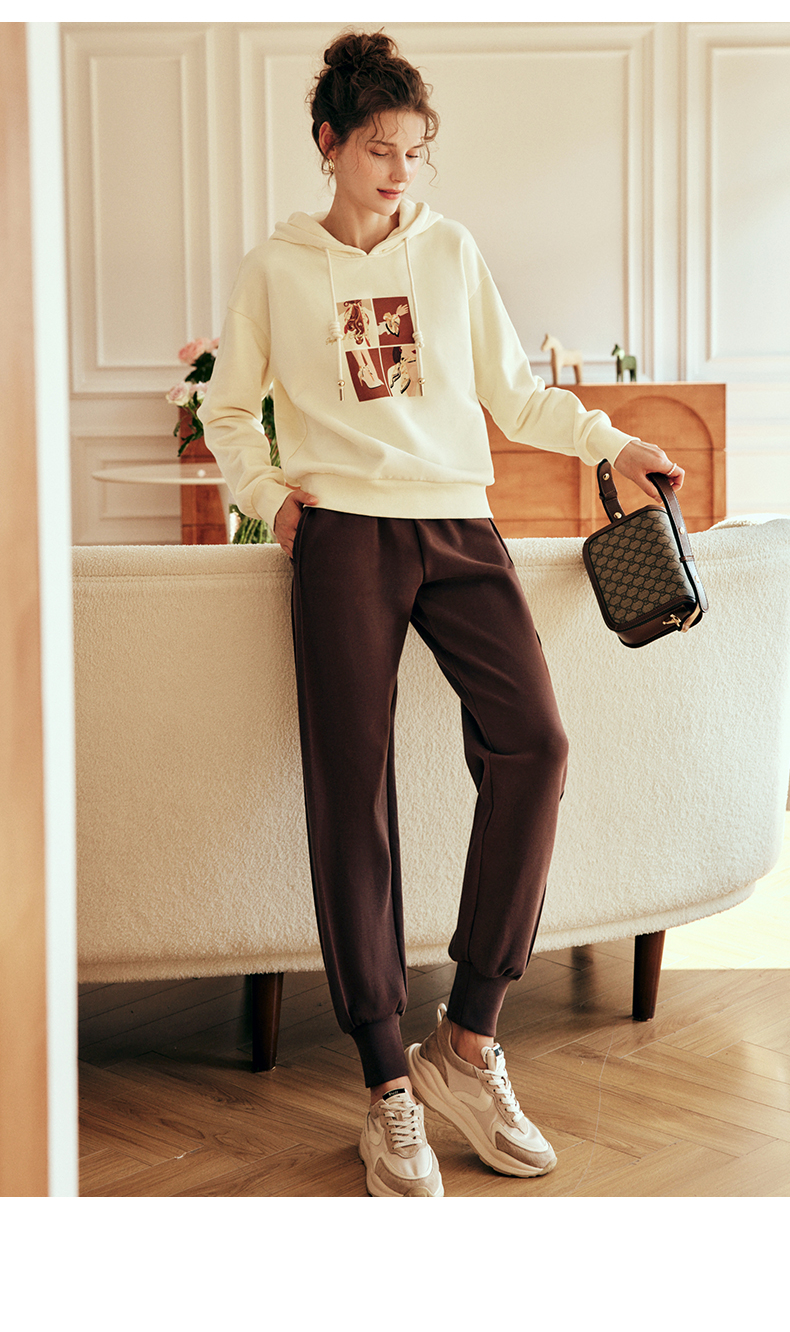 OLrain欧芮儿法式咖色休闲裤女春2025新款高腰垂感束脚运动卫裤