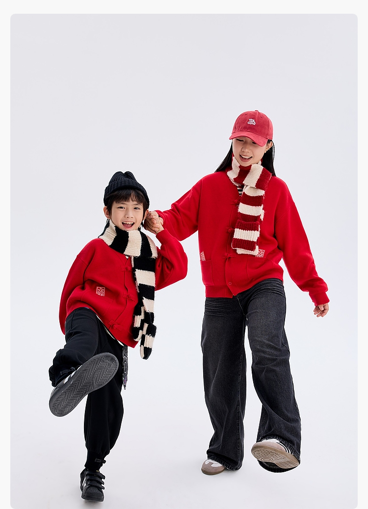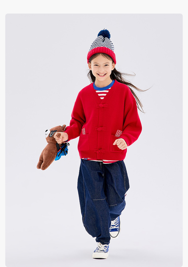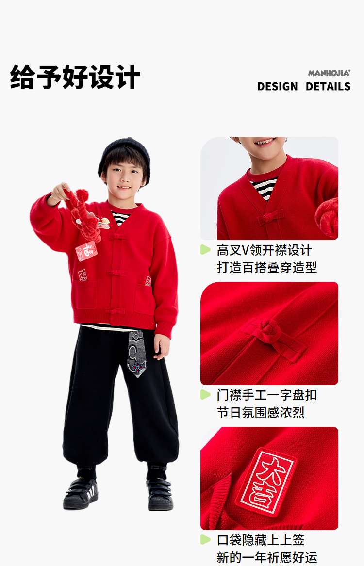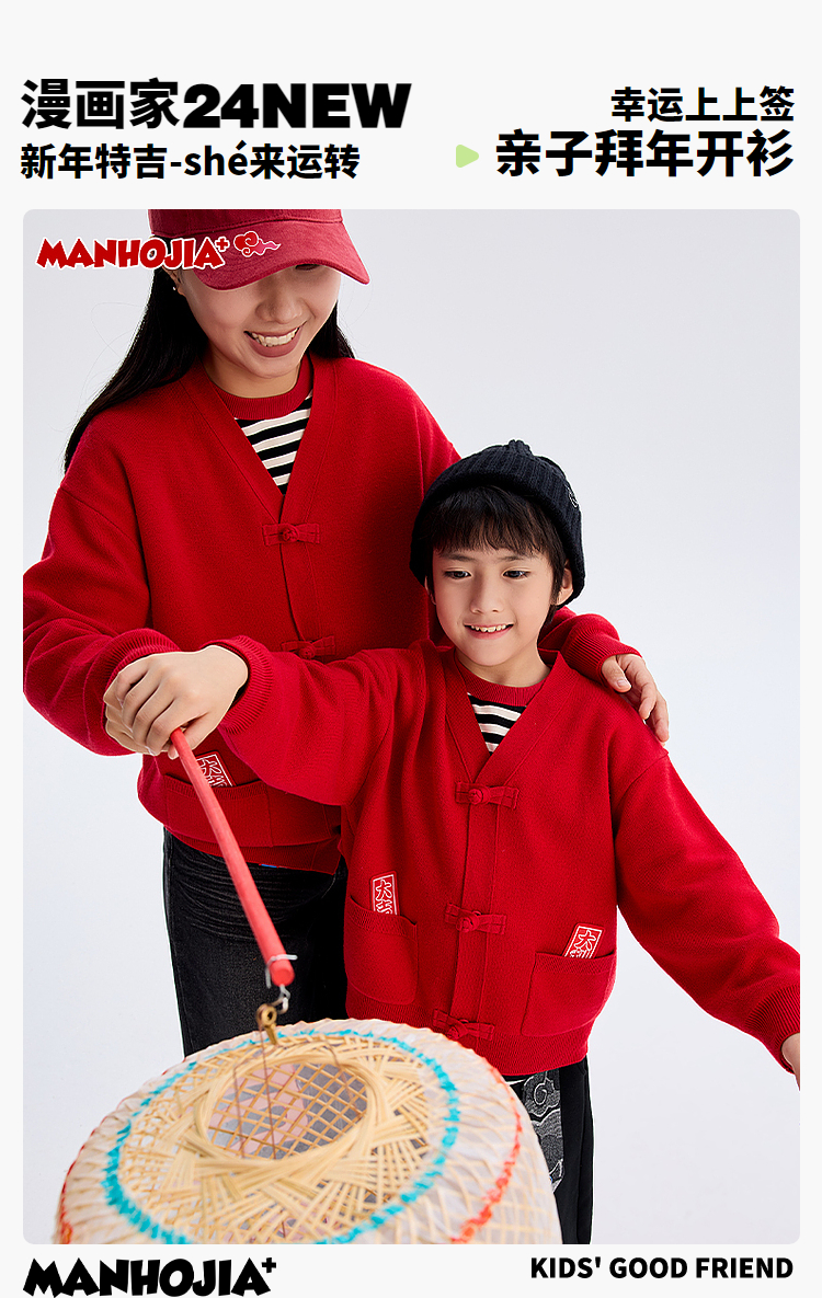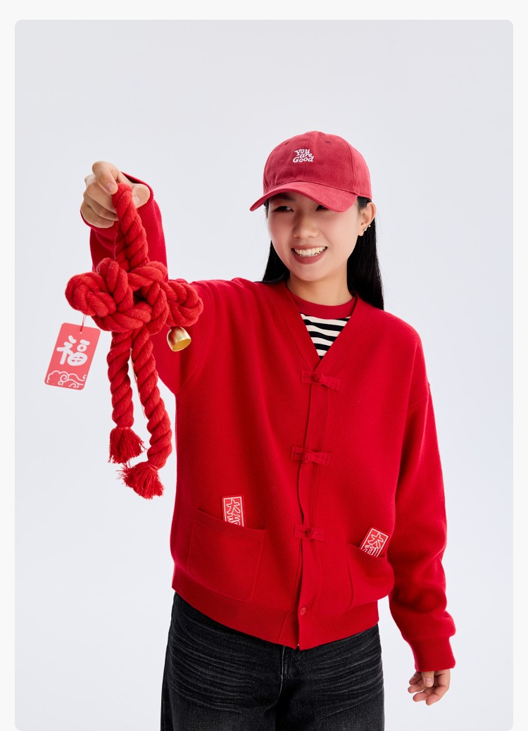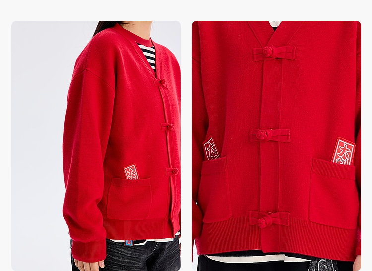 【shé来运转】漫画家24新中式国风盘V领羊毛混纺毛衣开衫拜年服