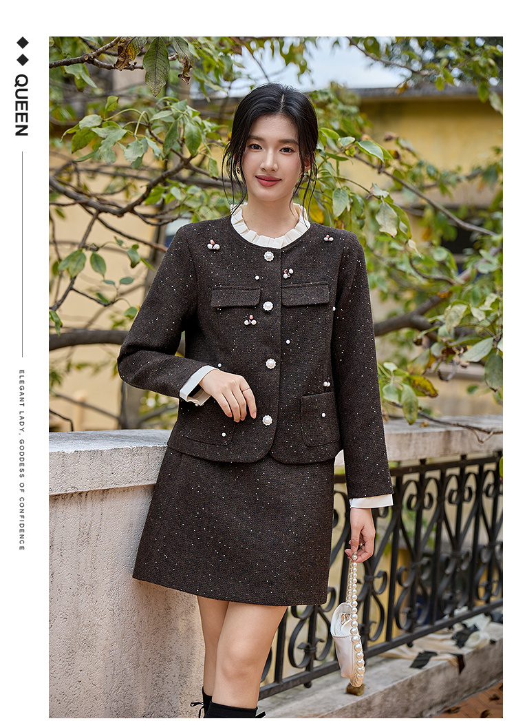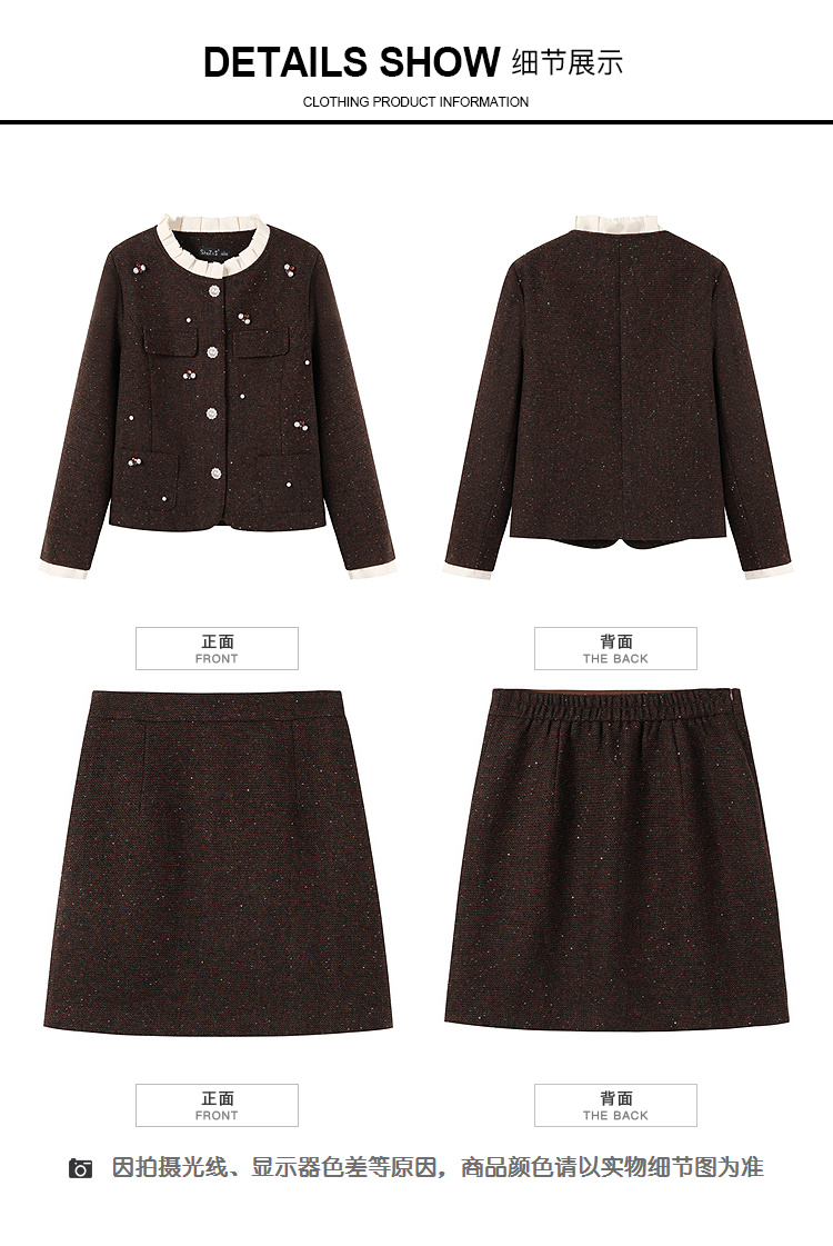 奢姿大码女装2025冬季时尚撞色花边圆领套装胖妹妹气质减龄两件套9954953943