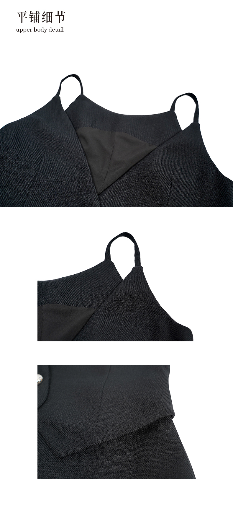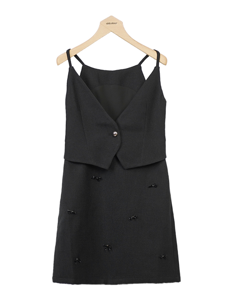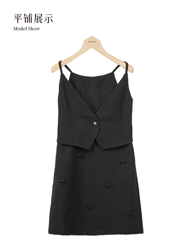 oldcolour黑色吊带连衣裙秋季新款V领气质百搭短裙女O33104149