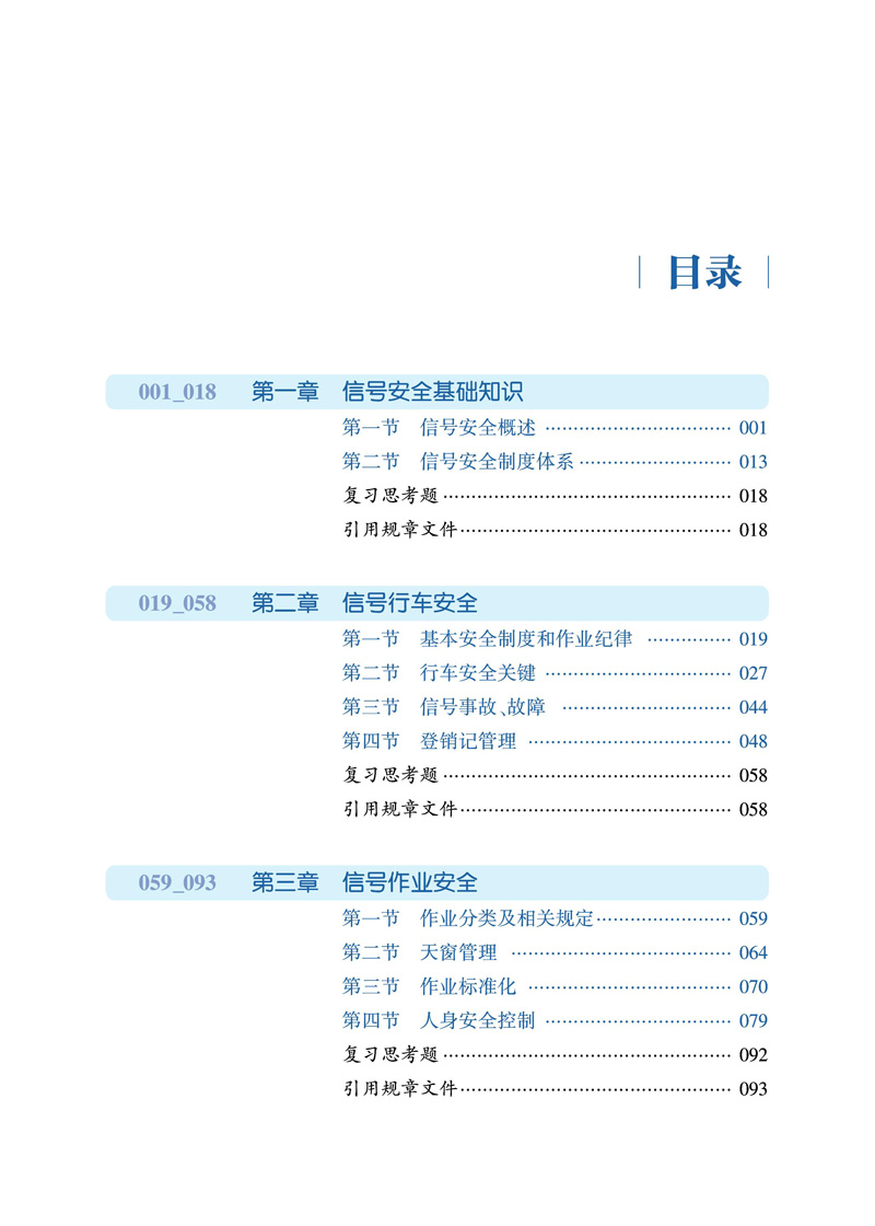 《铁路信号安全管理》为铁路专业系列教材之一,全书包含信号安全基础知识,信号行车安 全,信号作业安全,信号施工安全,信号网络和数据安全,信号应急预案及处置等内容。