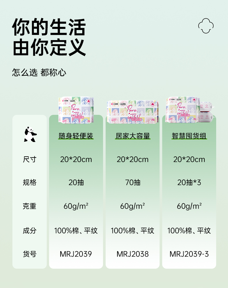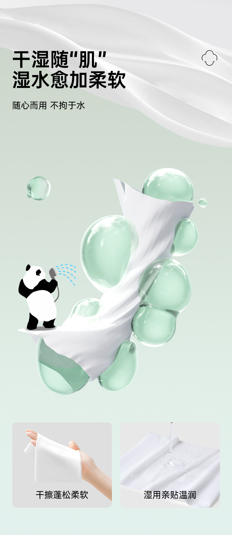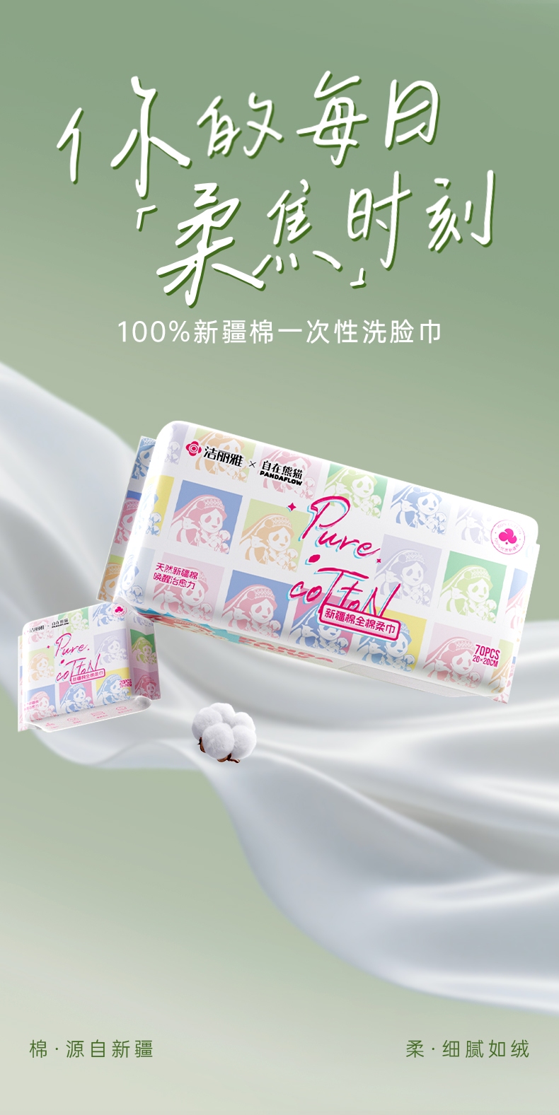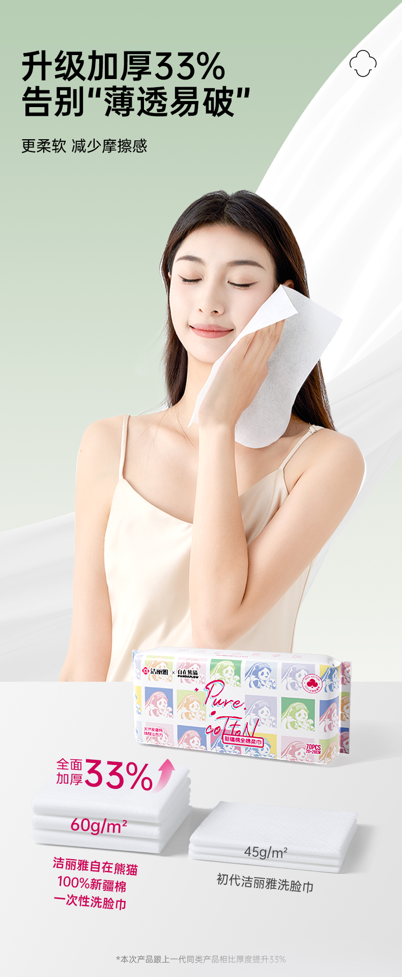 洁丽雅自在熊猫联名系列一次性洗脸巾家用旅行抽取式女吸水日抛