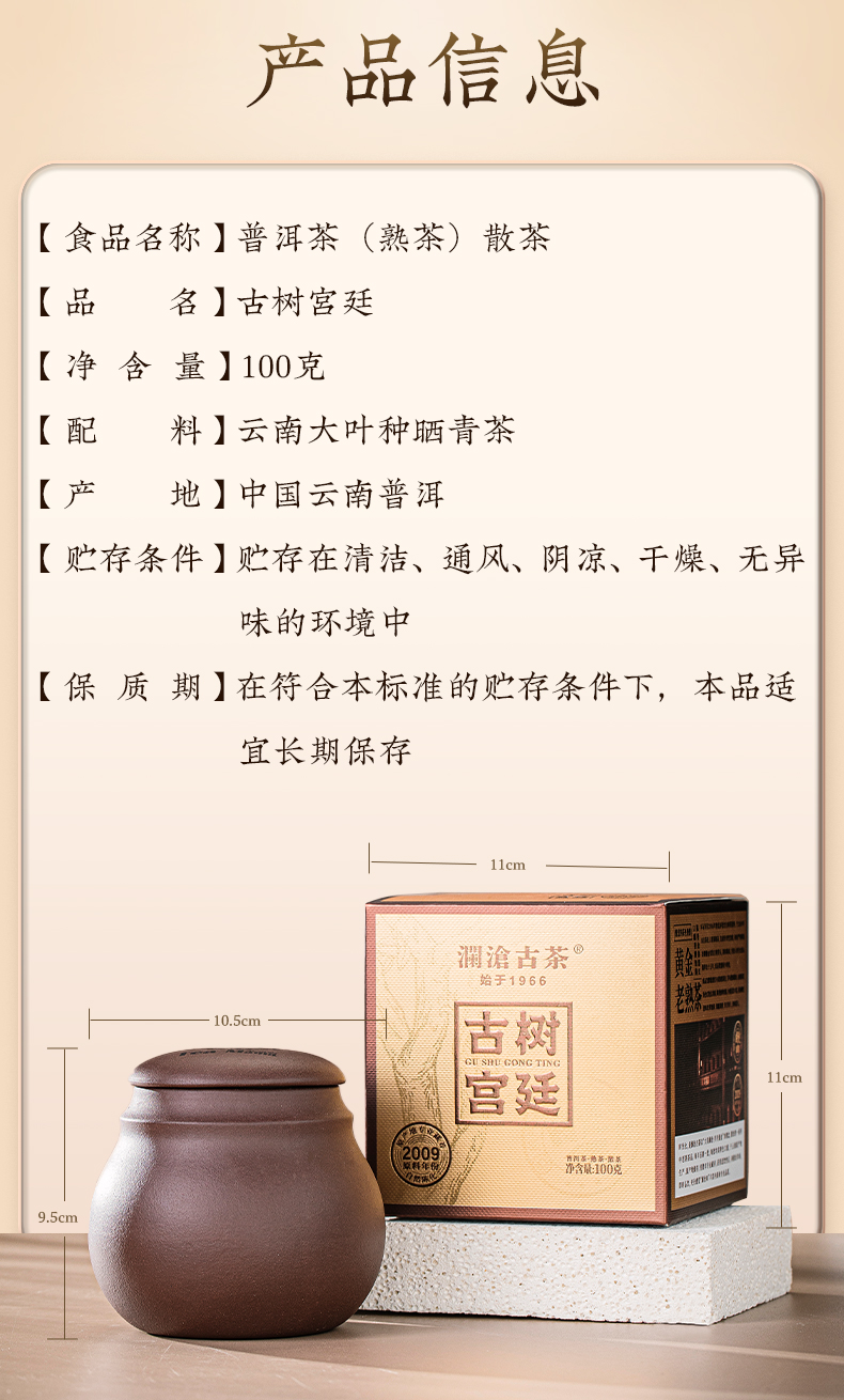 澜沧古茶2009年古树宫廷15年陈熟茶散茶100g
