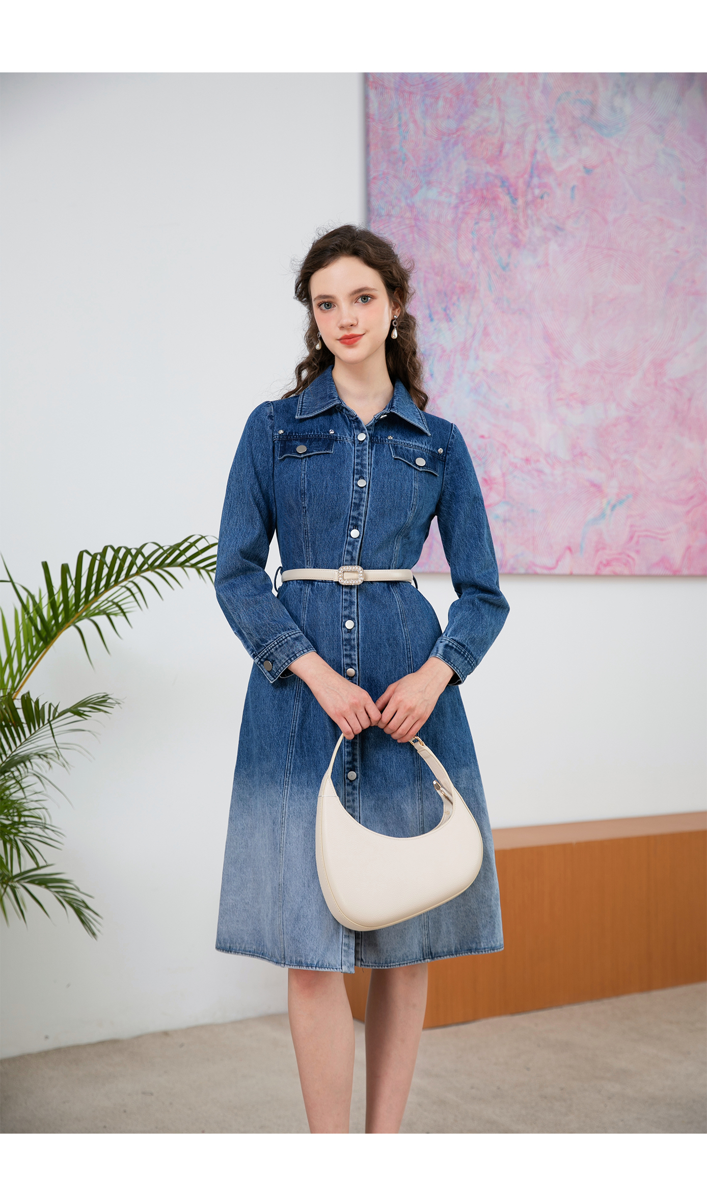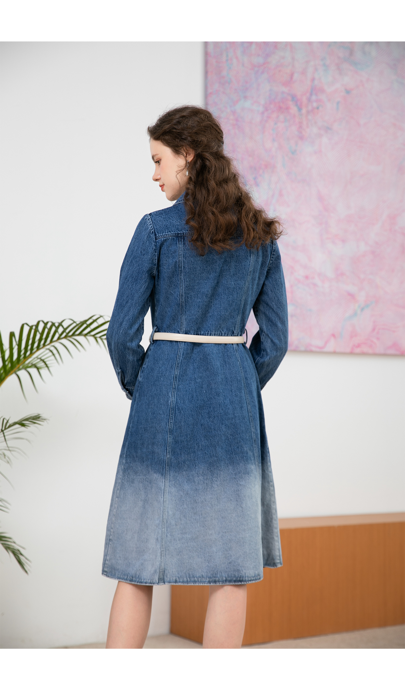 司歌牛仔单排扣渐变收腰连衣裙收腰通勤R901257X