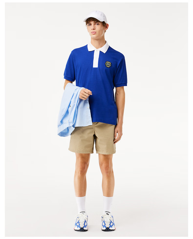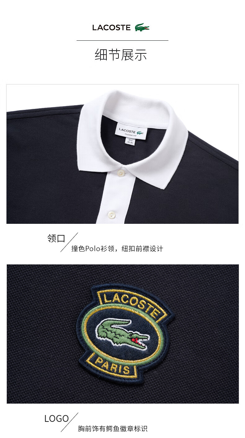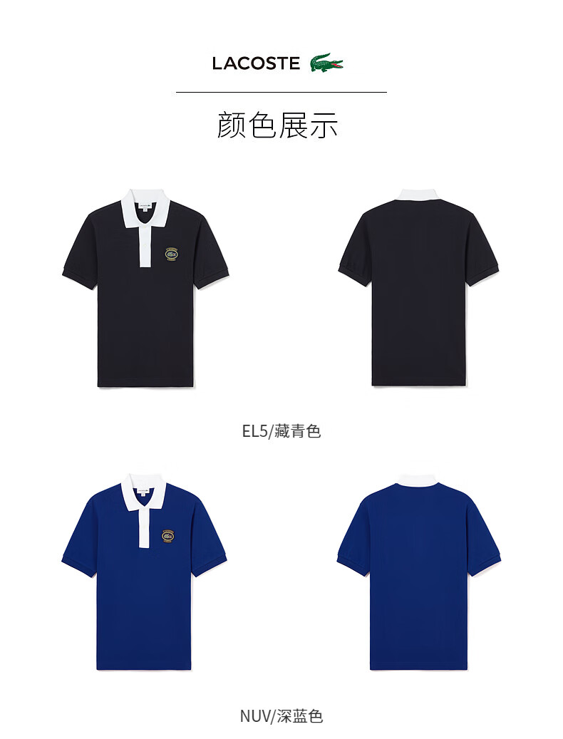 Lacoste法国鳄鱼男装新款拼接翻领商务休闲宽松Polo衫短袖PH7369-10