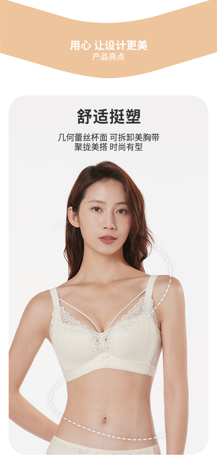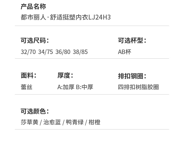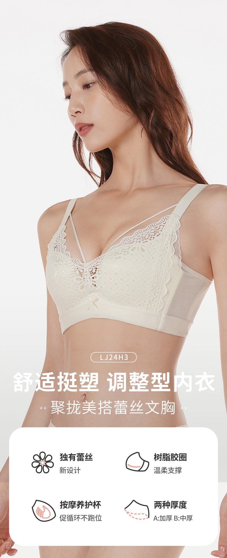 都市丽人舒软挺塑轻塑AB杯调整型文胸蕾丝A:加厚B:中厚3/4杯塑身文胸四排扣树脂胶圈LJ24H3