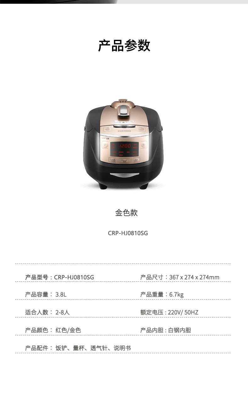 福库CUCKOO CRP-HJ0810SG 原装进口3.8升电压力饭煲锅家用智能电饭锅