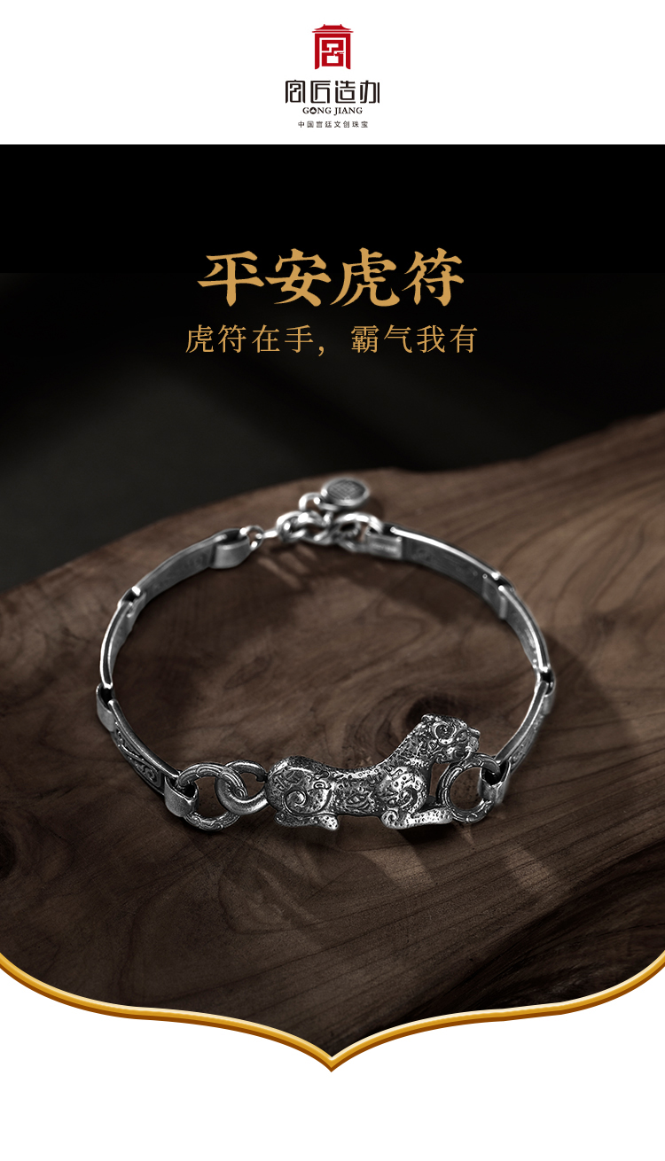 宫匠造办 十朝十美宫镯 战国·平安虎符足银手链