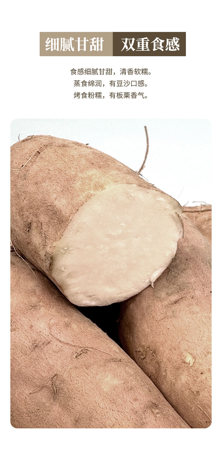 皮薄肉厚,薯香四溢,细腻甘甜,健康营养,老少皆宜;