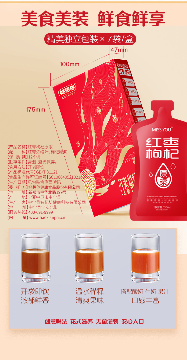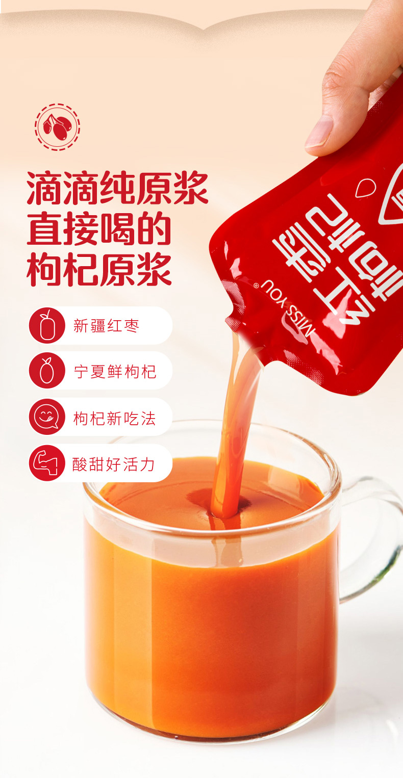 好想你红枣枸杞原浆210ml\盒宁夏鲜枸杞新疆红枣汁原液不加一滴水