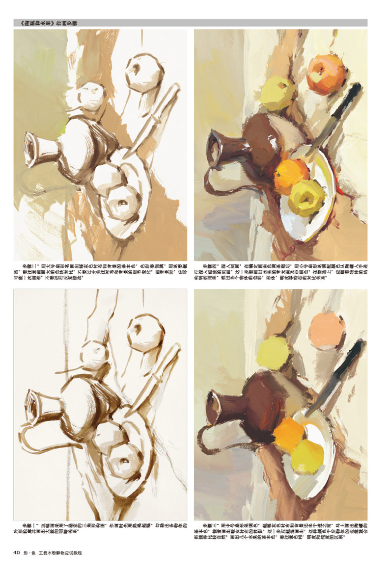 所选范画均是按高考色彩考题的内容摆放的静物,十分适合高考色彩应试。