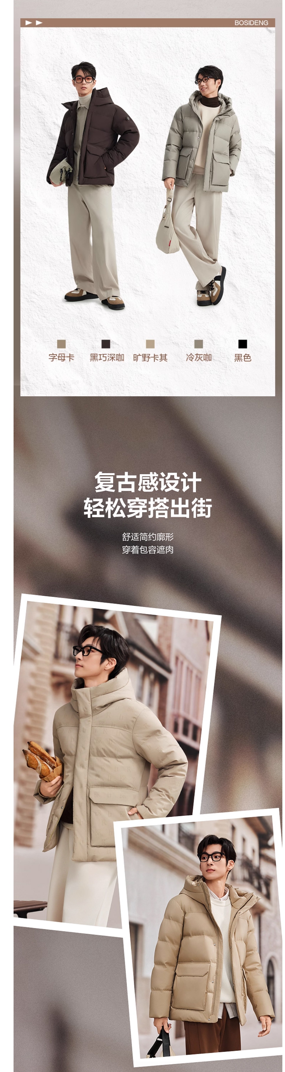 波司登2025新款羽绒服男士短款连帽保暖羽绒服B250245315
