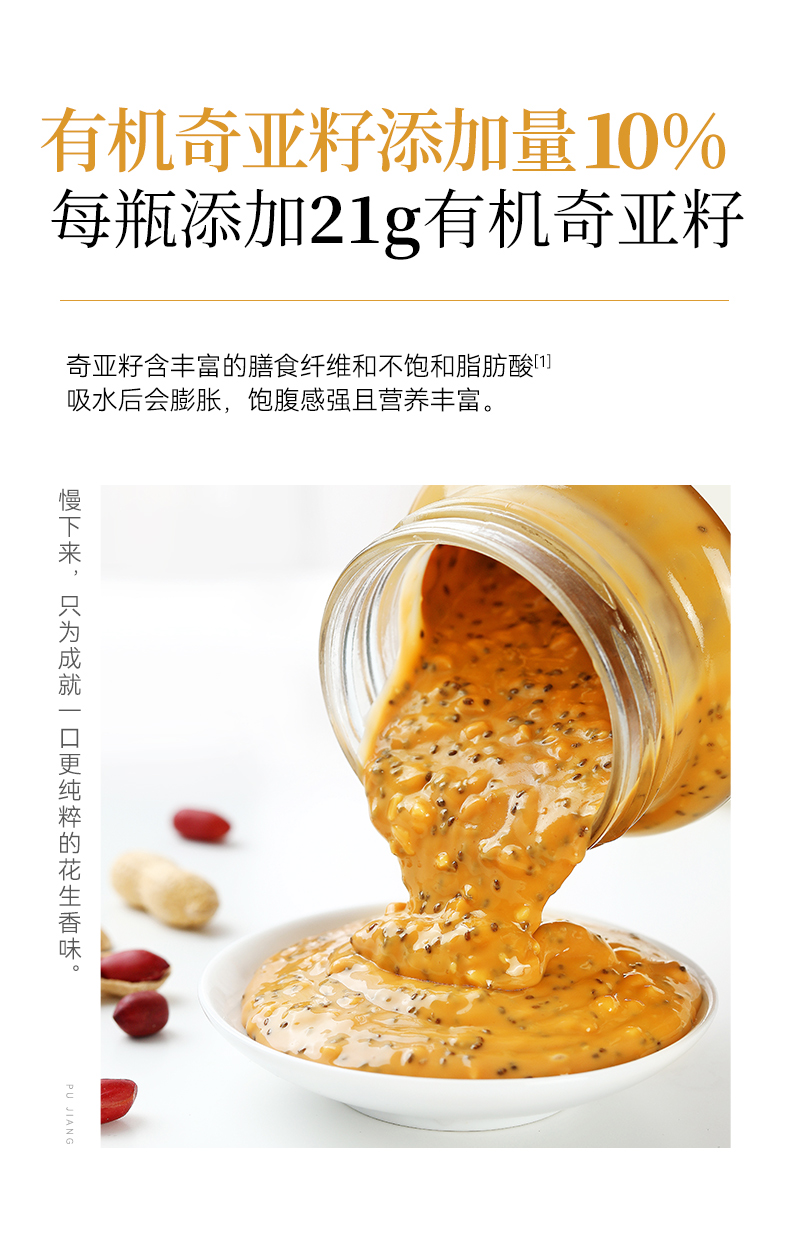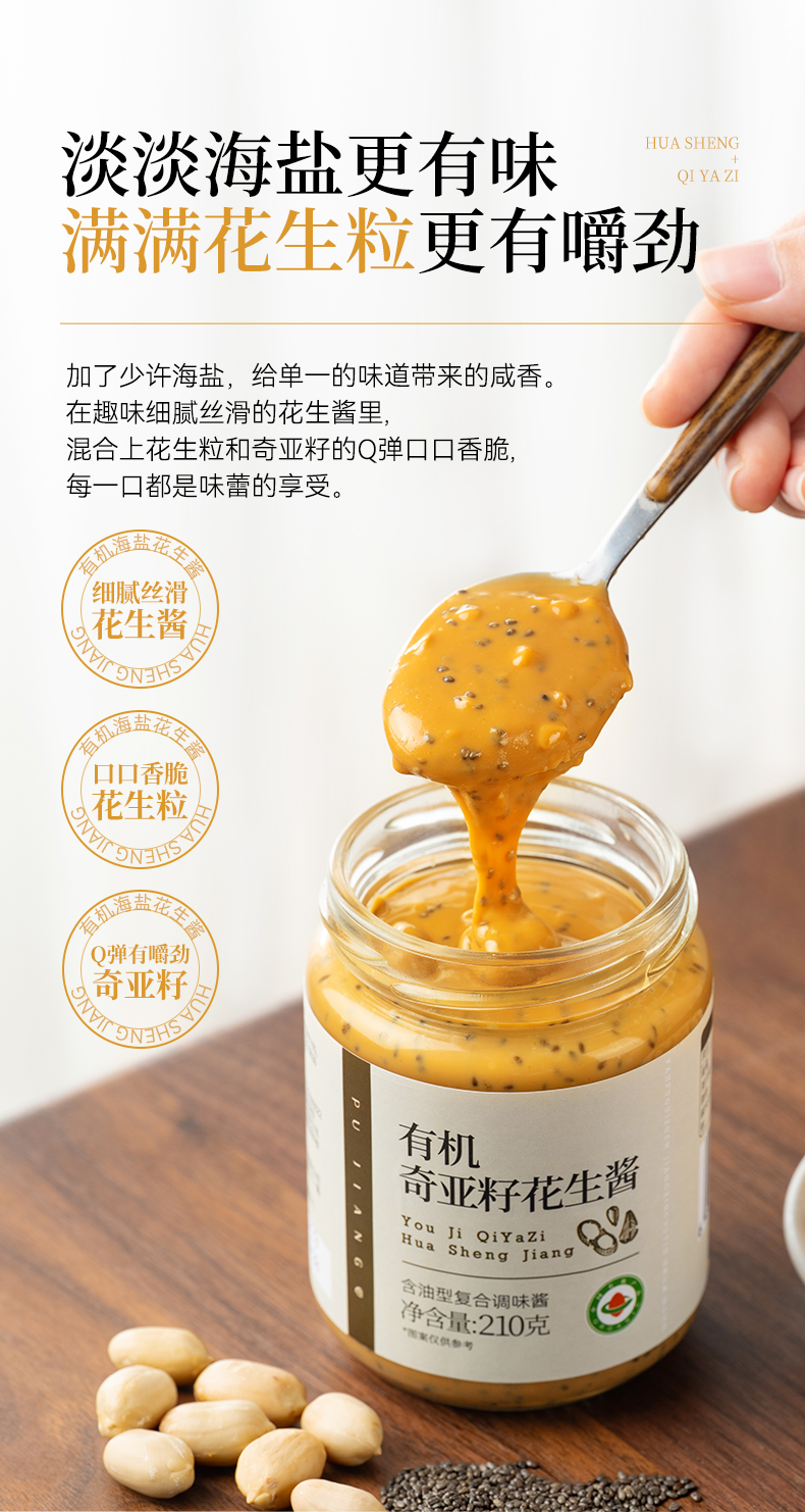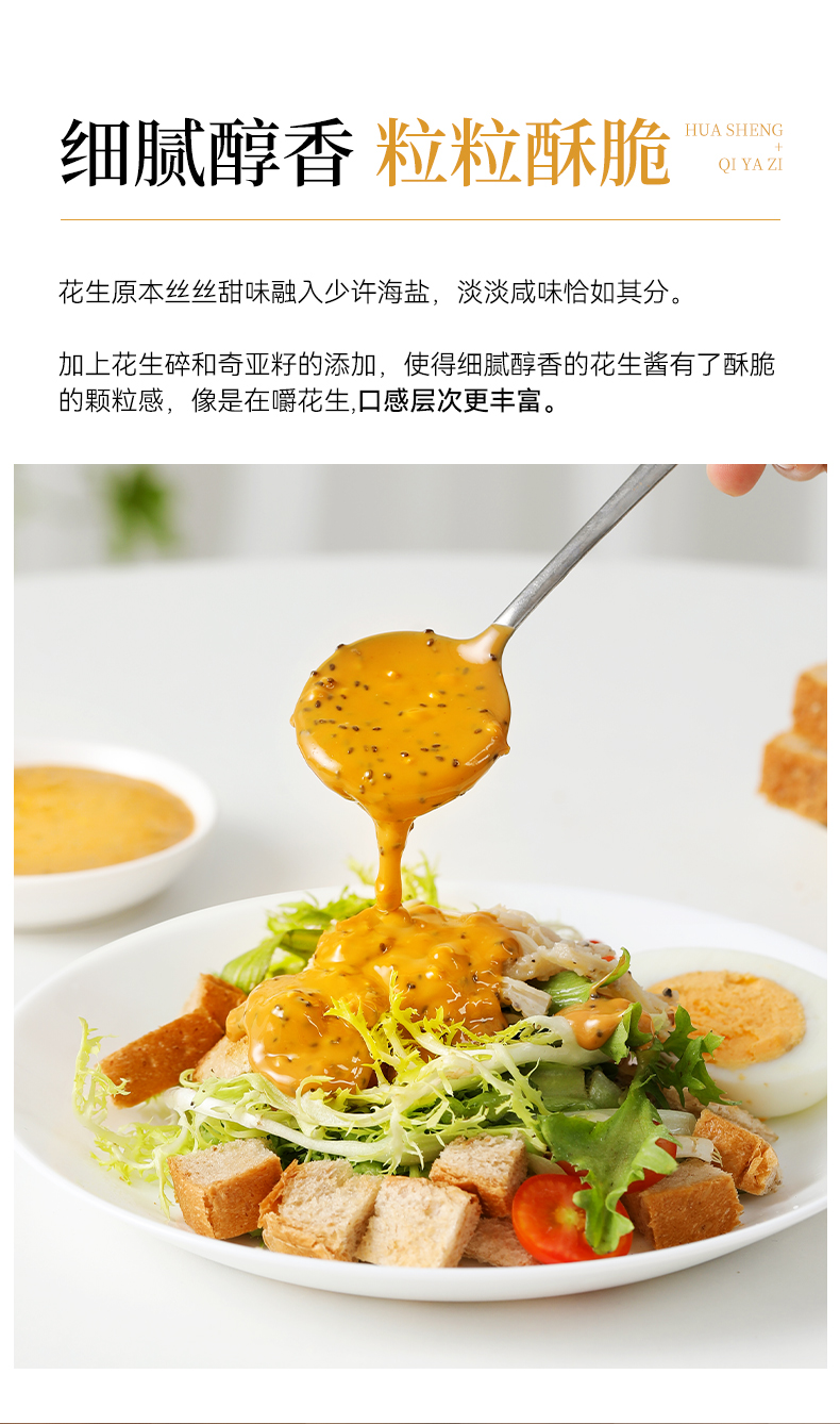 有机奇亚籽花生酱海盐颗粒早餐涂抹拌面包酱即食吐司酱轻食沙拉酱瓶装