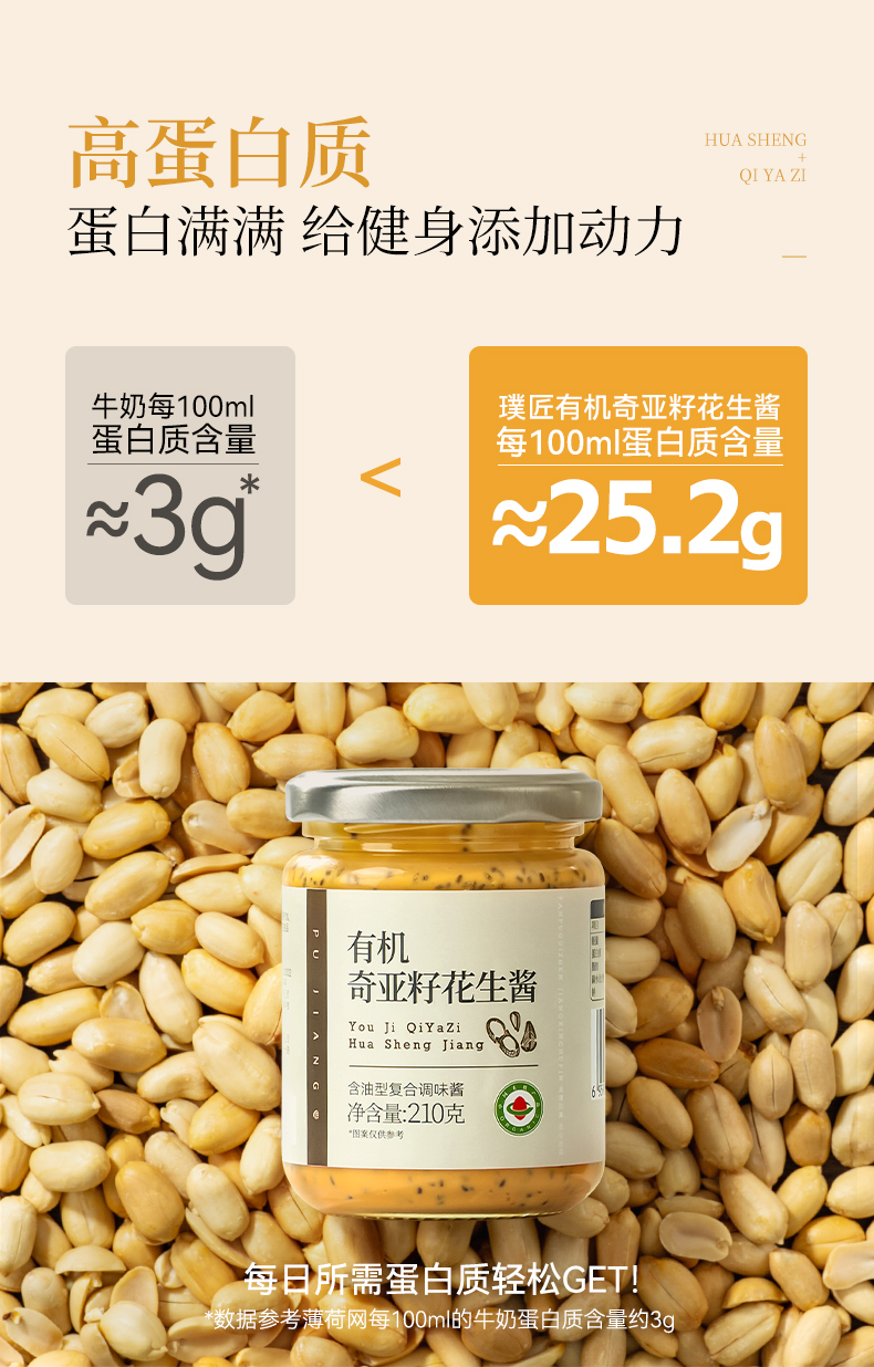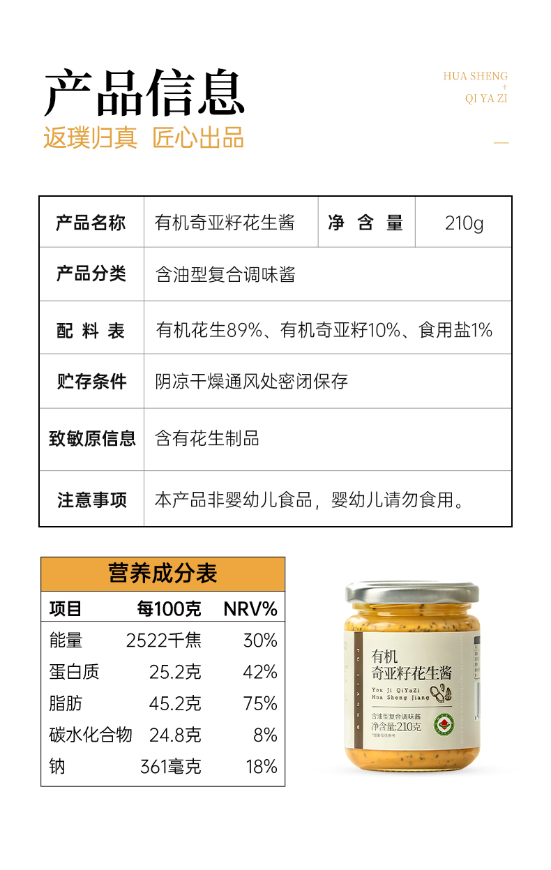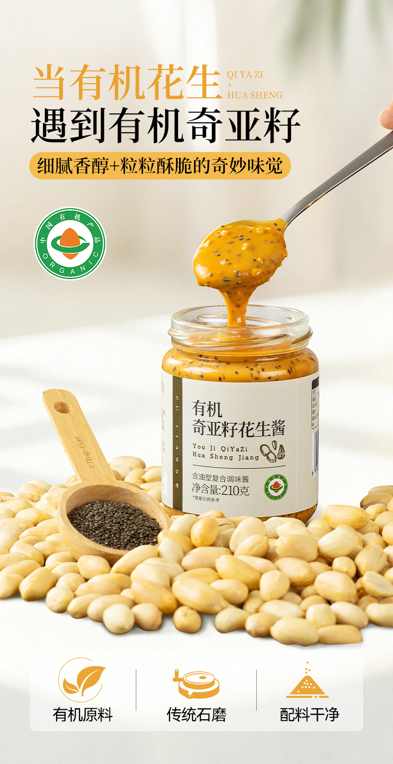 有机奇亚籽花生酱海盐颗粒早餐涂抹拌面包酱即食吐司酱轻食沙拉酱瓶装