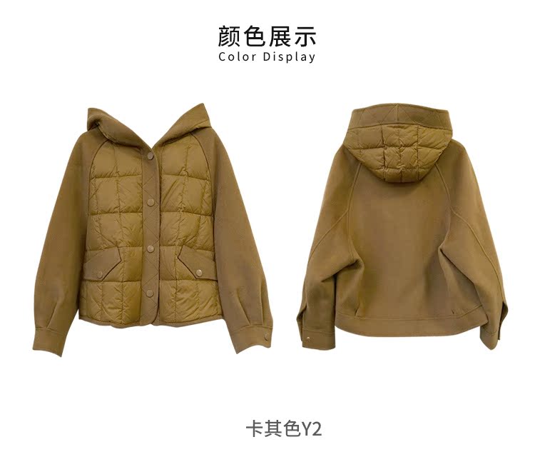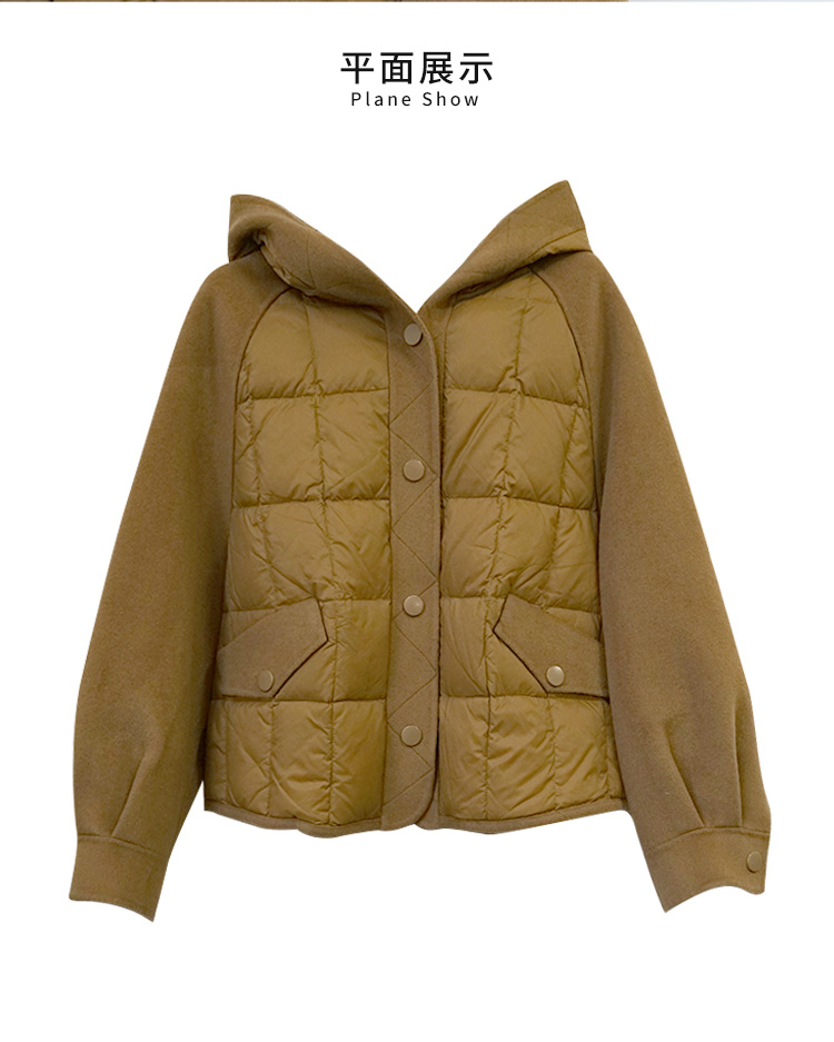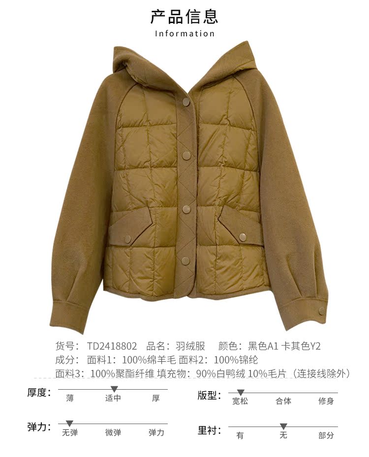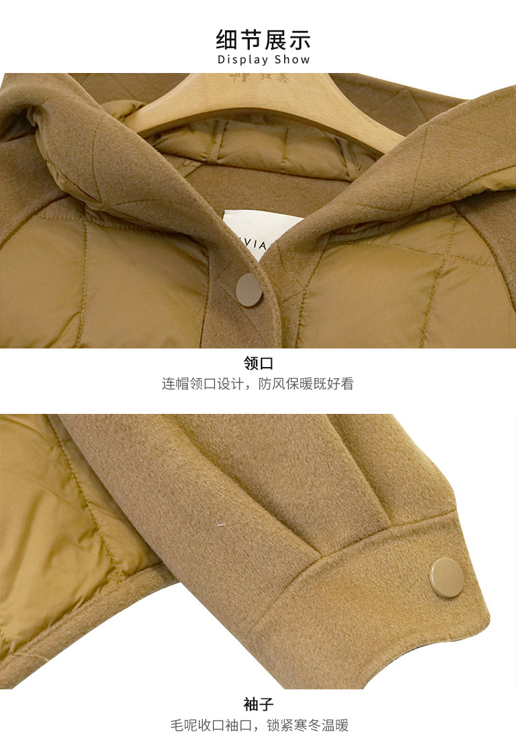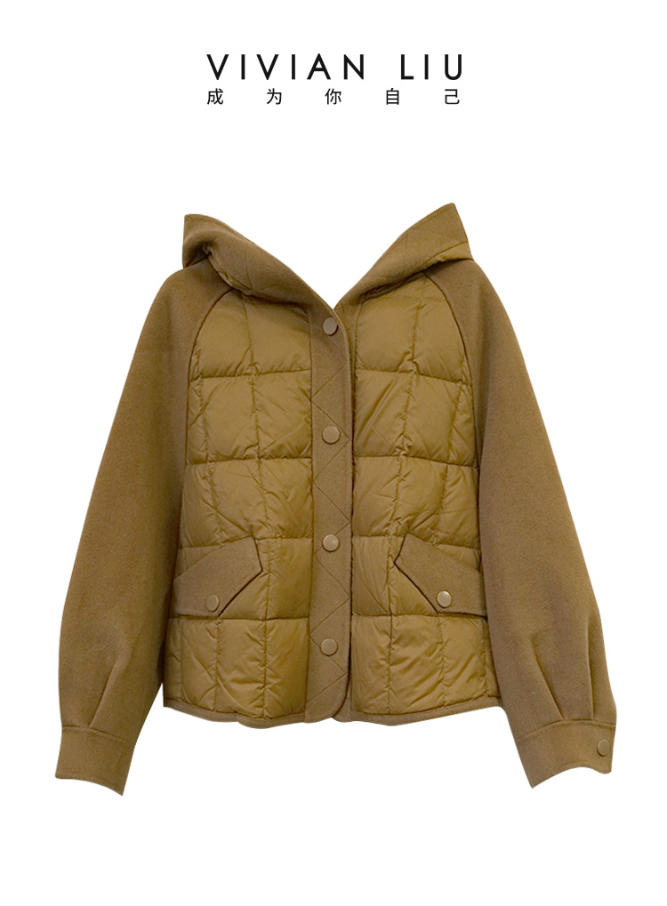 VIVIAN LIU薇薇安刘TD2418802春女装新款连帽毛呢拼接羽绒短外套