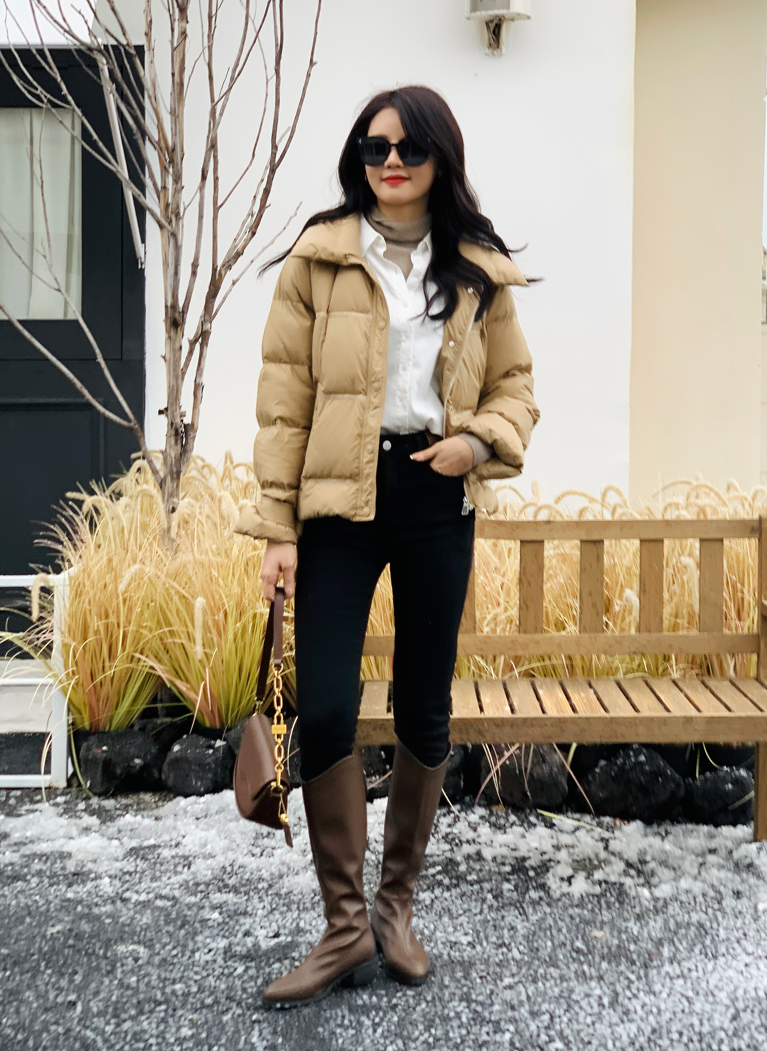 3、在小腿的地方宽窄适中,穿出直直的腿部线条