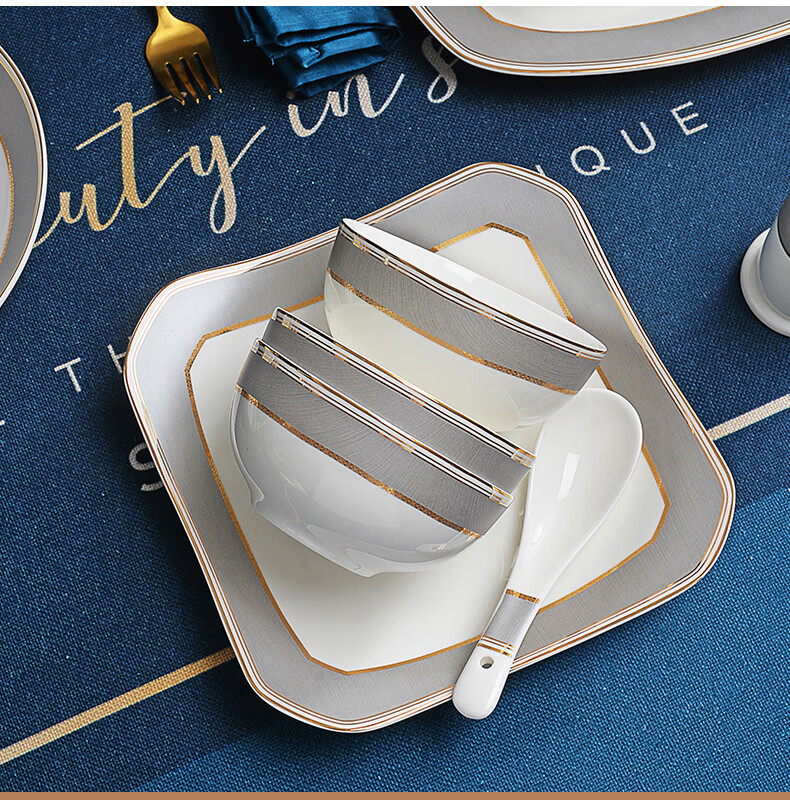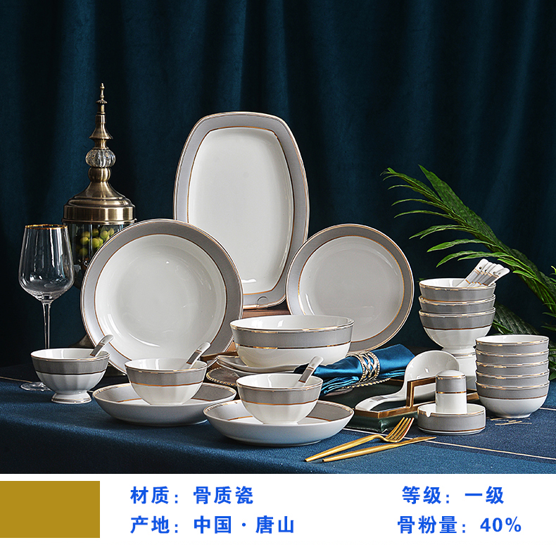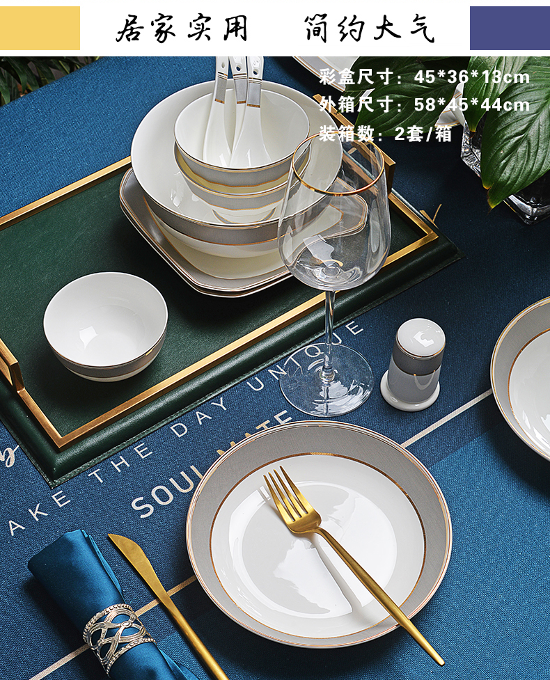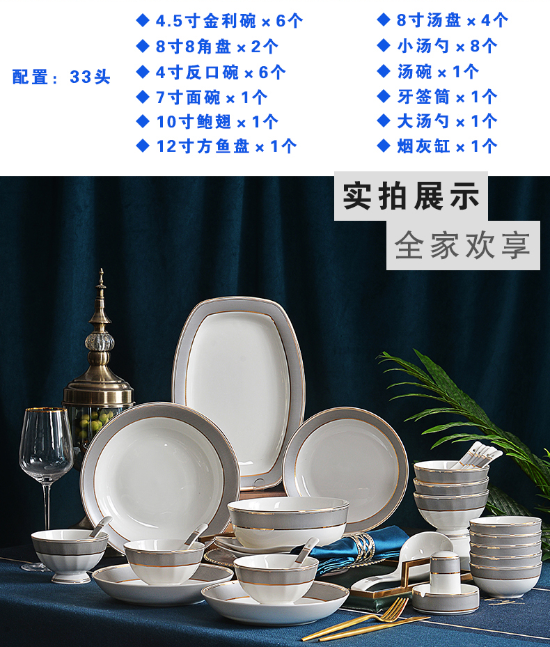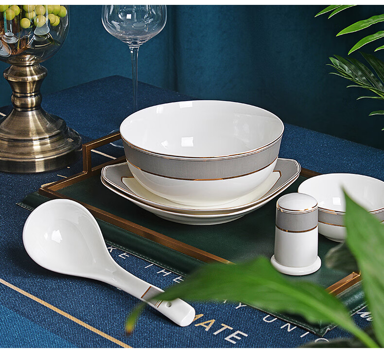 唐惠餐具整套33头唐山骨瓷碗盘餐具套装乔迁搬家结婚礼物皮箱沙漠骆驼