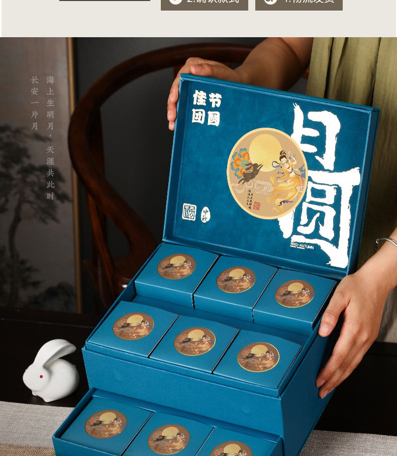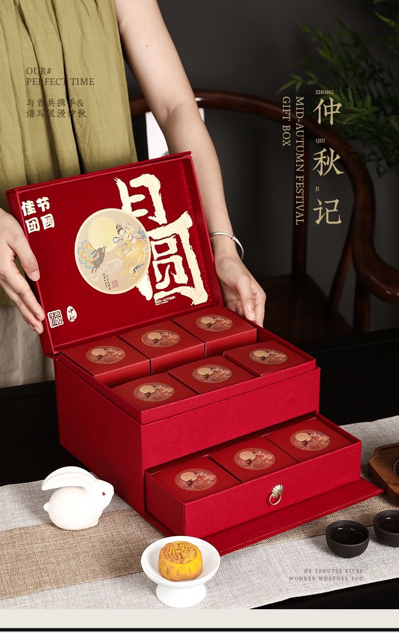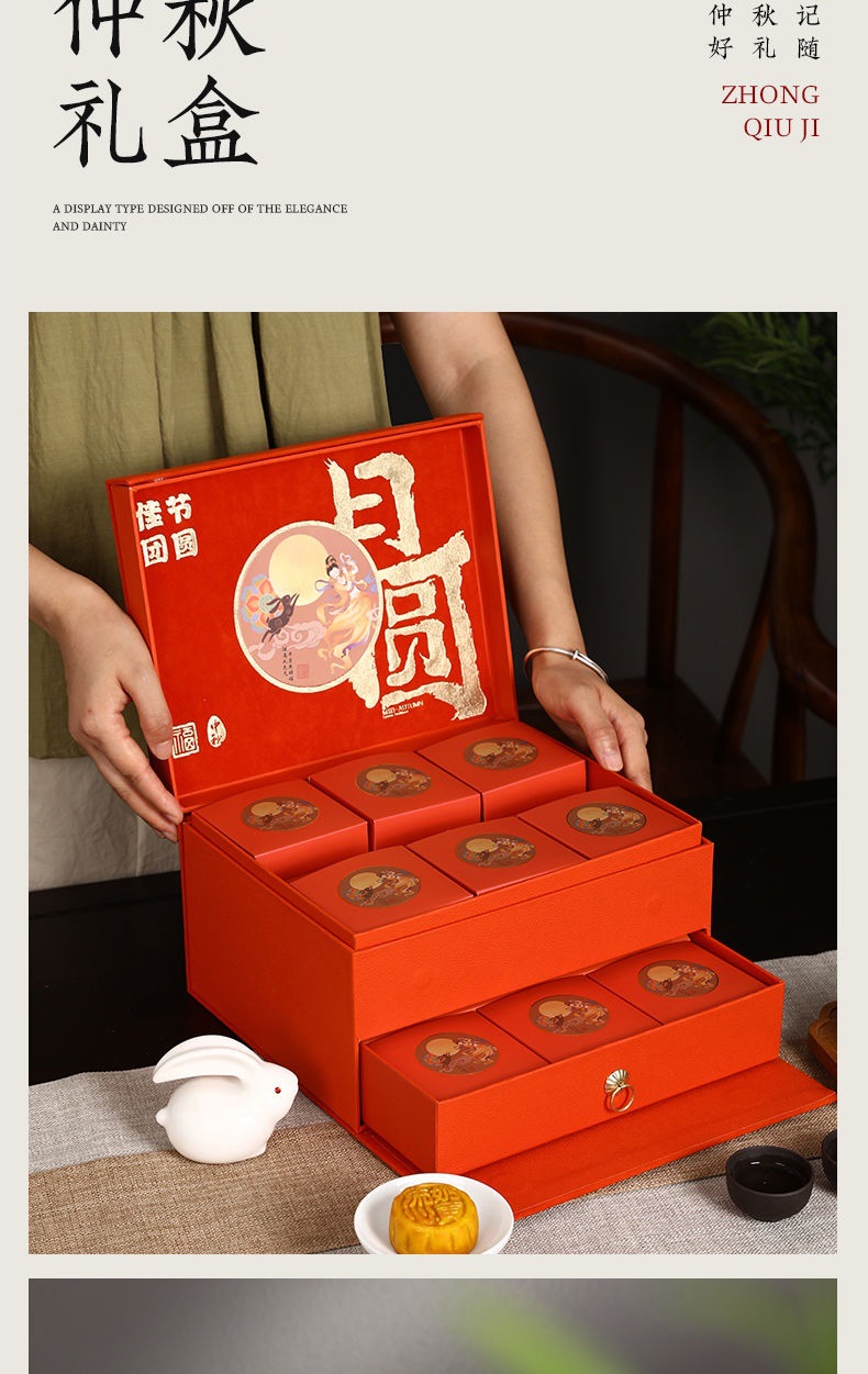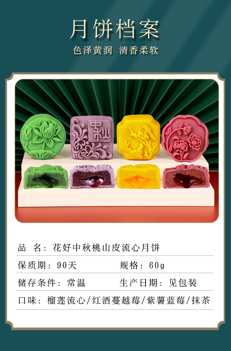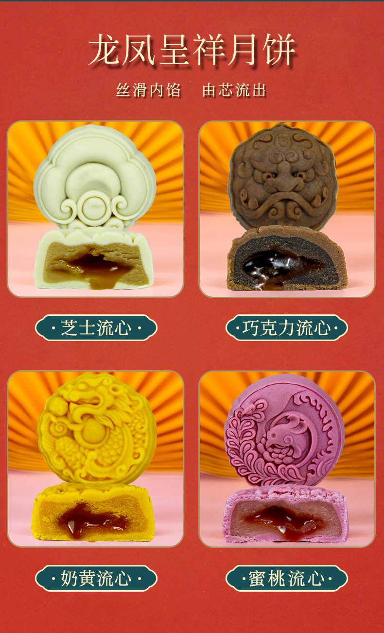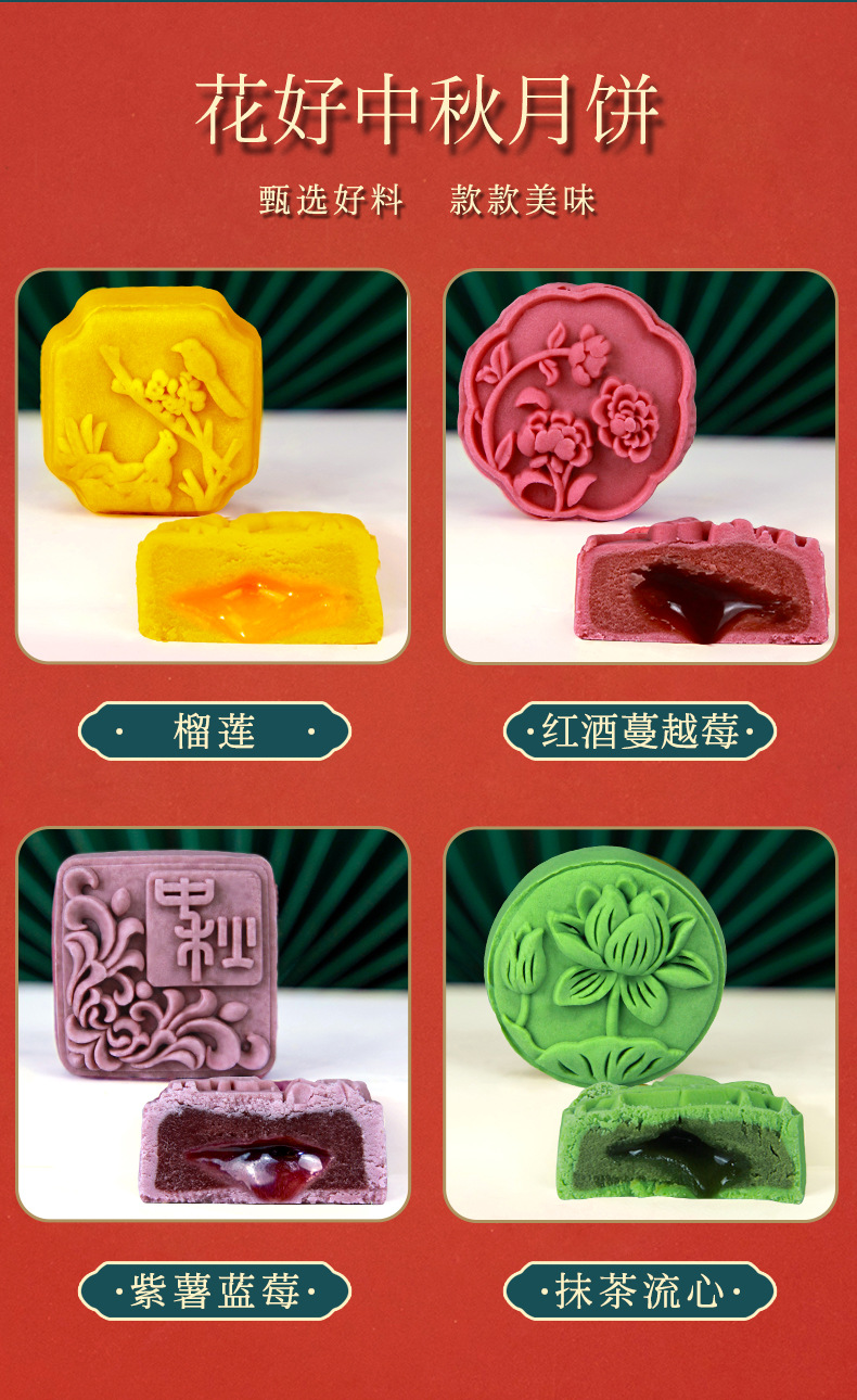 【中秋月饼】广式桃山皮流心月饼 酒店公司礼盒 送礼员工亲戚 高档绒布包装盒