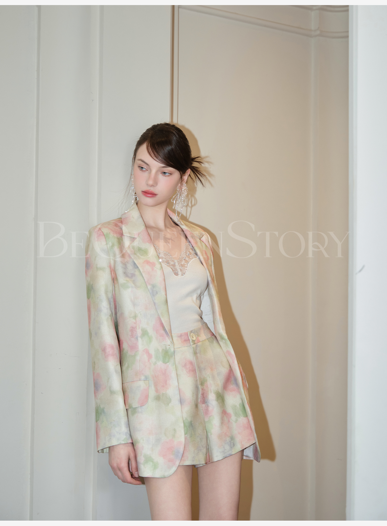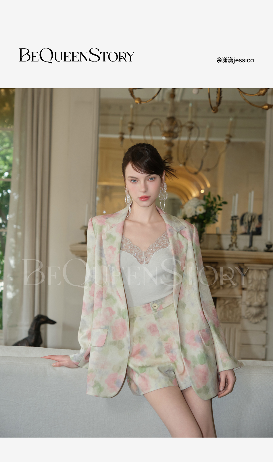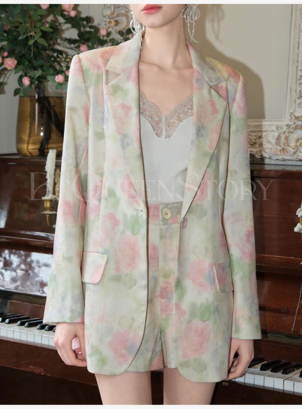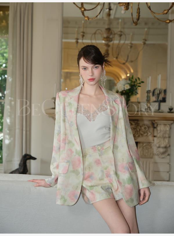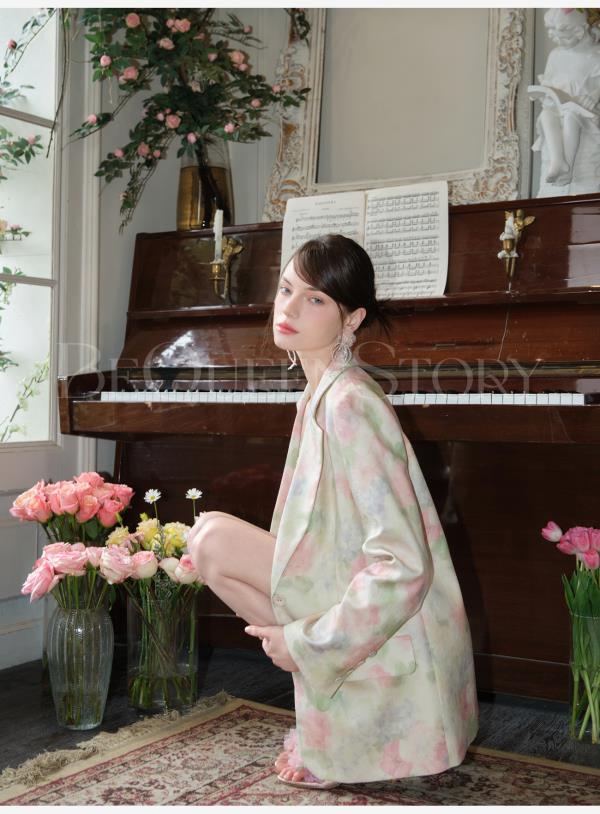 余潇潇【油画绽放】2025春装新款气质时尚休闲百搭花朵印花西装外套