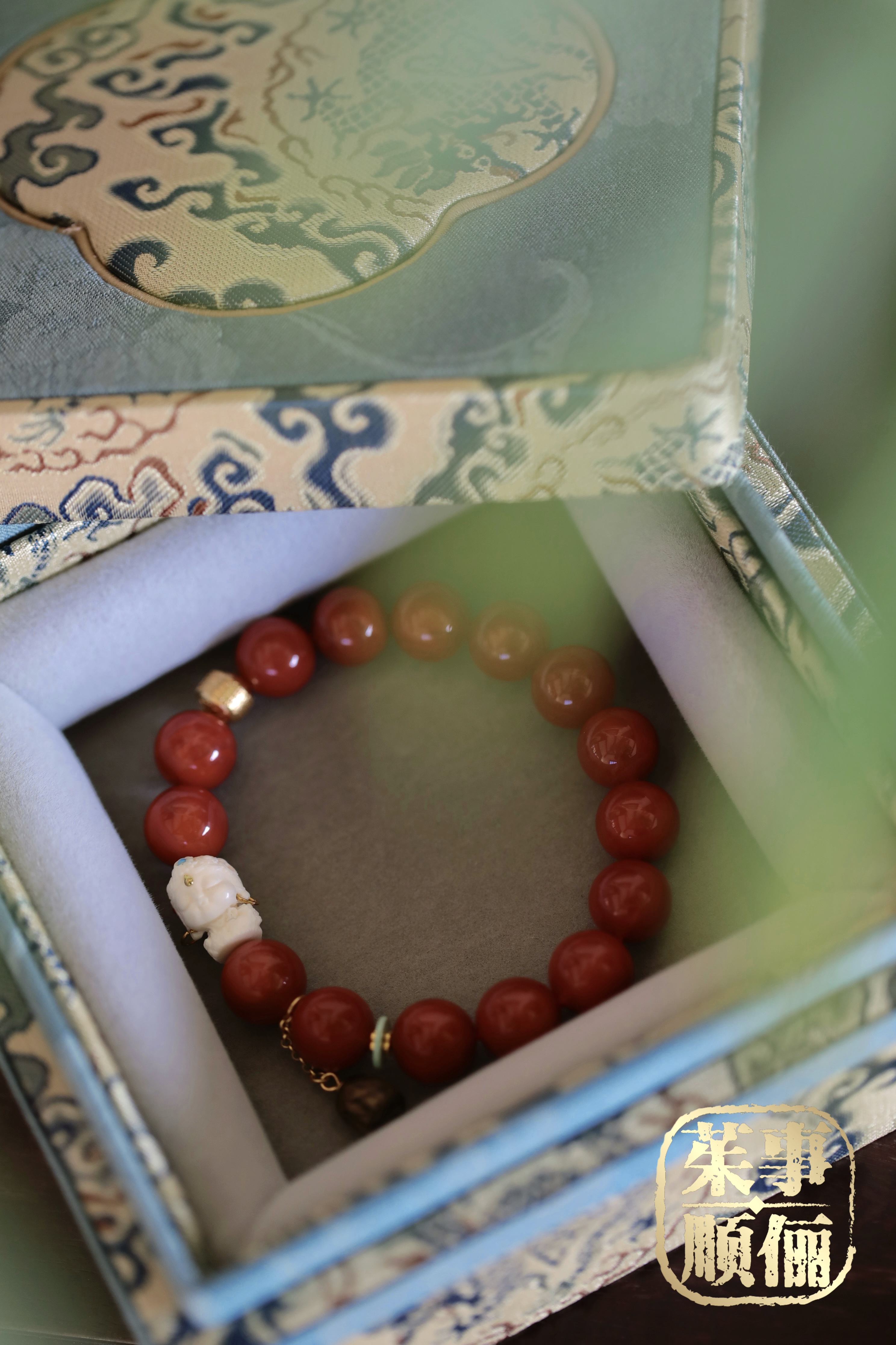 银镀金南红白度母沉香手串