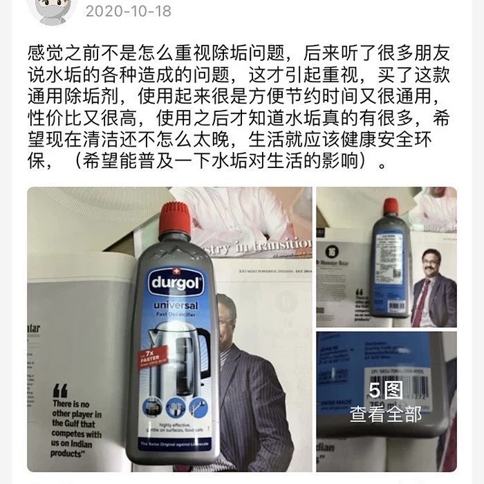 Durgol的大师级除垢“功力”令人啧啧称赞