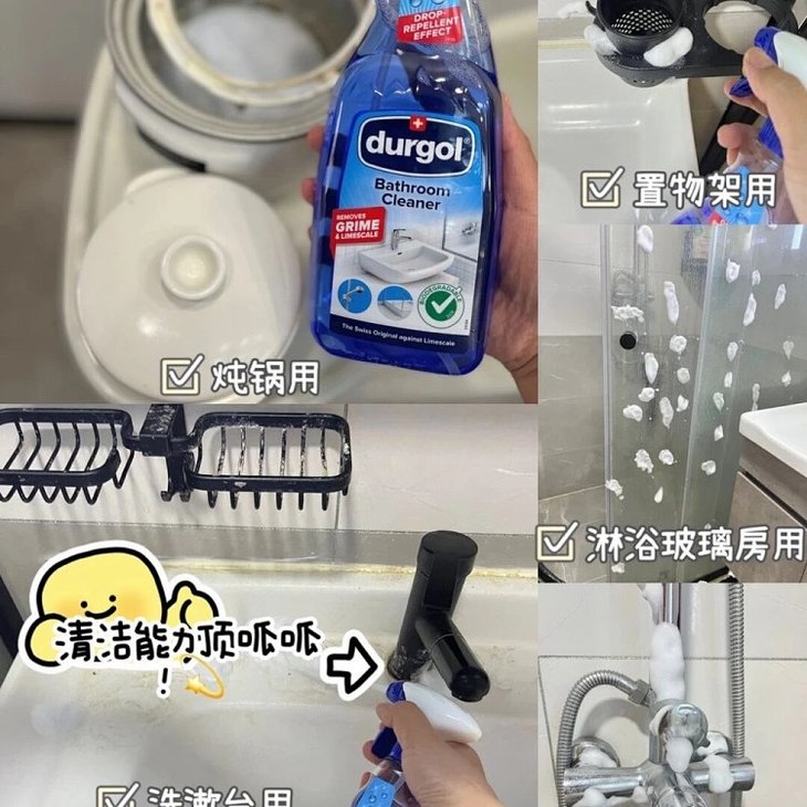 使用场景:浴室瓷砖墙面、镜子、玻璃、水龙头、洗手台、浴缸、地板、马桶外缘等