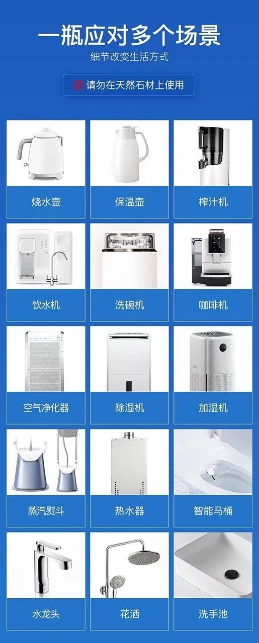 💢除垢力是柠檬酸、醋酸的7-10倍