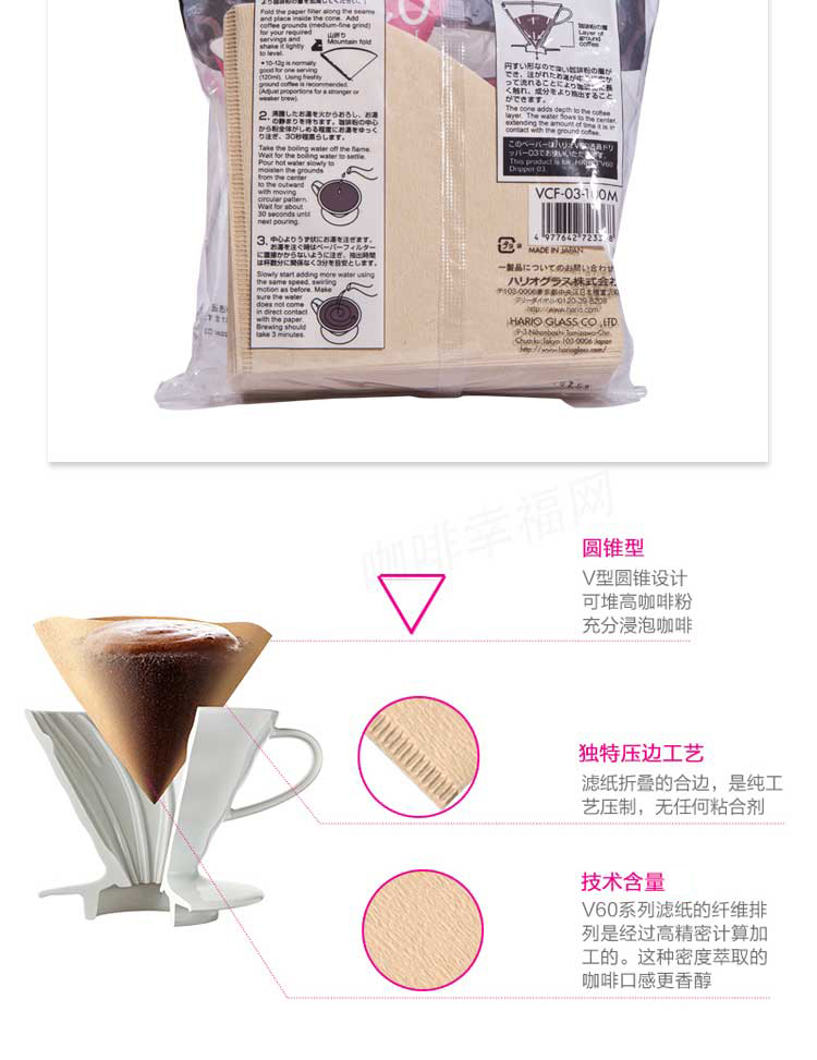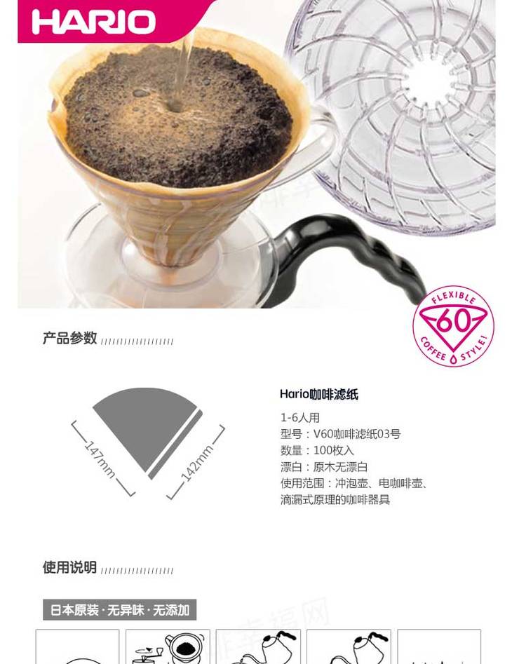 【器具】HARIO哈里欧无漂白102咖啡滤纸(1-4人份)手冲咖啡V60滴漏式