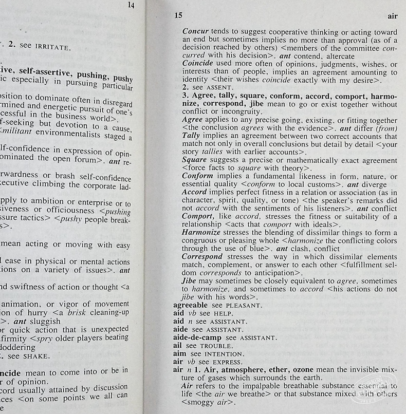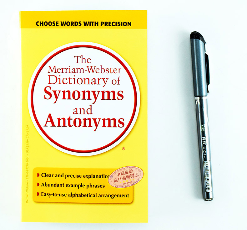 我们时常会遇到两个甚至多个词义相近的英文单词,不知道该在什么时候应用哪个,甚至从中文的意思看都是差不多甚至一样的,但当我们真的随意应用后其实会让外国人觉得我们不专业又或者说会被专业英语人士或者外国人觉得相当可笑。举个例子,如果有人“说这颗螺母与螺丝之间不匹配”,这可能十分正常,但如果换种说法,“这颗螺母与螺丝之间不合适”那就有可能显得十分别扭了,轻则可笑重则扭曲了语义。下面将要介绍的韦氏经典“同义词反义词词典”就十分有针对性地解决了这个问题,甚至还有对应的反义词,无形中还能通过近义词反义词的延伸学习大大扩展了自己的词汇量呢!