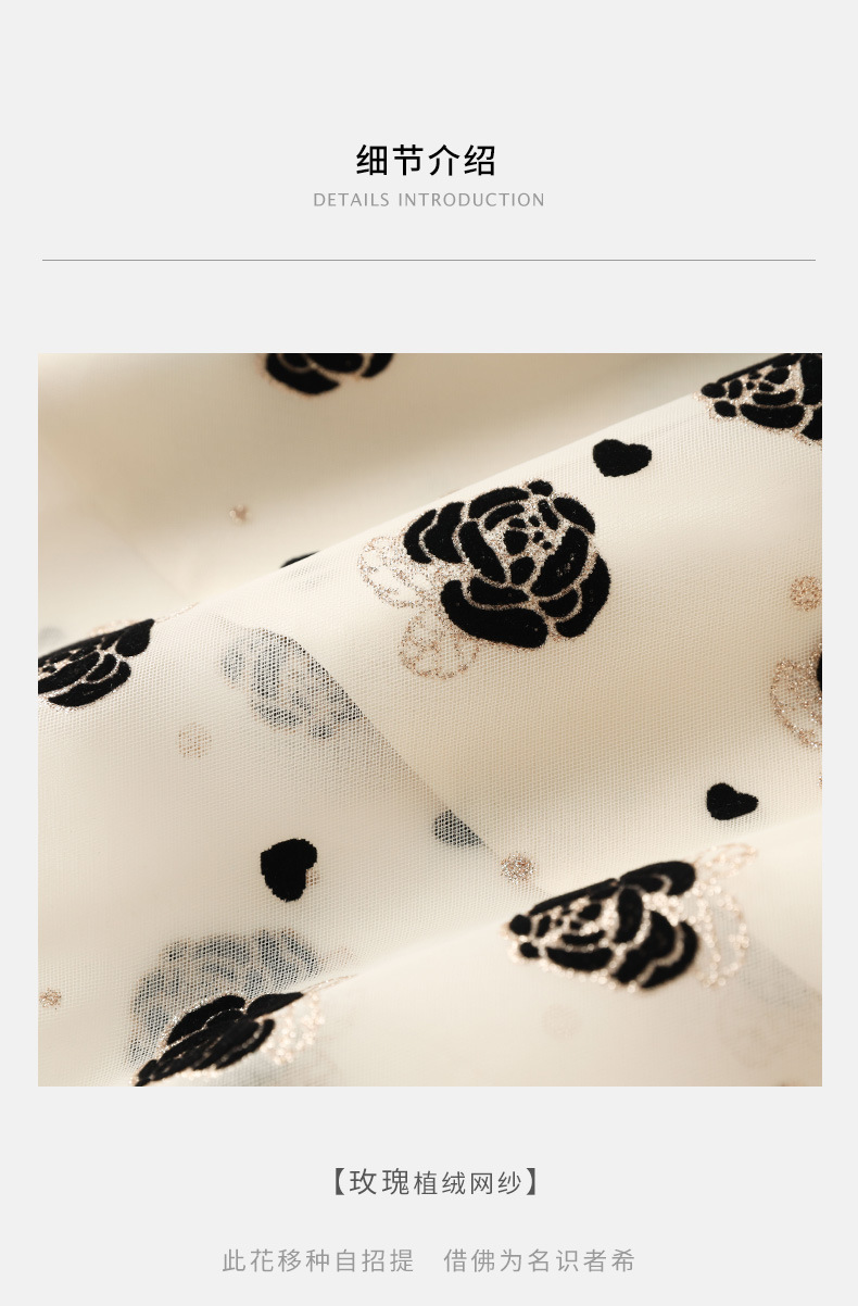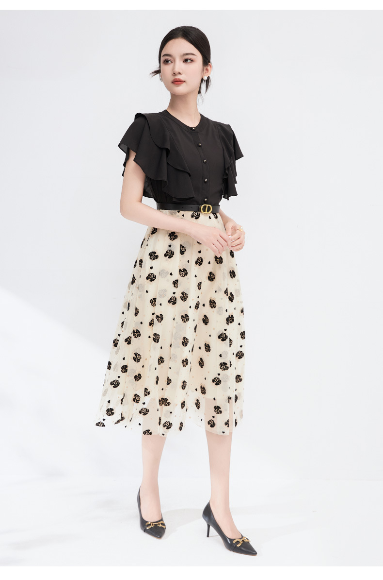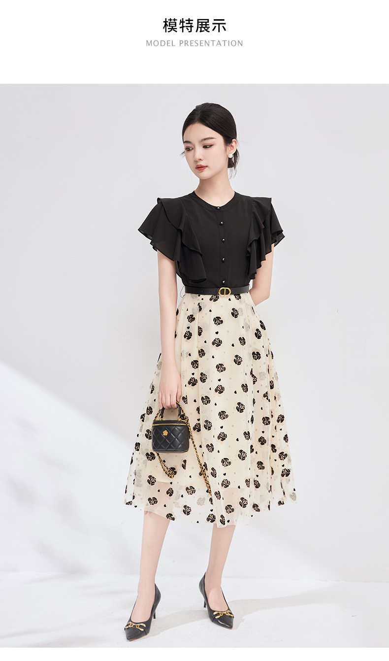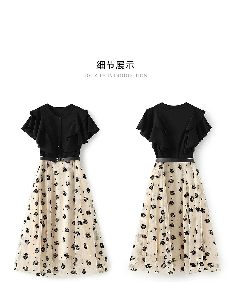 拼接山茶花网纱,气质优雅连衣裙WLZD- 2413502