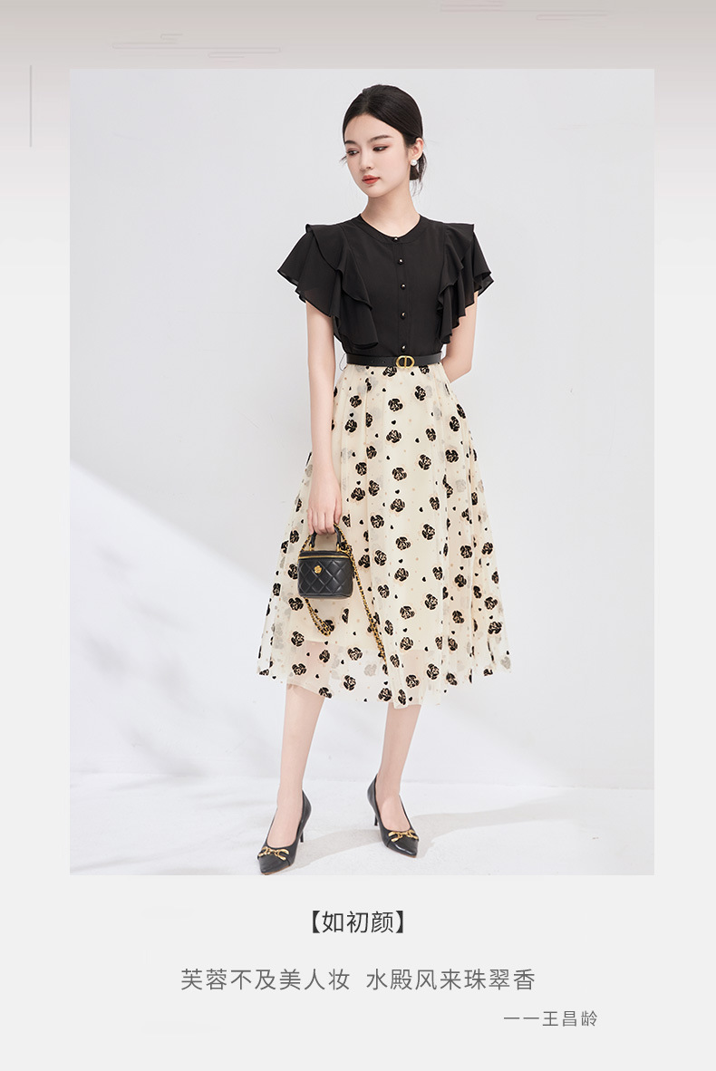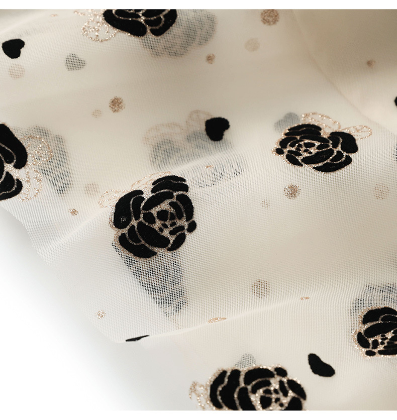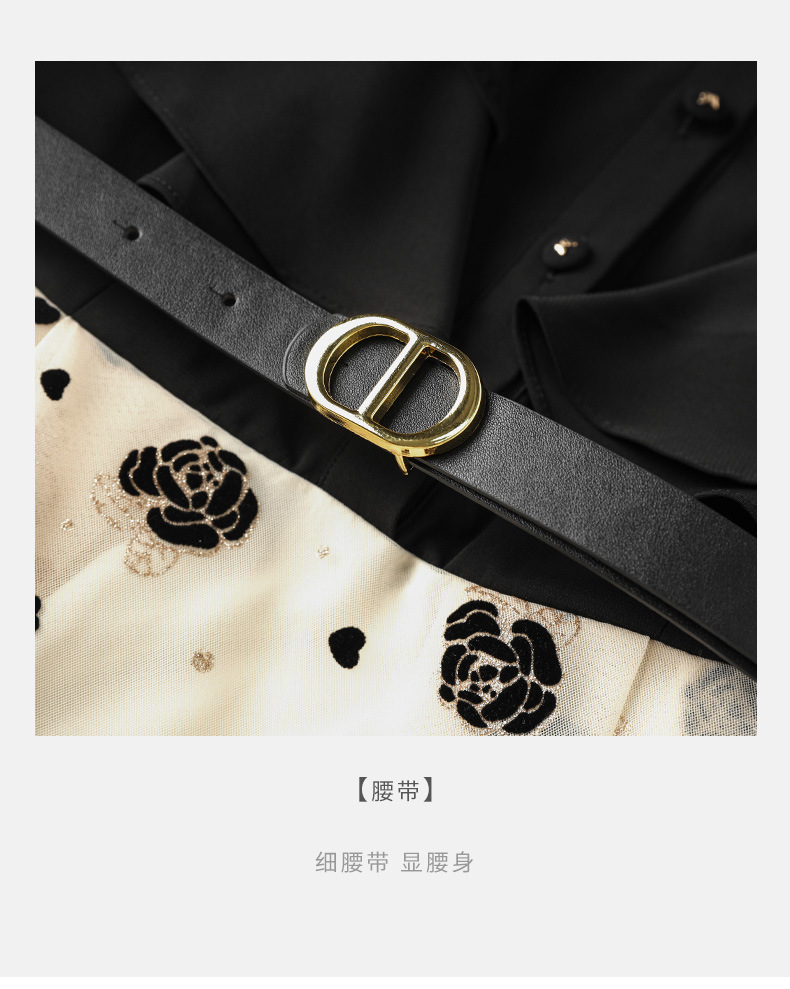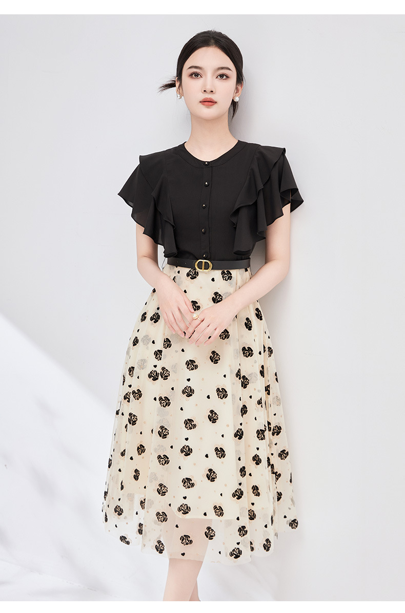 拼接山茶花网纱,气质优雅连衣裙WLZD- 2413502