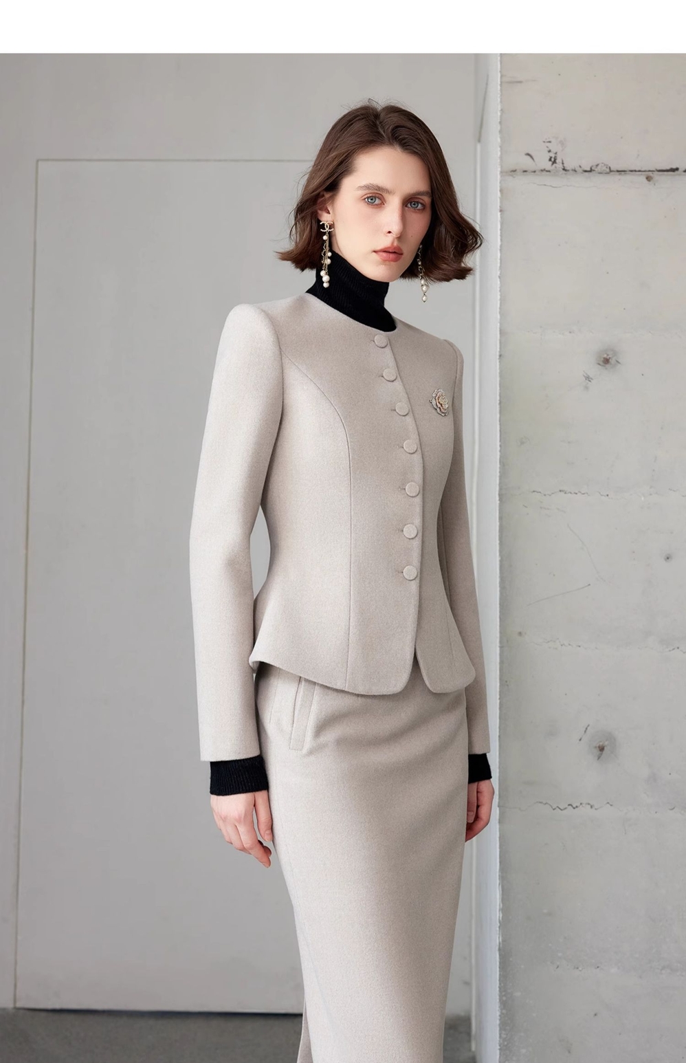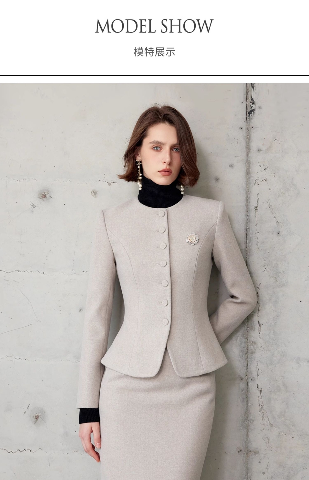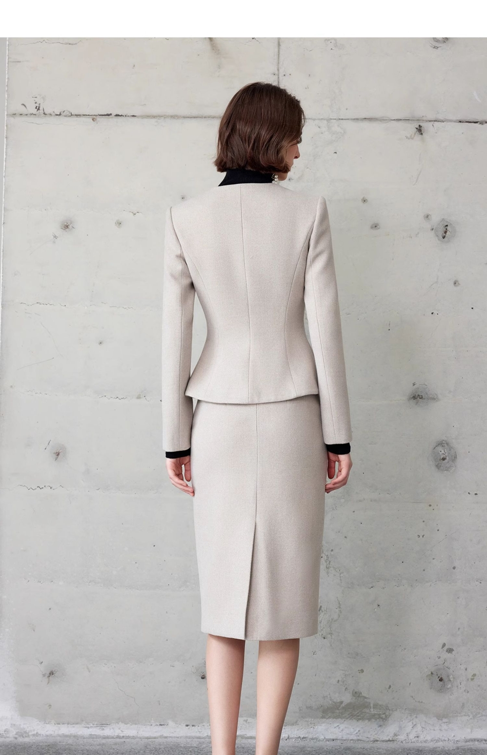 IWY/圆领高级灰长袖西装套裙设计感高级气质干练小香风职业两件套CS2104