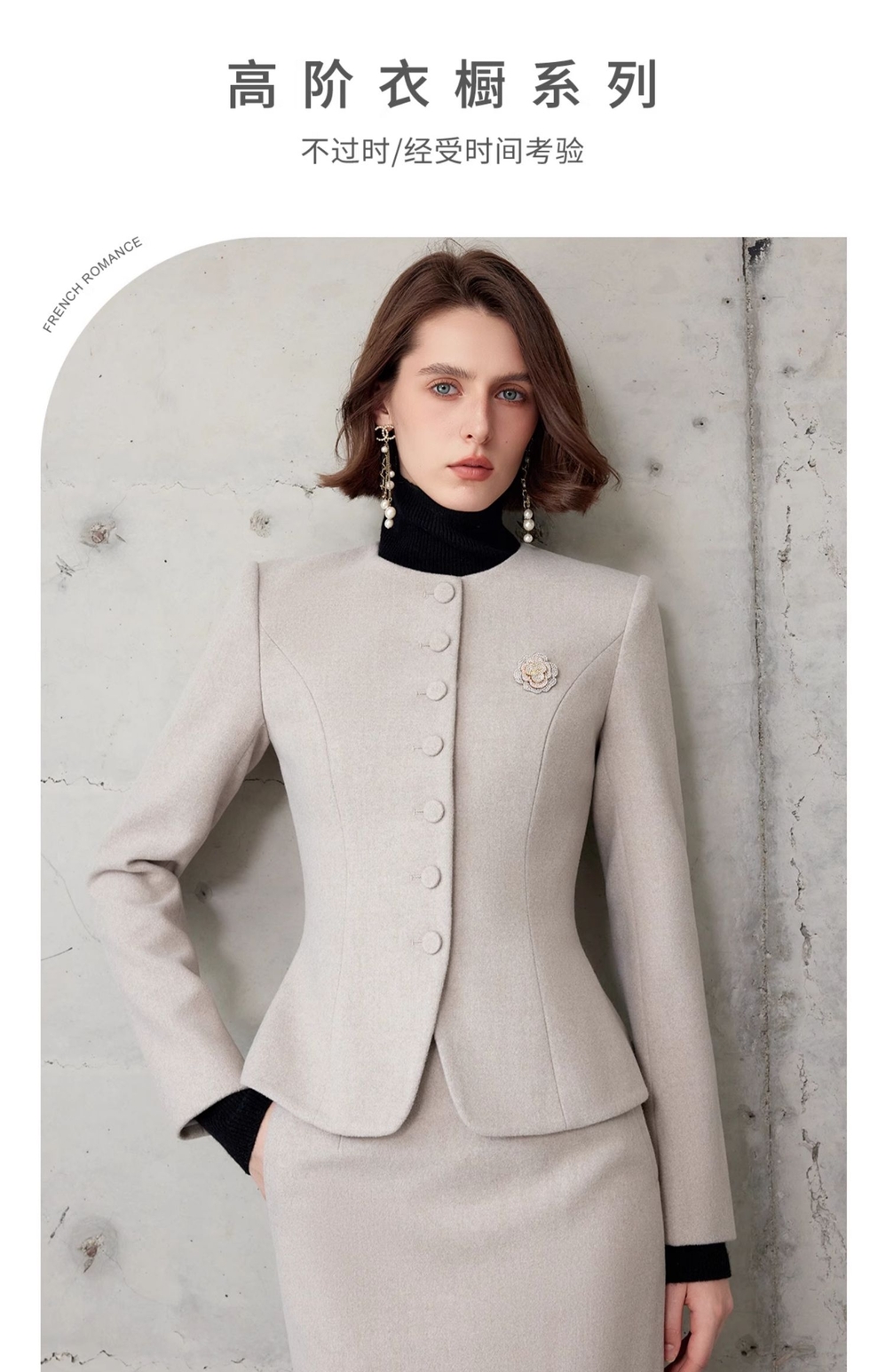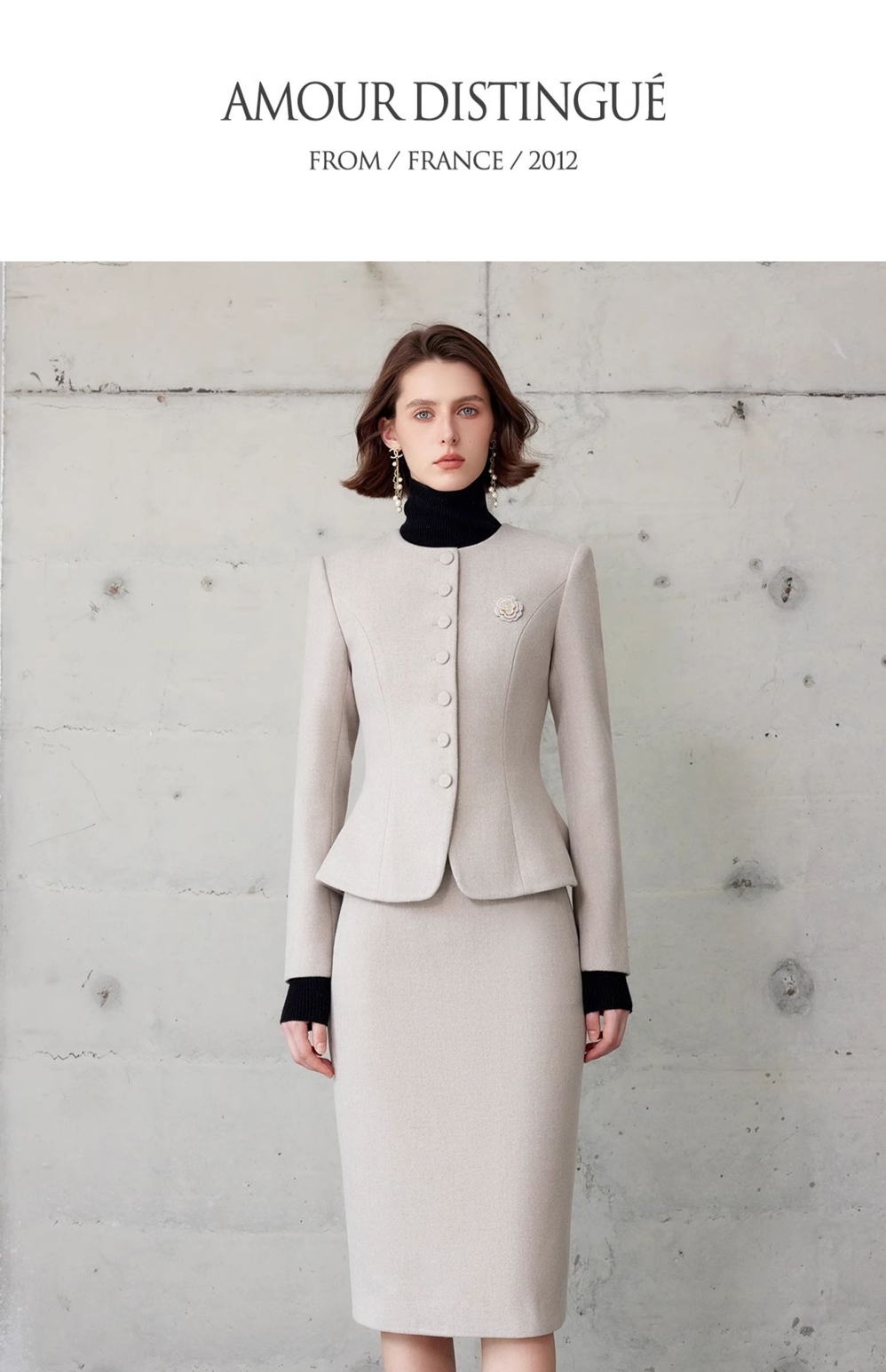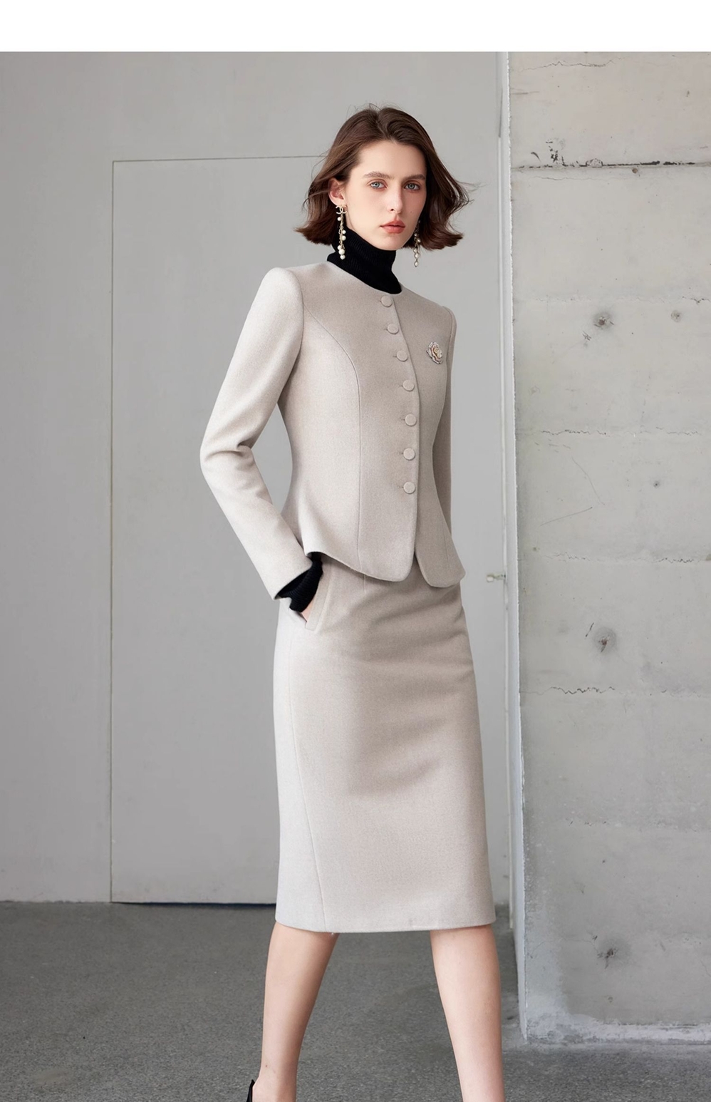IWY/圆领高级灰长袖西装套裙设计感高级气质干练小香风职业两件套CS2104