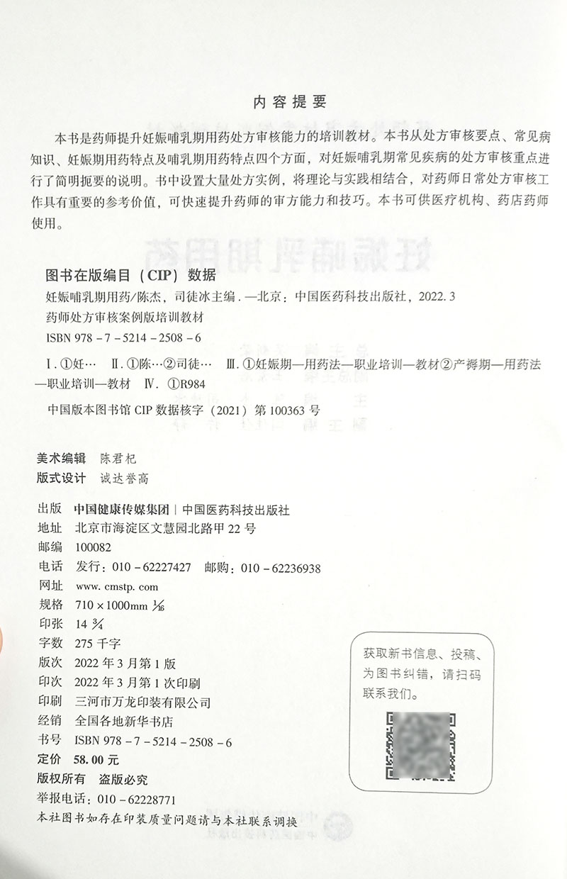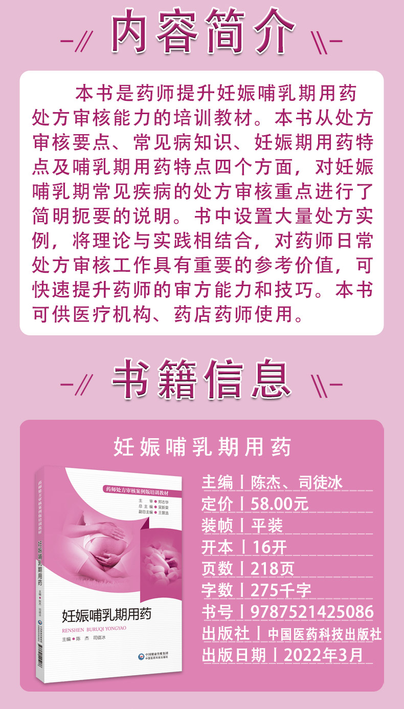 妊娠哺乳期用药 药师处方审核案例版培训教材 陈杰 司徒冰 编 妊娠期产褥期用药法 职业培训教材 中国医药科技出版社9787521425086