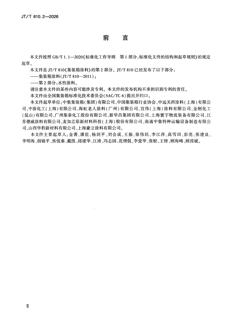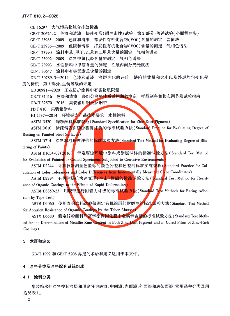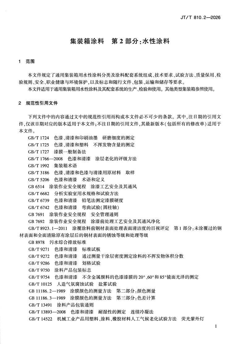 书名:集装箱涂料 第2部分:水性涂料(JT/T 810.2—2026)