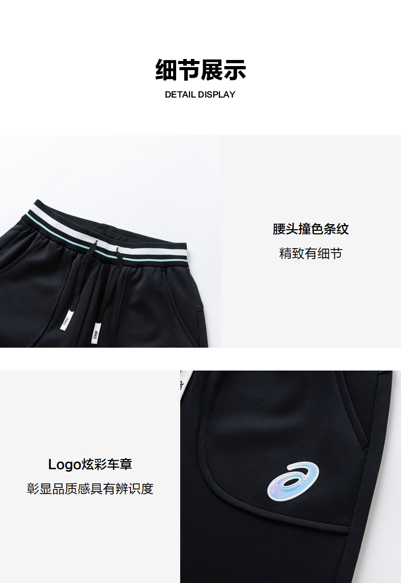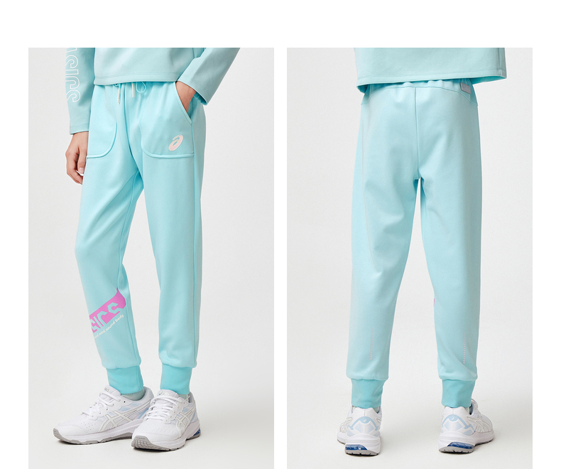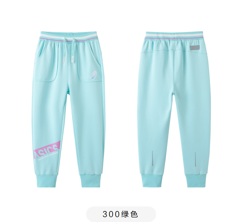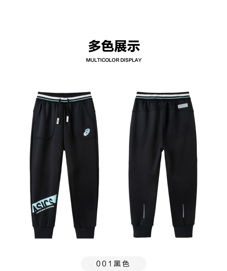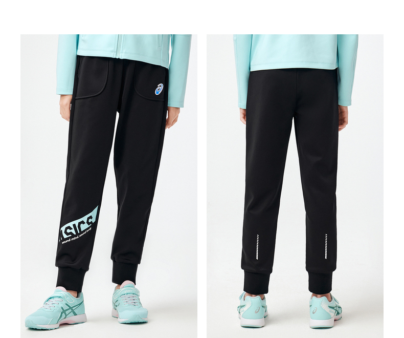 asics/亚瑟士童装24年春季新款女童舒适百搭腰头撞色束脚运动长裤