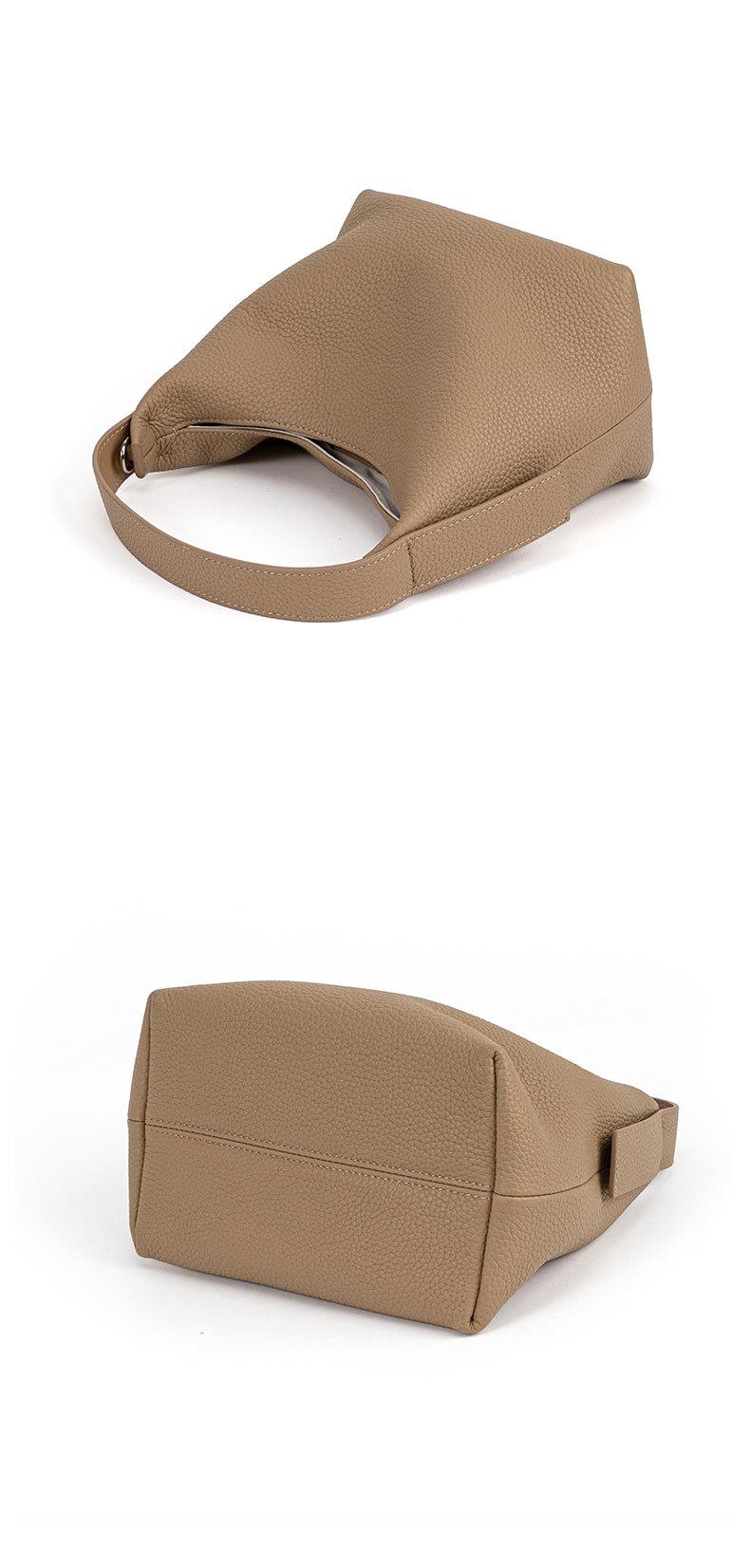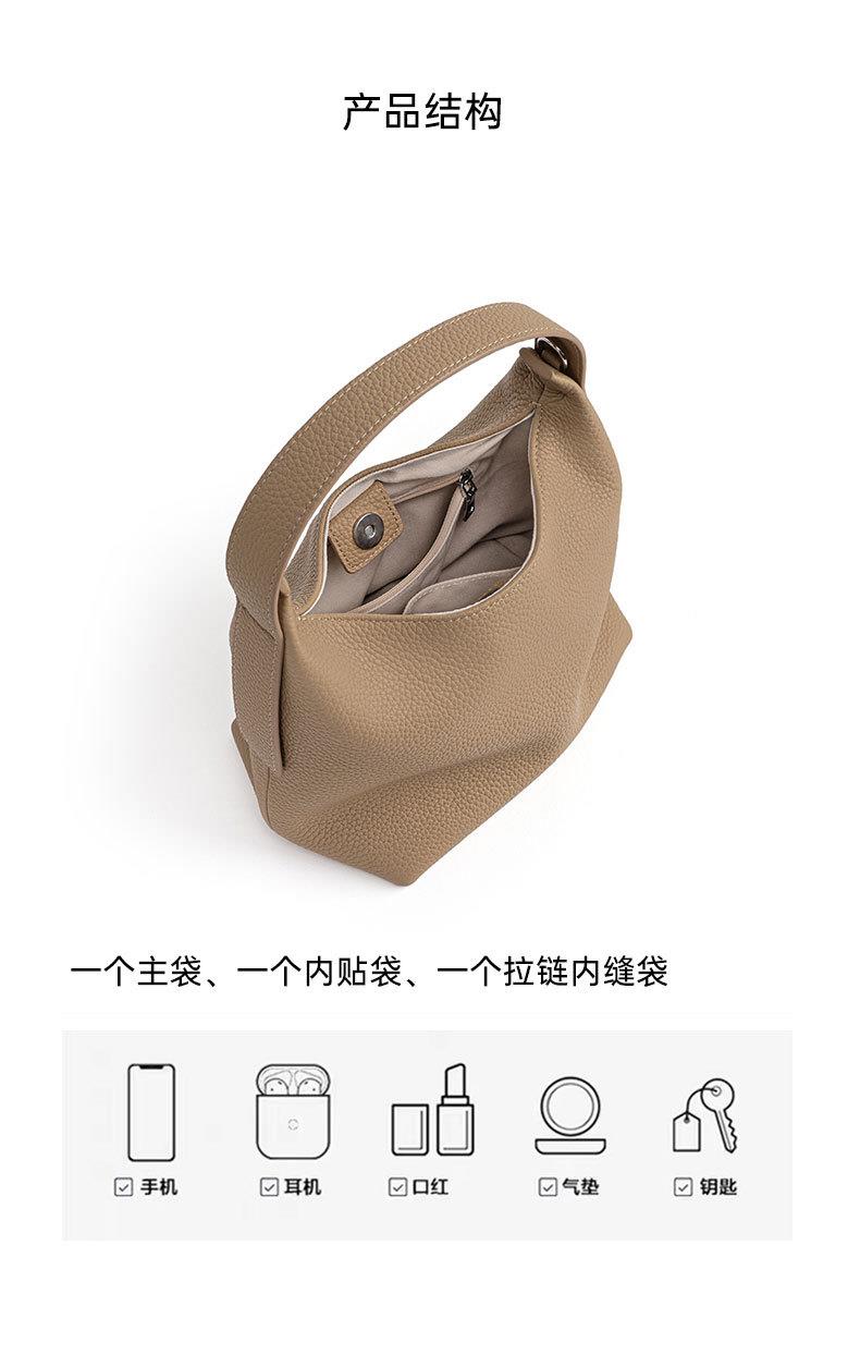通勤百搭水桶包斜挎包韩版荔枝皮时尚手提真皮女包磁扣简约包包