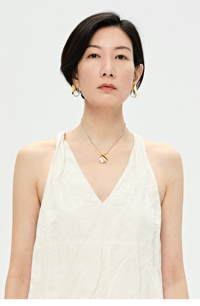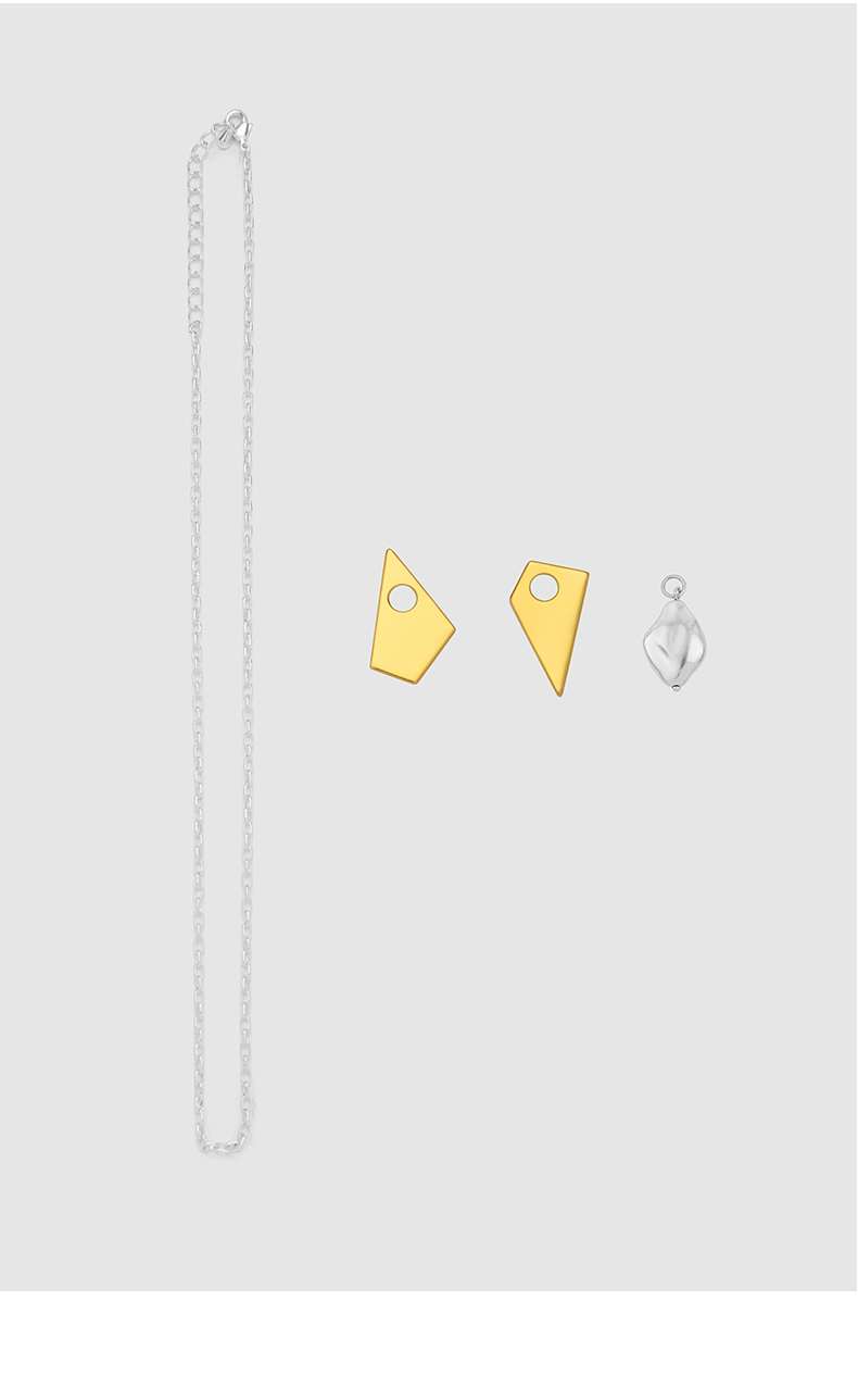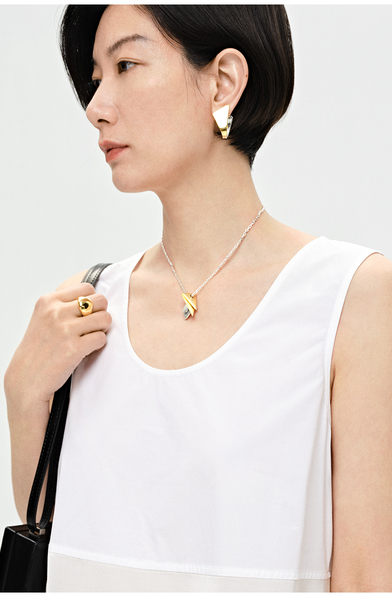 HIDEMI简约几何设计感不对称可拆卸式金银双色项链