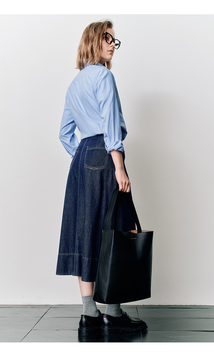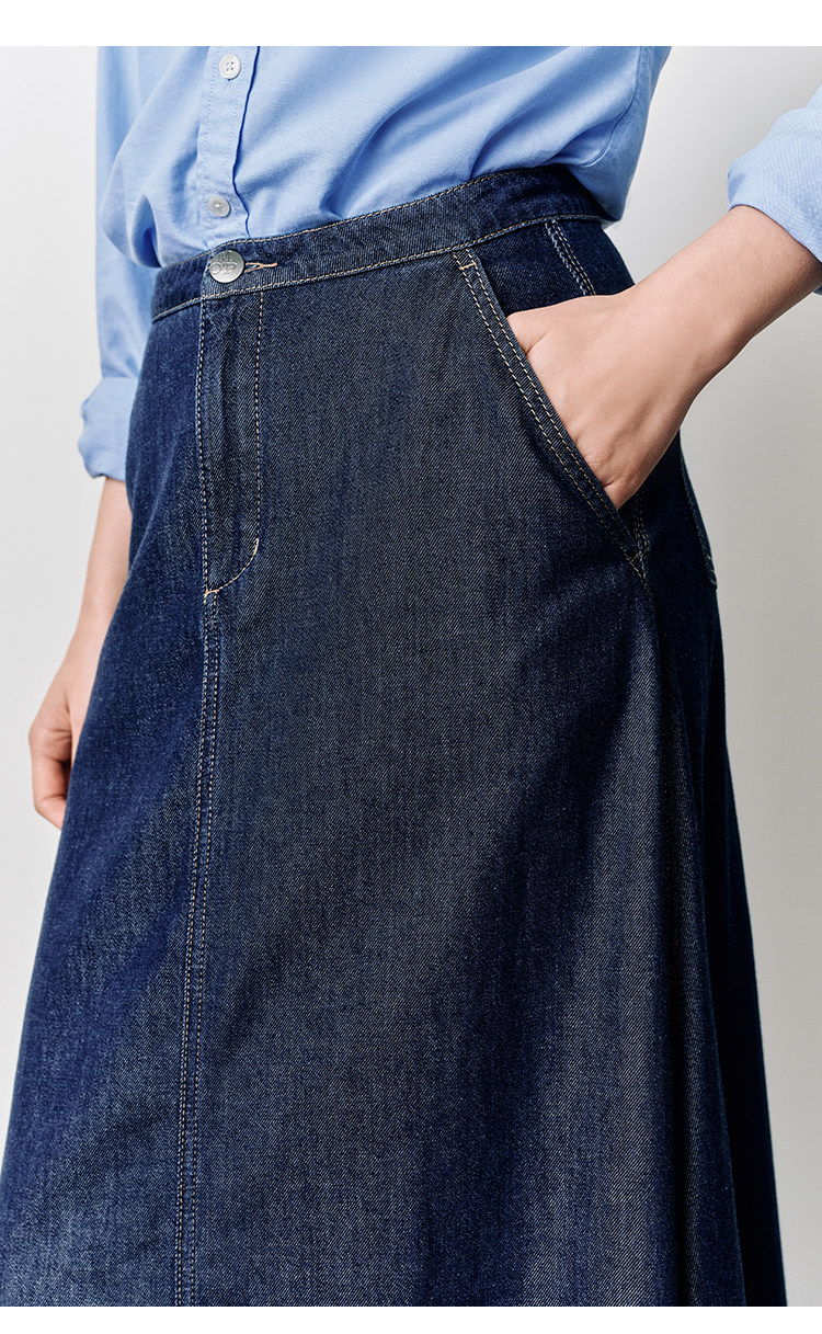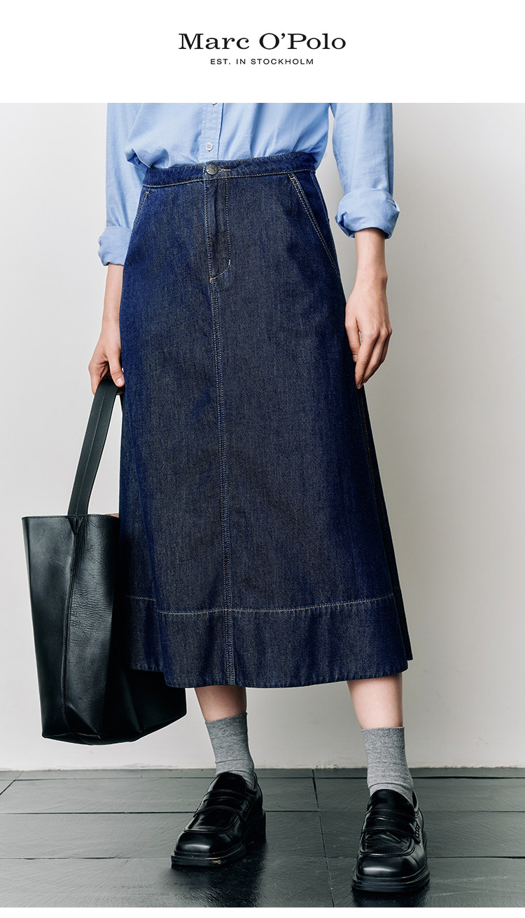 Marc O'Polo/MOP25春秋季新款桑蚕丝混纺牛仔半裙女士长款半身裙