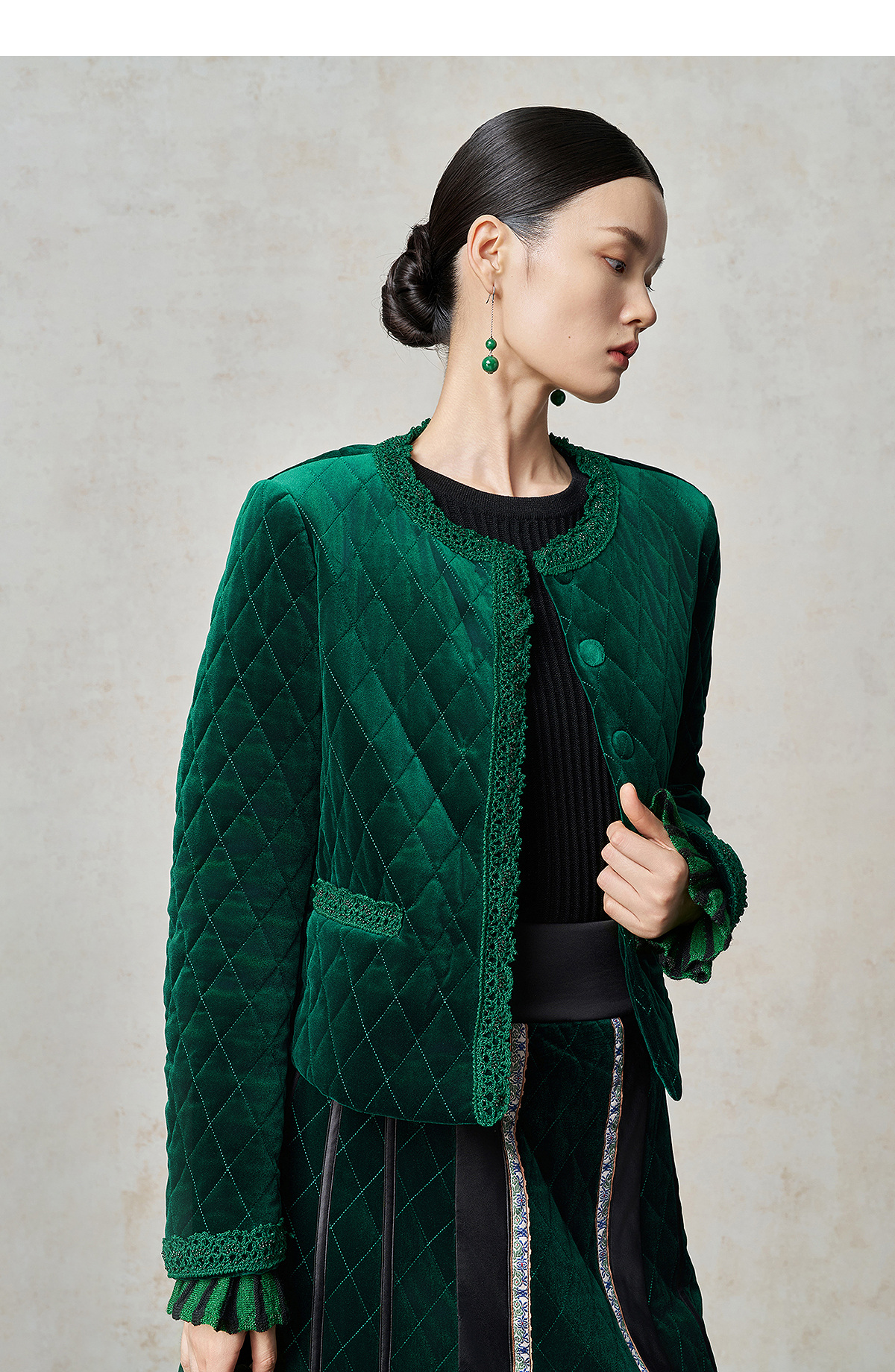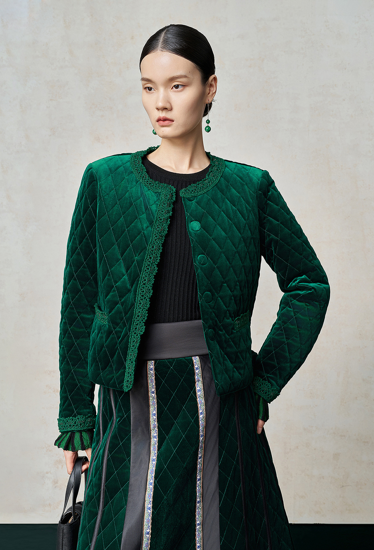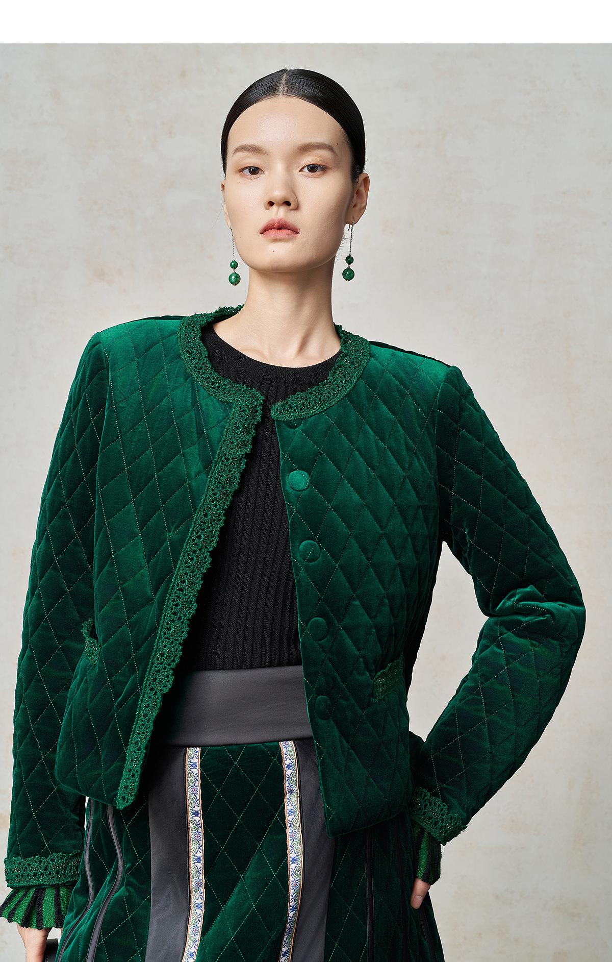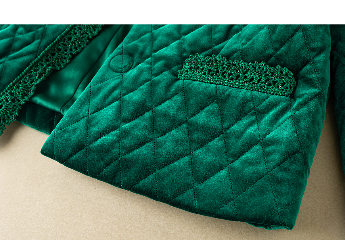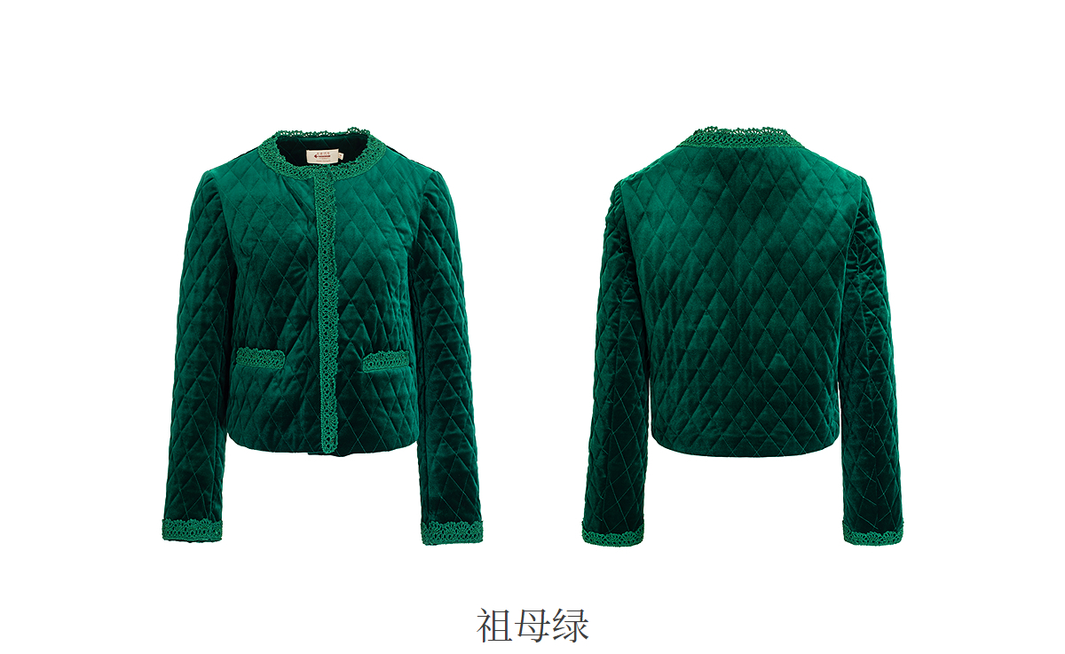 【林栖设计小店】丝绒棉衣手钩花边钉珠2025秋冬新款外套上衣1954045