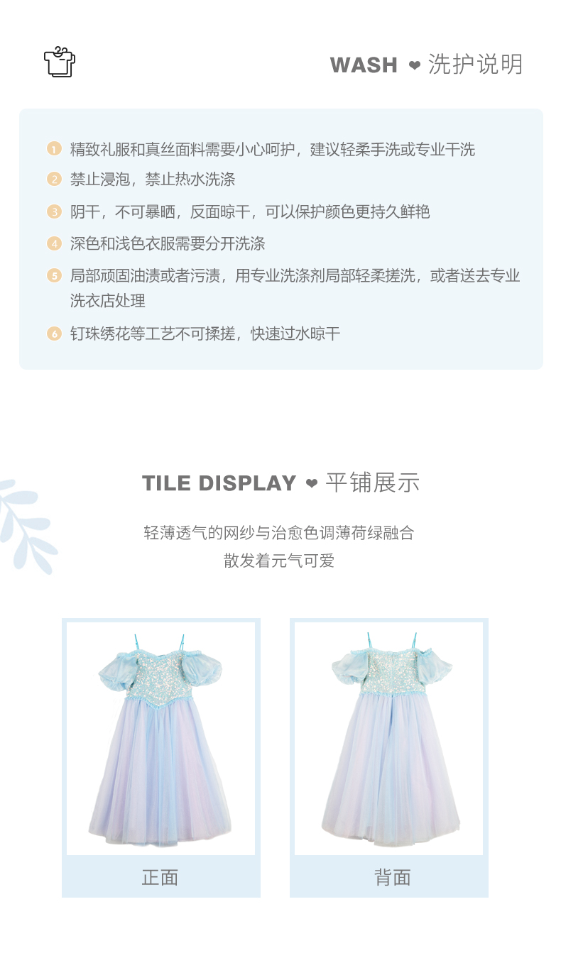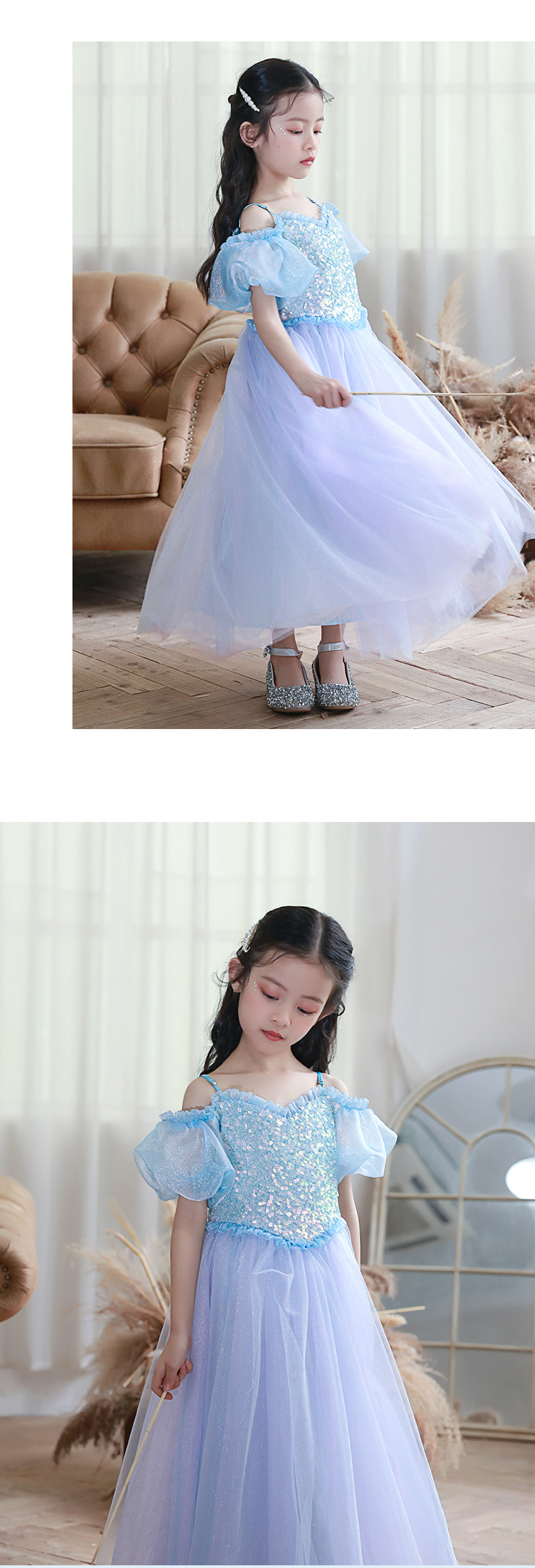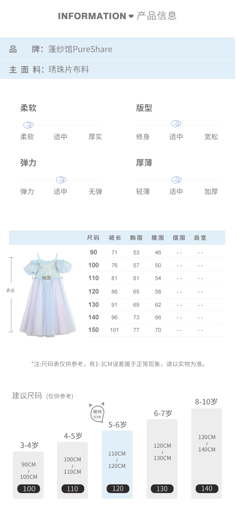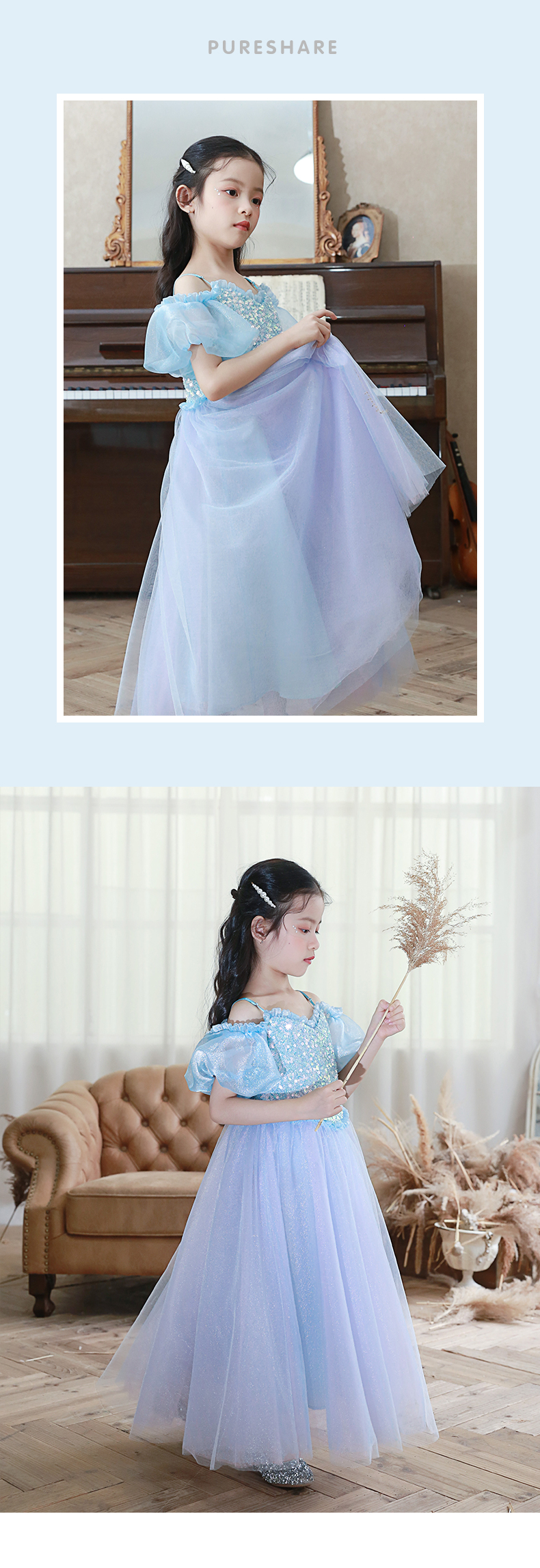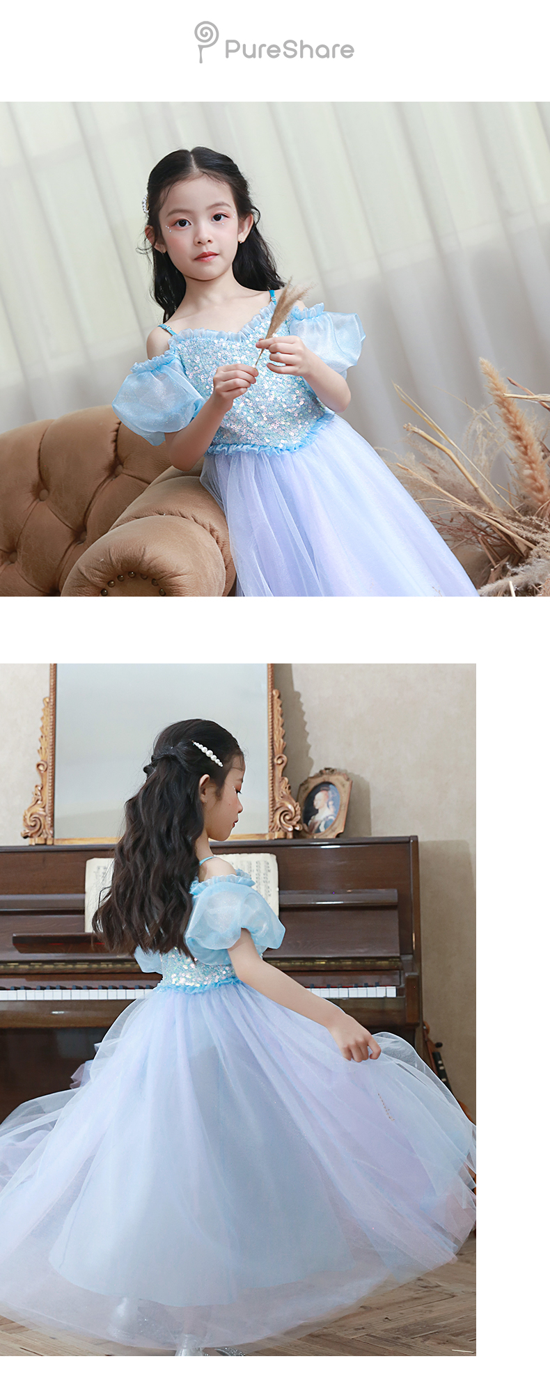 pureshare美人鱼2公主裙女童连衣裙2021年夏艾莎蓬纱洋气礼服-海姑娘