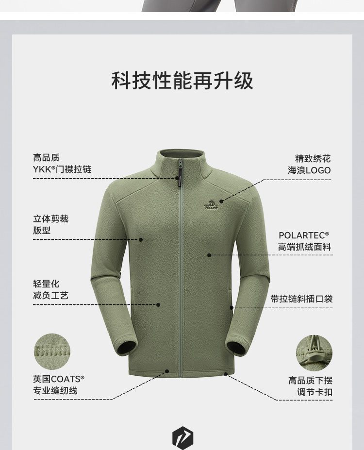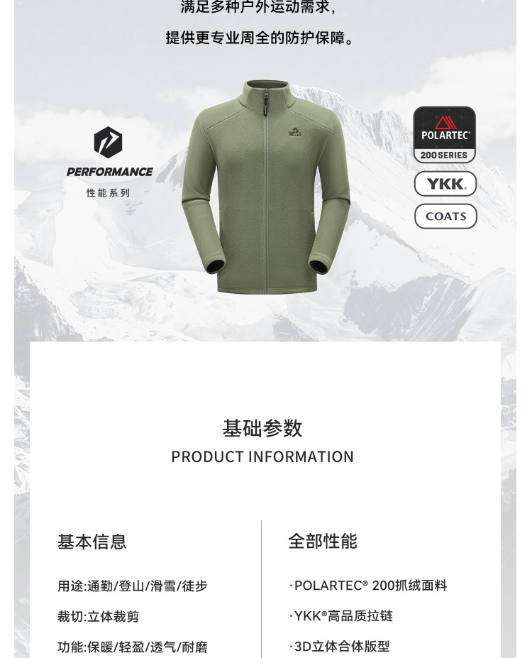 【P系列】伯希和Polartec200户外抓绒衣男轻量立领内胆拉链外套女