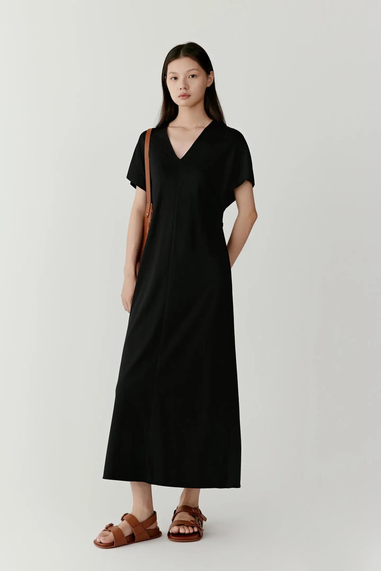 简洁V领,连肩飞袖尽显灵动,巧妙修饰身形