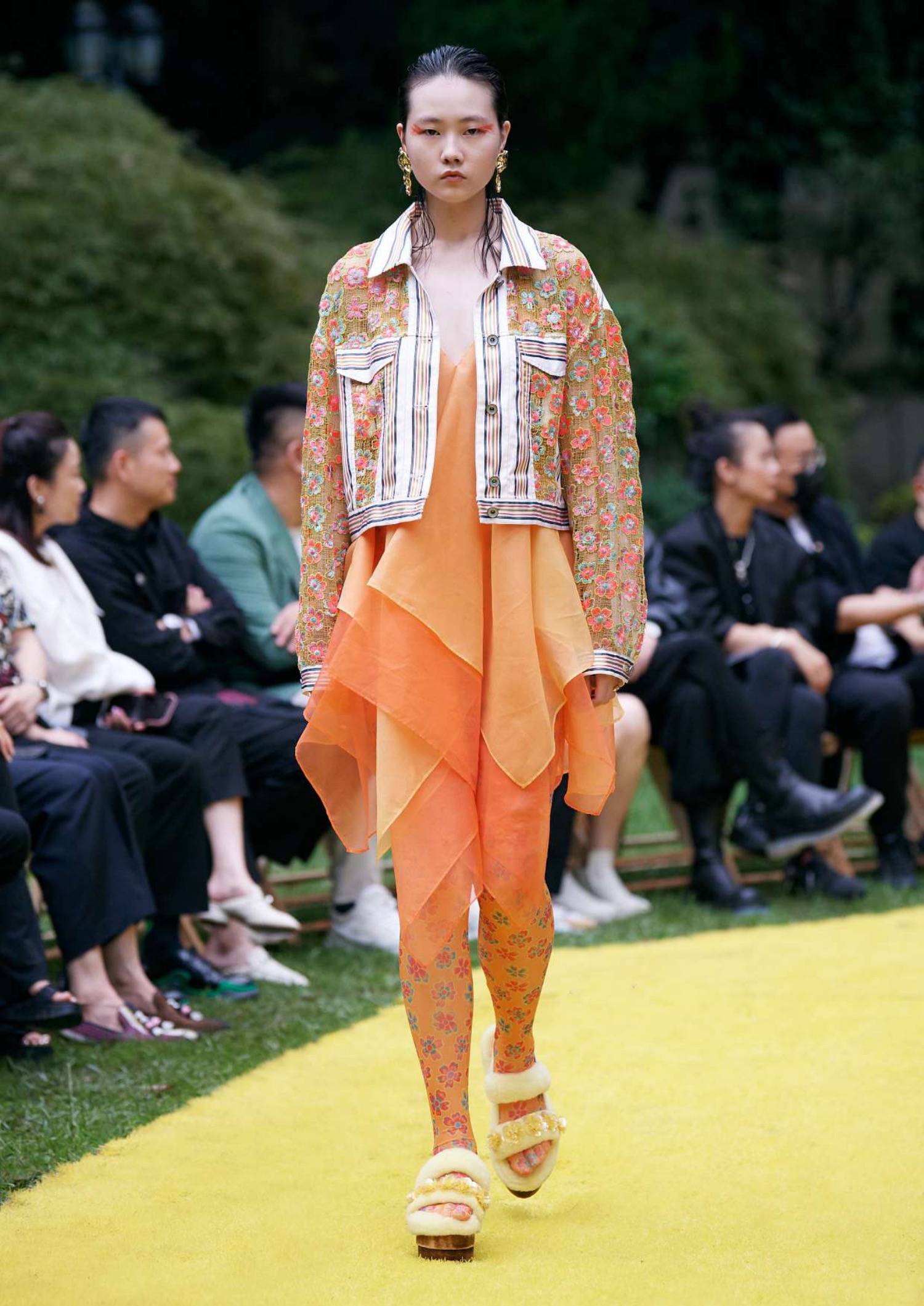 花色网纱打底裤 / 亮橘色——中国设计师品牌QIUSHU TING
