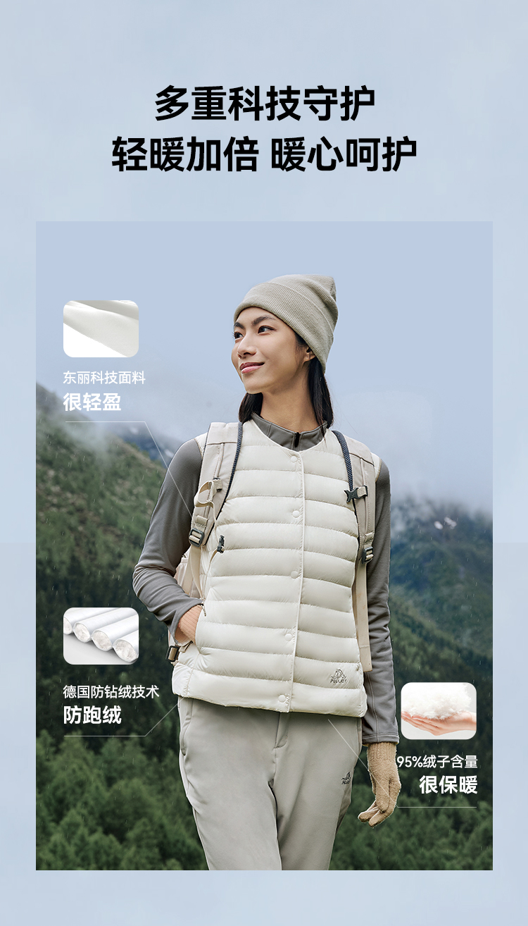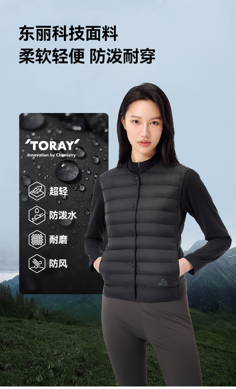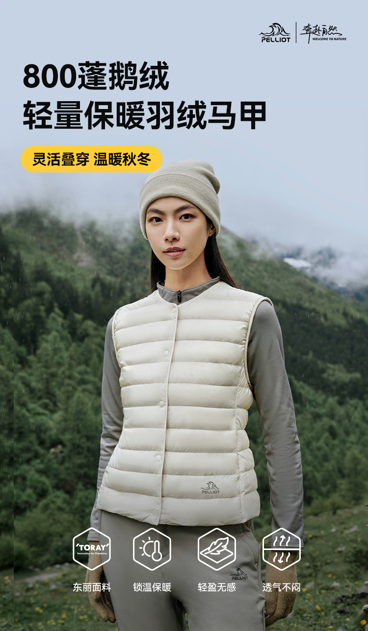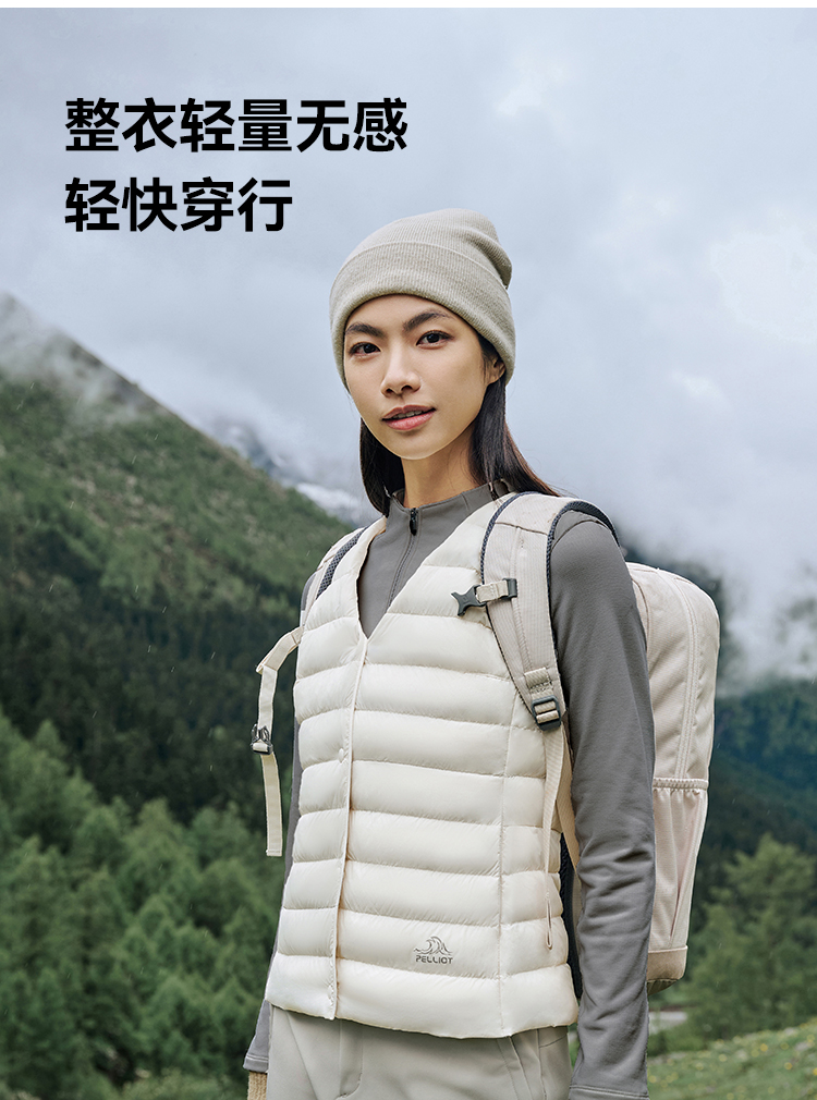 伯希和户外800蓬羽绒马甲女2025新款轻薄登山运动防风排骨羽绒服