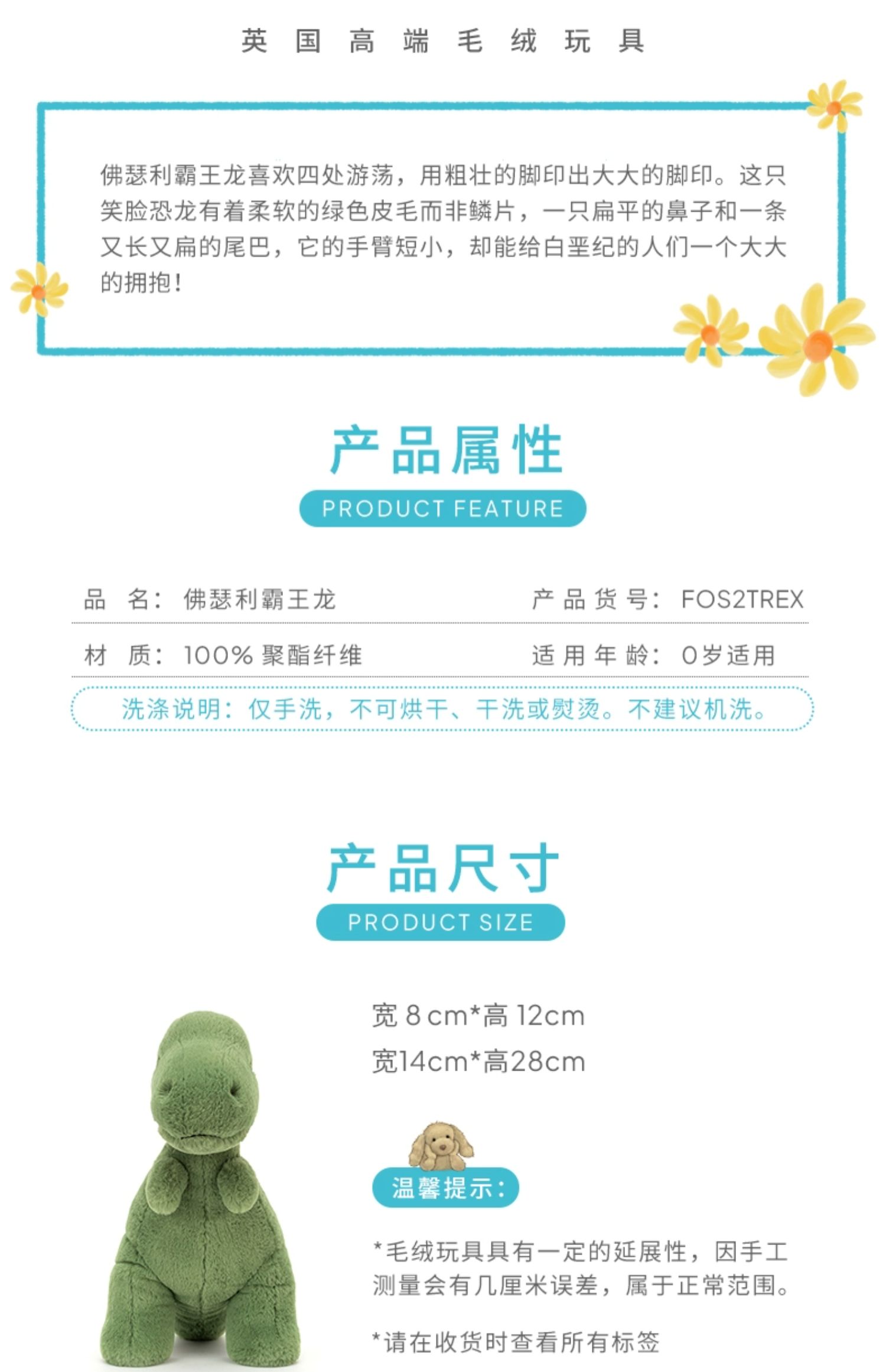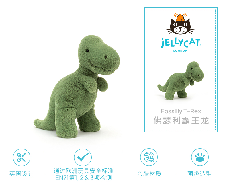英国Jellycat佛瑟利霸王龙宝宝毛绒玩具送礼包邮柔软玩偶
