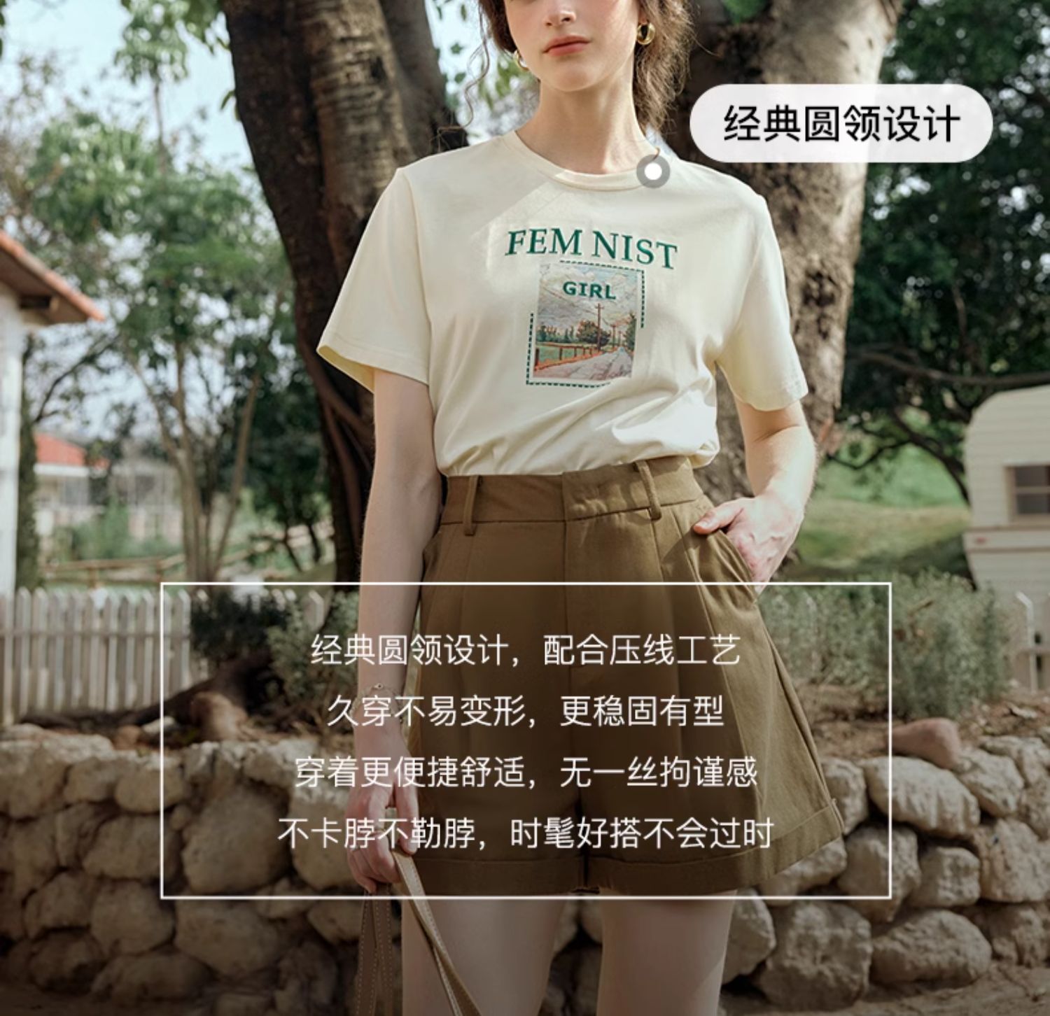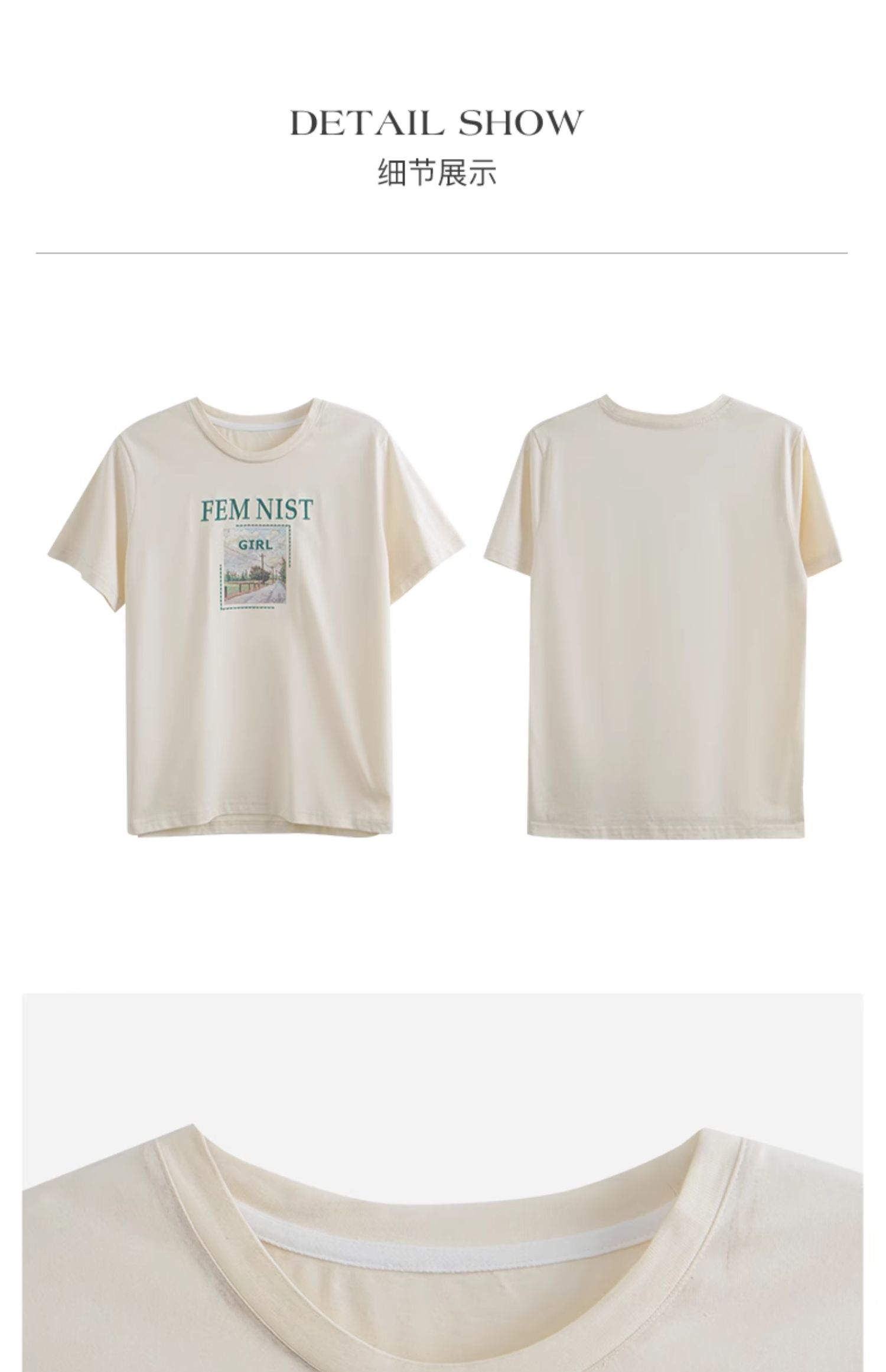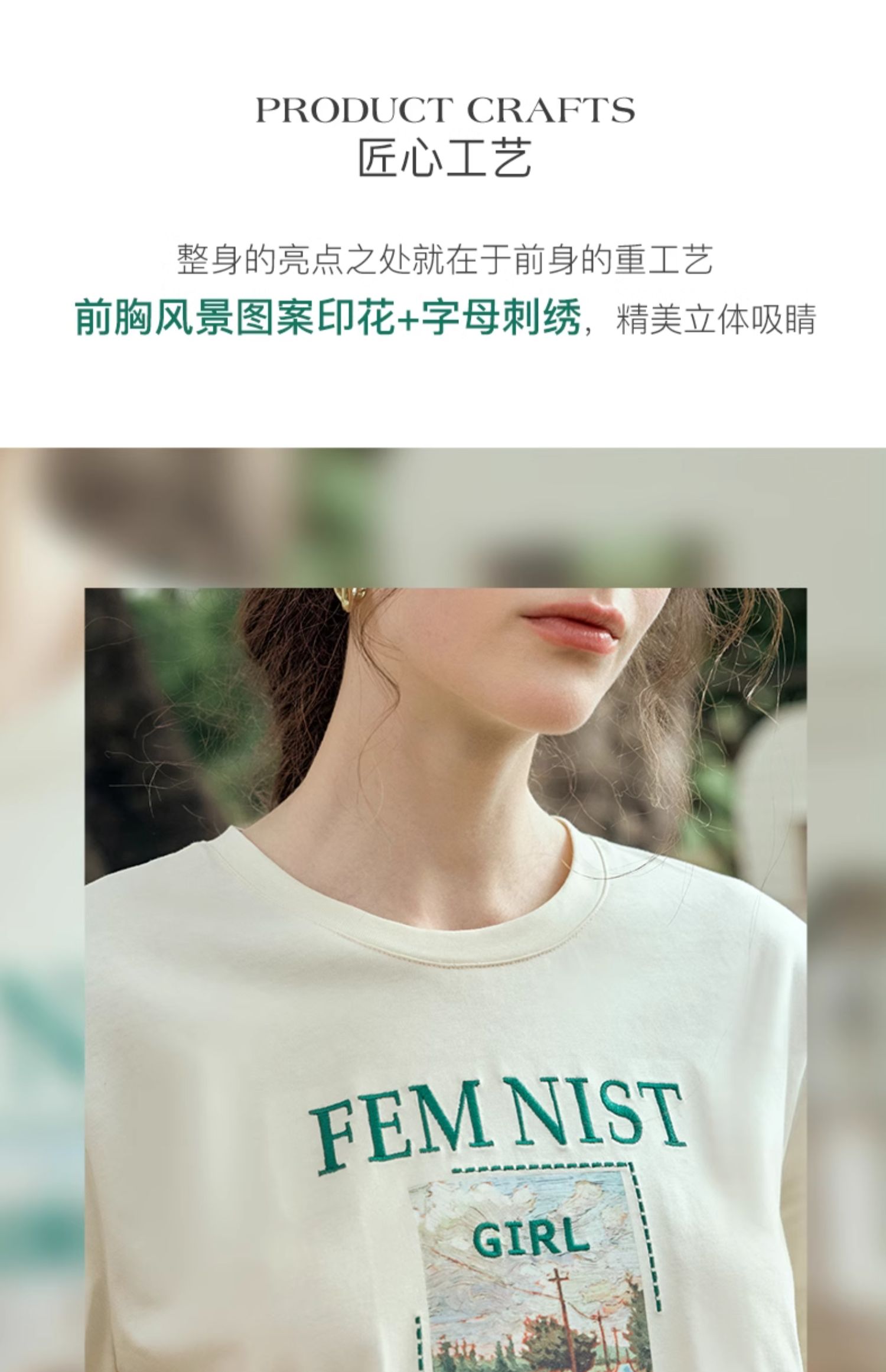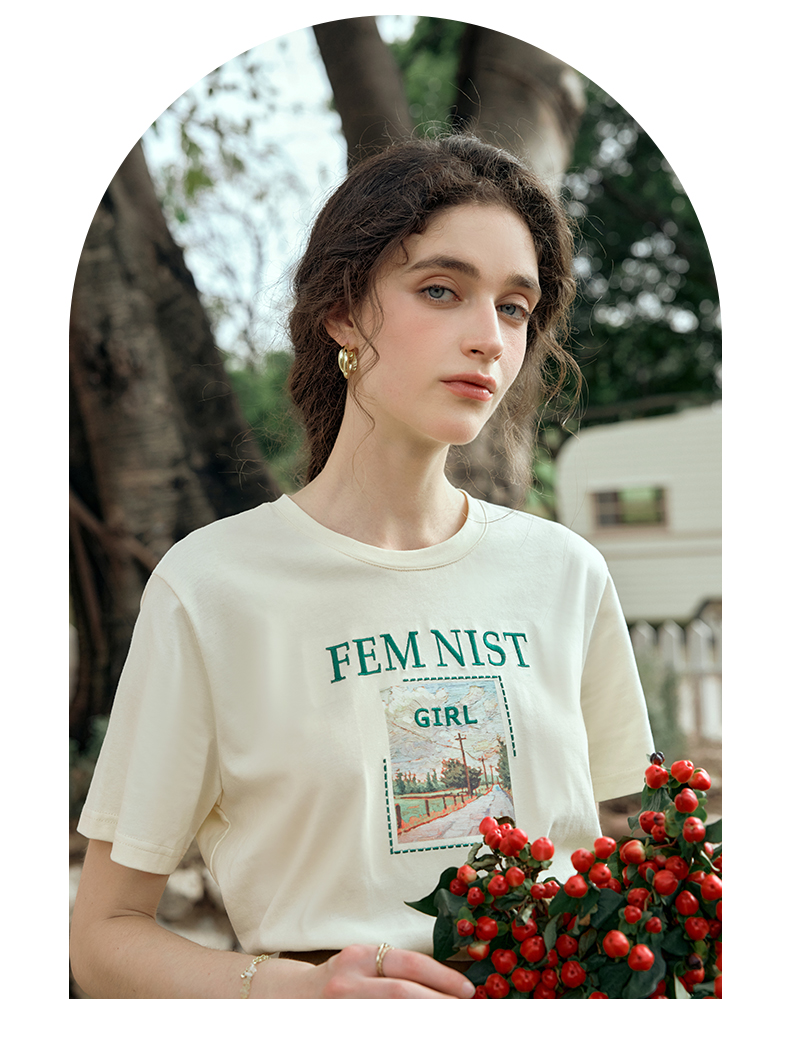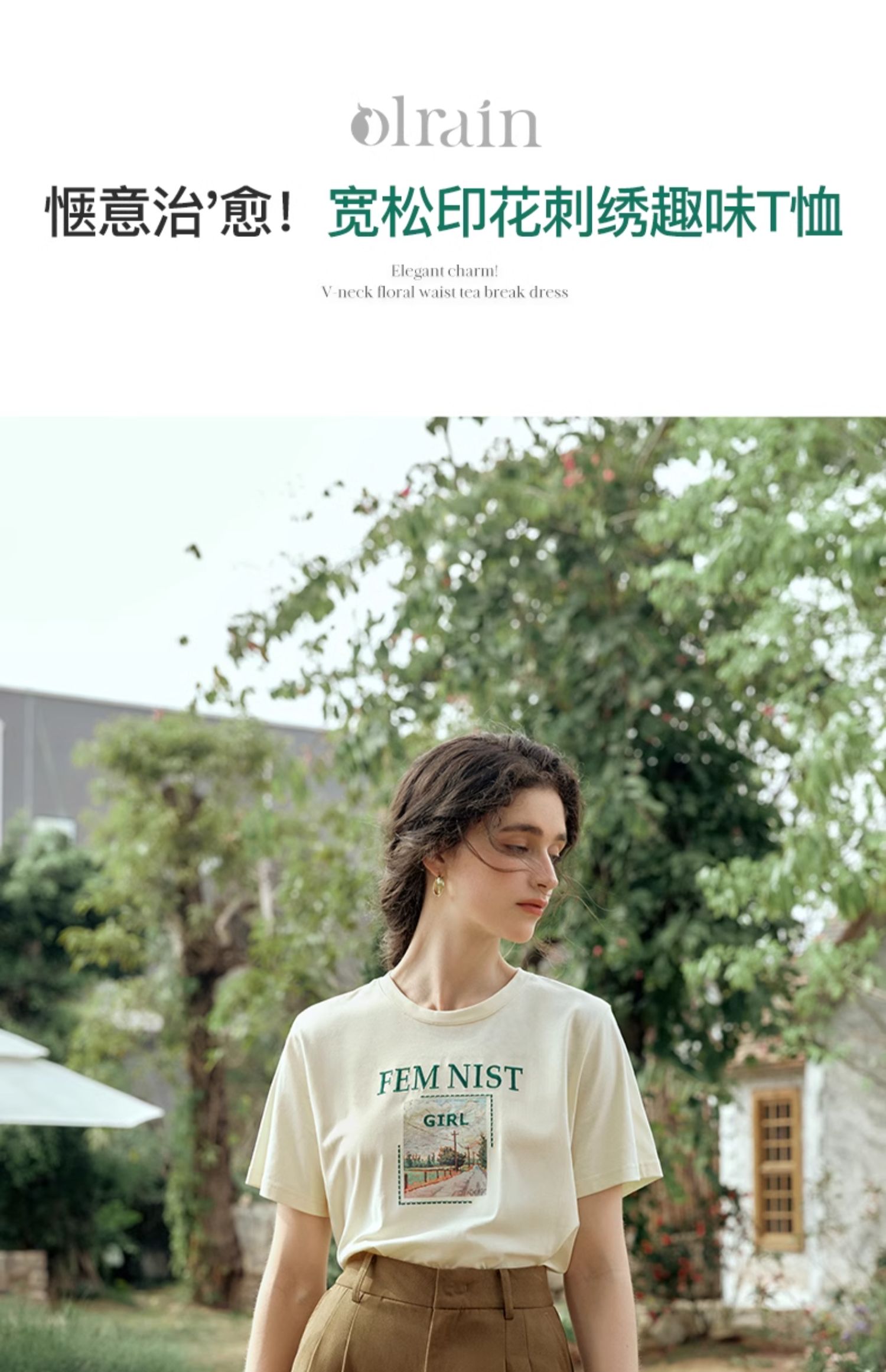 OLrain欧芮儿法式短袖T恤女夏季2024年新款宽松圆领刺绣趣味短袖